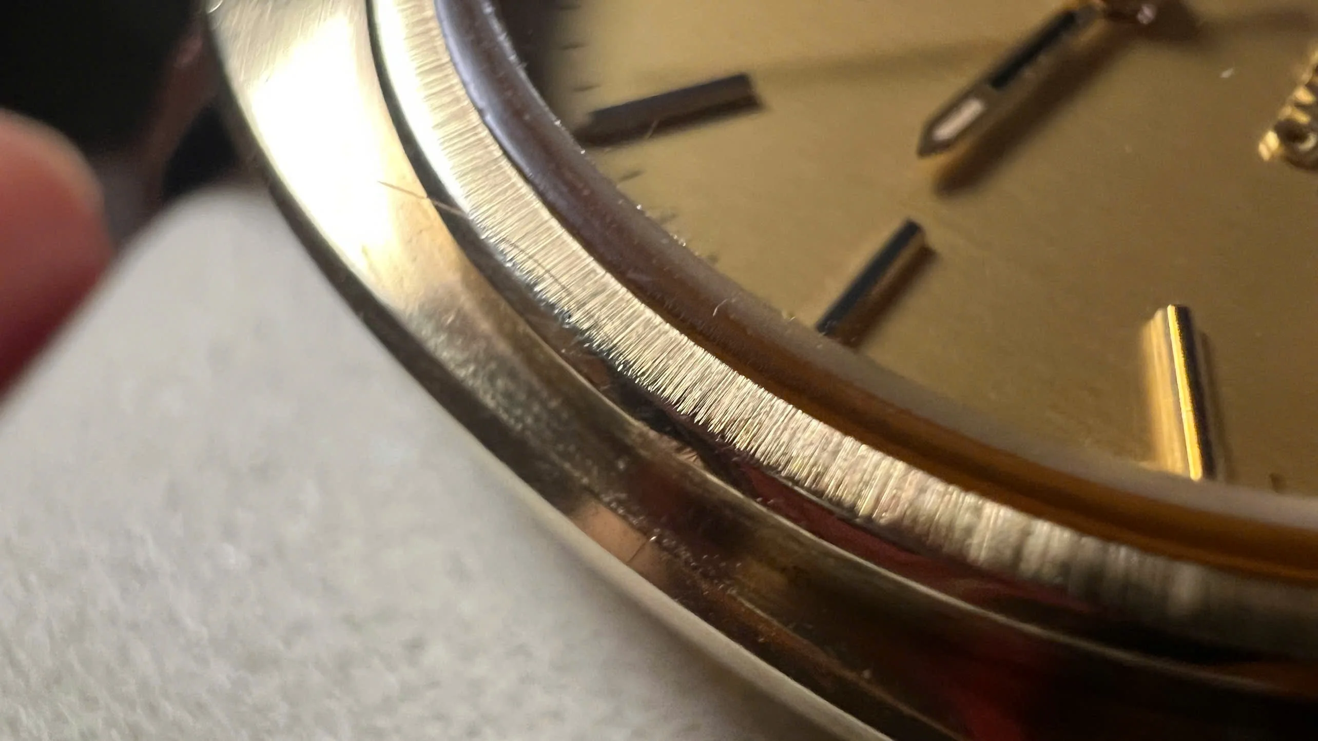 Case: 34.5mm gold-capped case with solid gold bezel and observatory medallion. Some light wear as expected, but overall sharp with good lines.