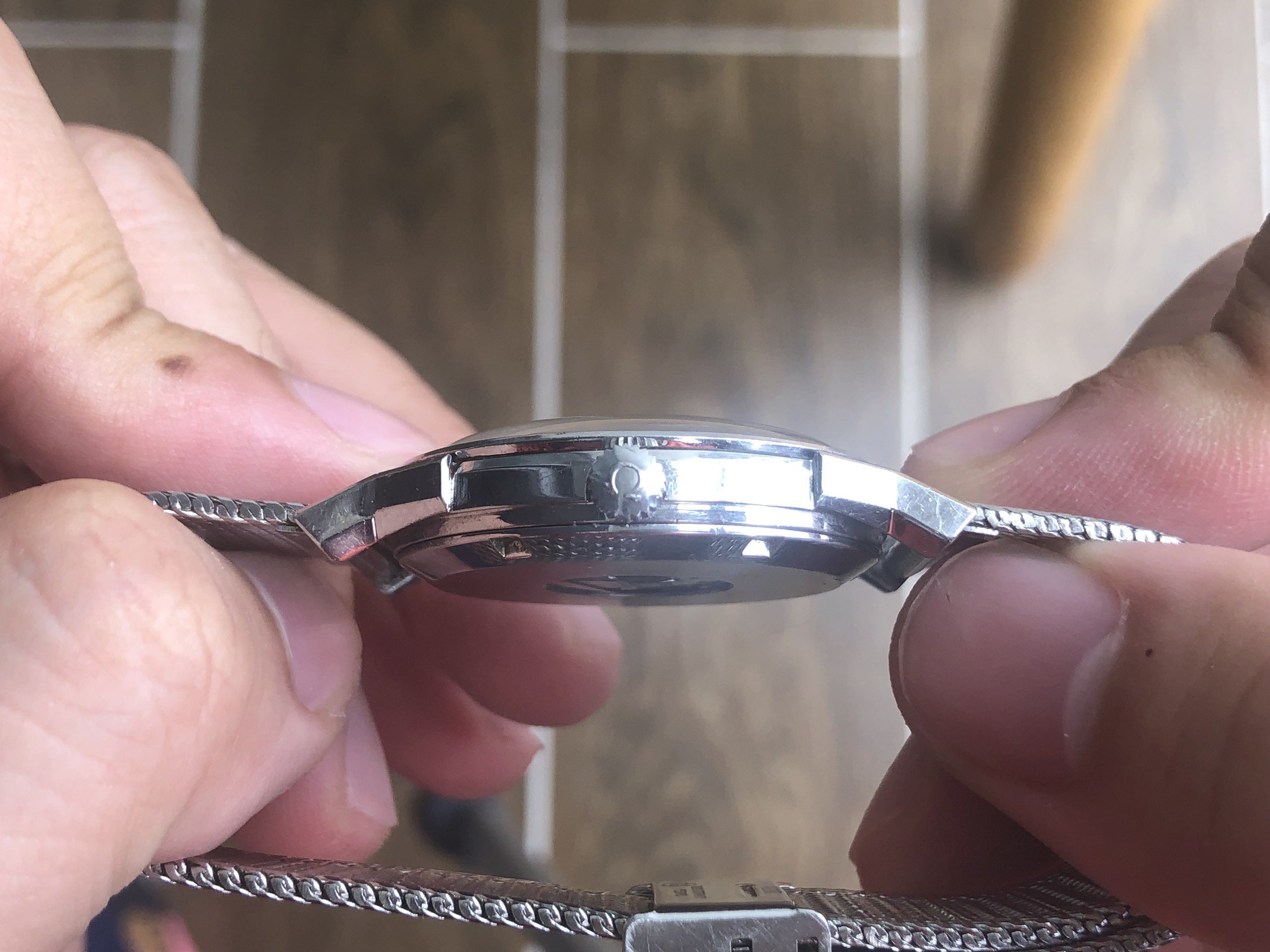- Case: Unpolished sharp case with hairline scratches. Observatory symbol in the back is neat.