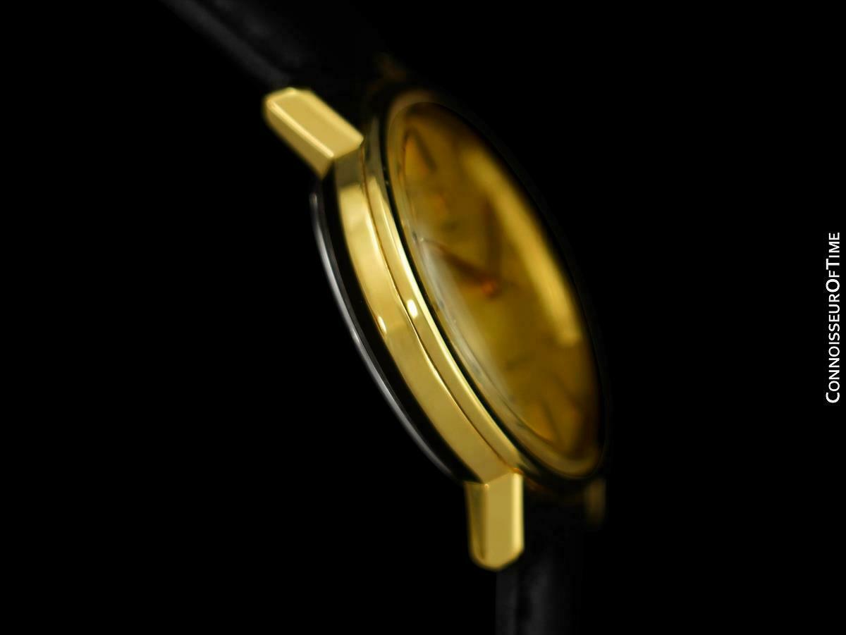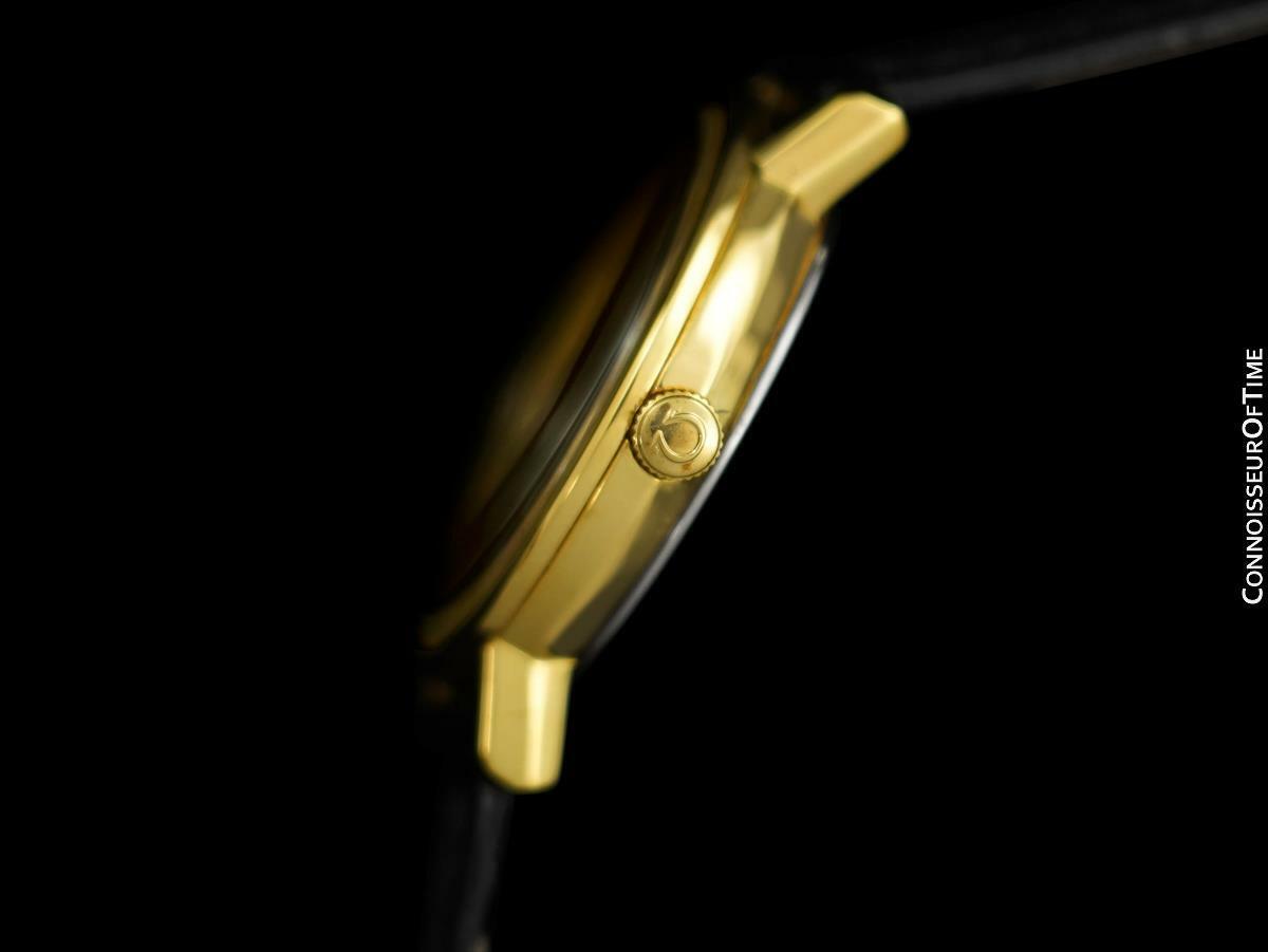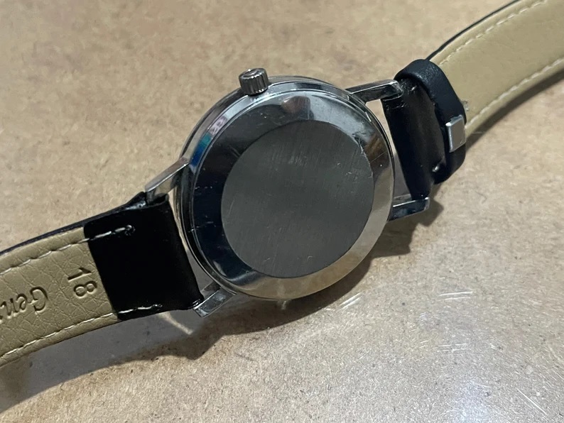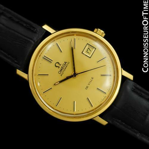 Powering it is Omega's automatic caliber 1012 23 jewel movement found in Seamasters and other models from the era. Its so-called "tropical" or "hypo-allergenice" gold plated case with steel back has the look of a solid gold Omega for a fraction of the price.