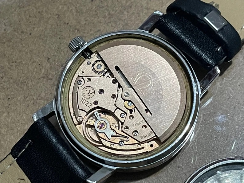 Movement: Omega Caliber 1012 movement, 23 jewels, fast beat 28,800 BPH balance, copper colored