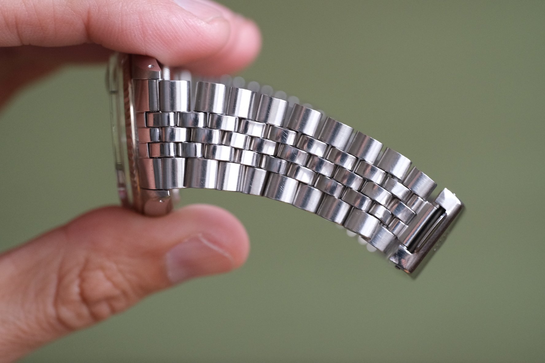 BRACELET: Comes complete with what I believe is its original Rolex folded link jubilee bracelet and matching 55 end links. Light wear throughout, mostly seen on the clasp, but looks great all around, with well below average stretch for the age, especially for a large jubilee - this will fit over 7.5 inches.