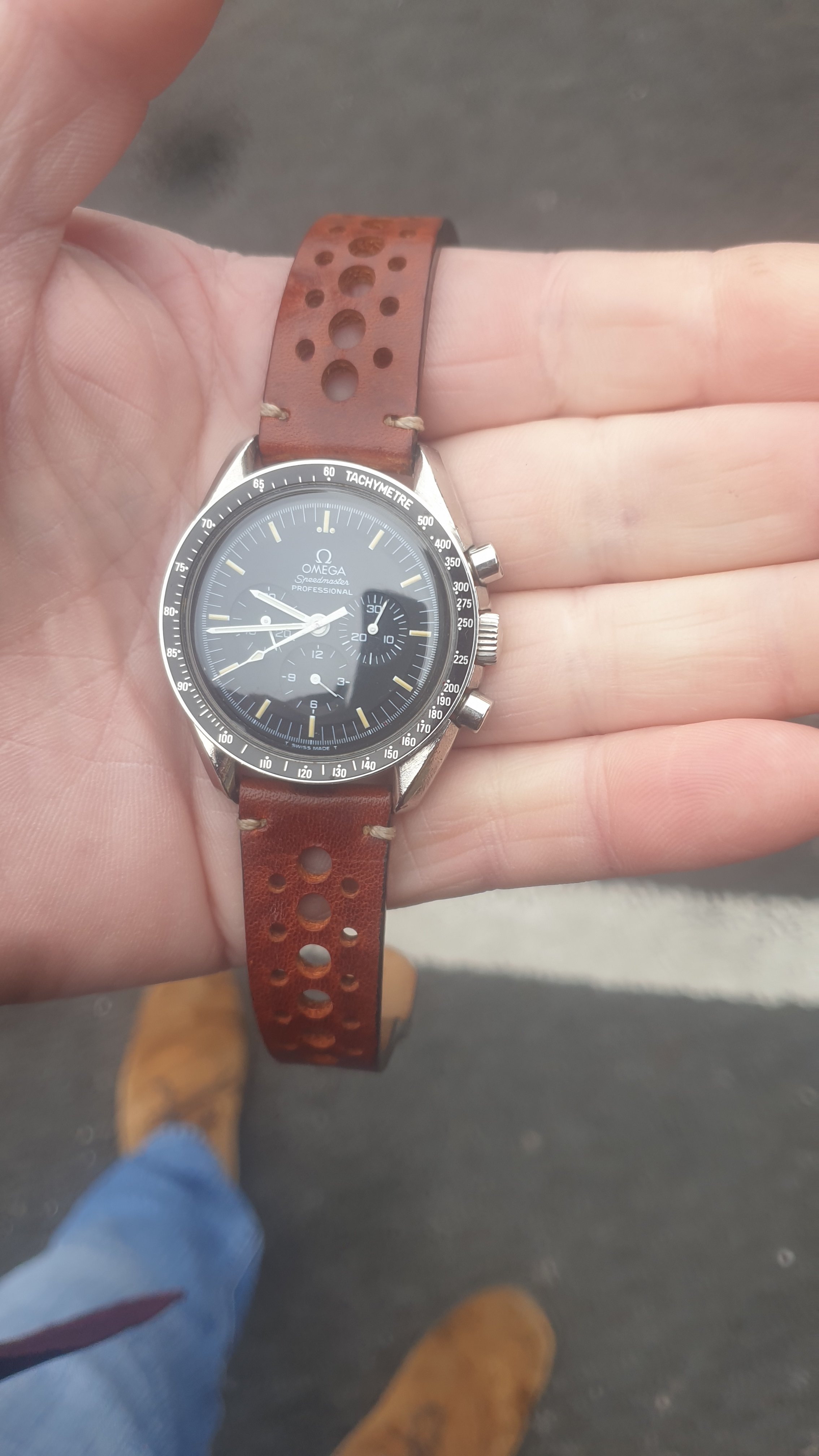 The speedmaster is certainly not a safe queen and the owner has no intention of ever selling. He just likes the idea of a cheaper original omega bracelet amended to fit.