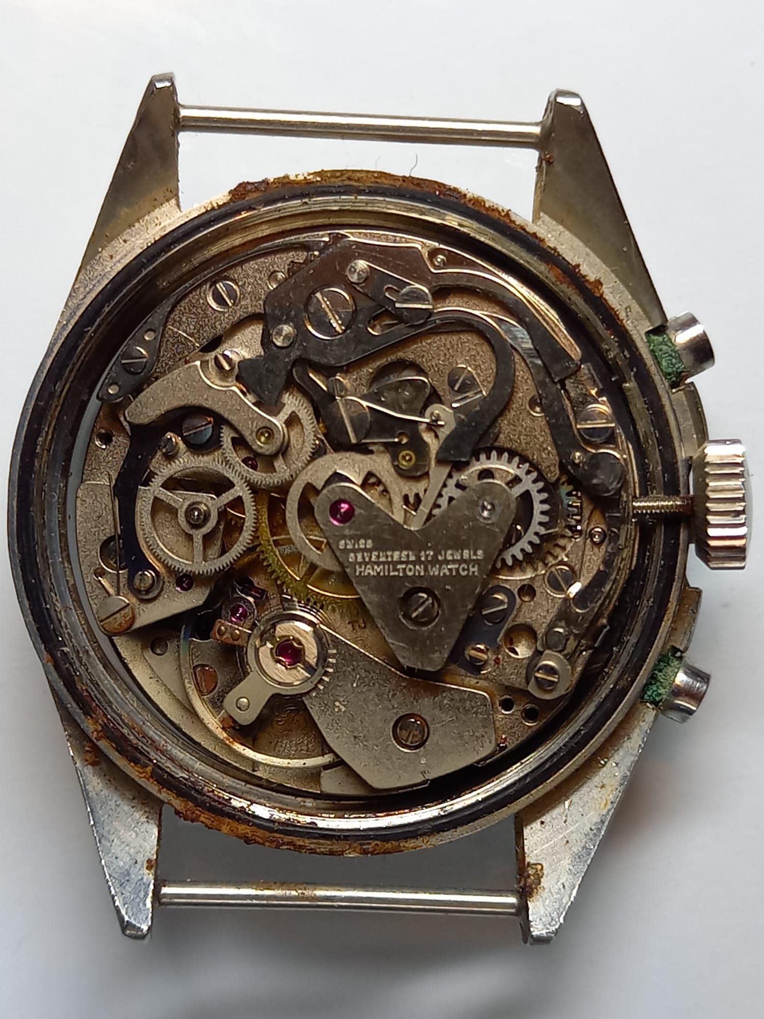 In my understanding, serial numbers inside and outside caseback are consistent with a last batch issued by Hamilton in 1974, dial itself looks nice and original to me but I can't find any reference to the Hamilton 17 rubis logo: maybe a later addition on a sterile dial, but afaik sterile dials have white graphic, not gilt.
