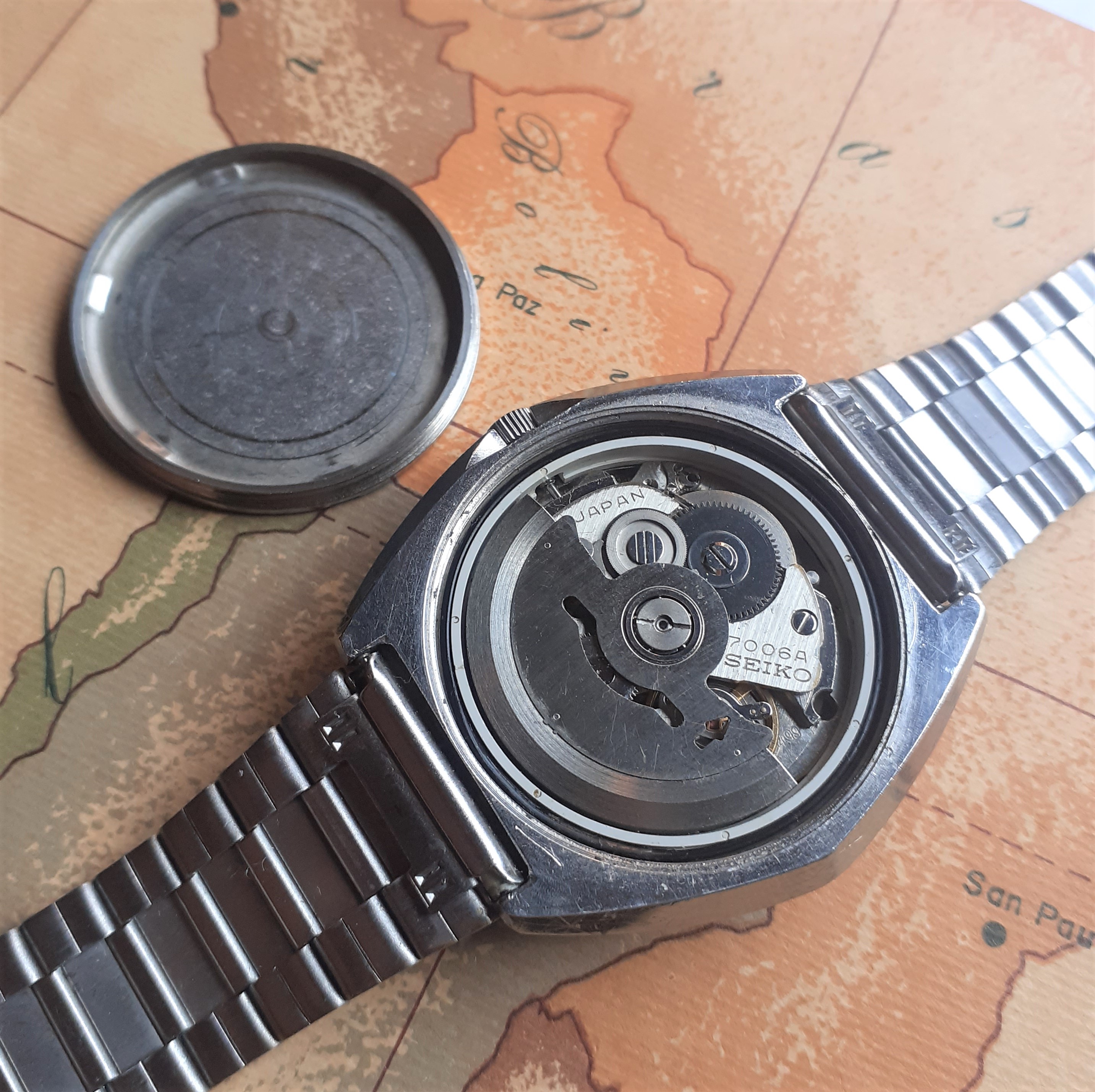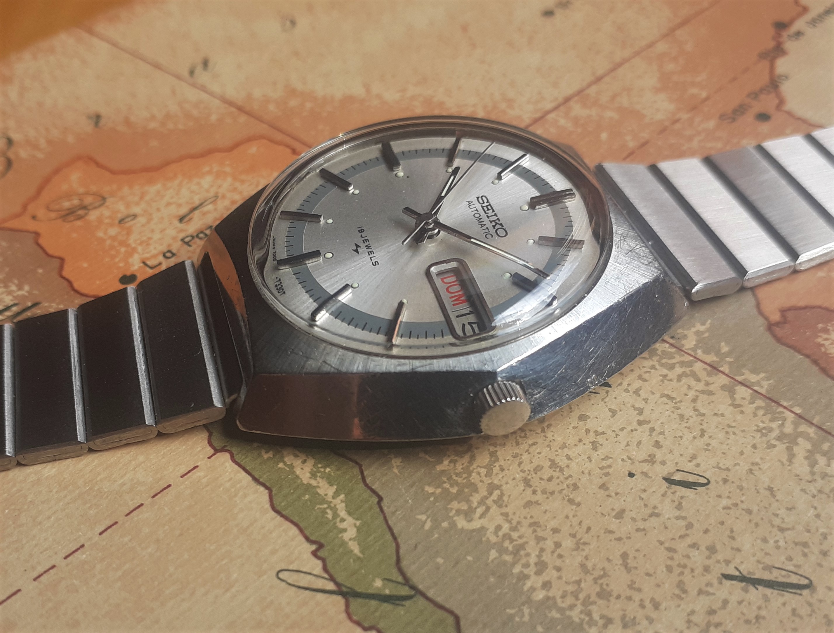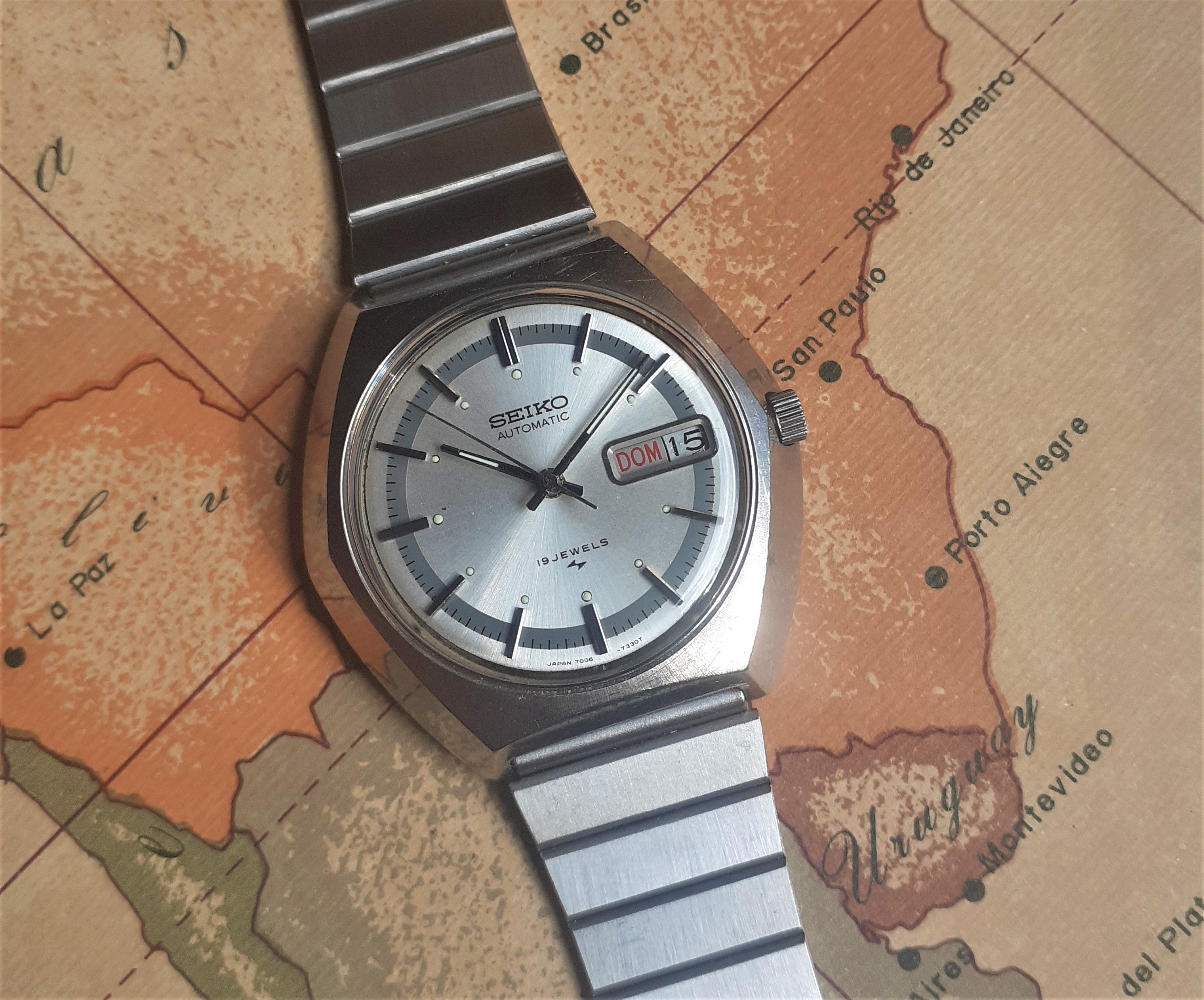 MOVEMENT: Seiko 7006A day-date, 2 positions crown: you can fast change the date (the day of the week by advancing the hands).