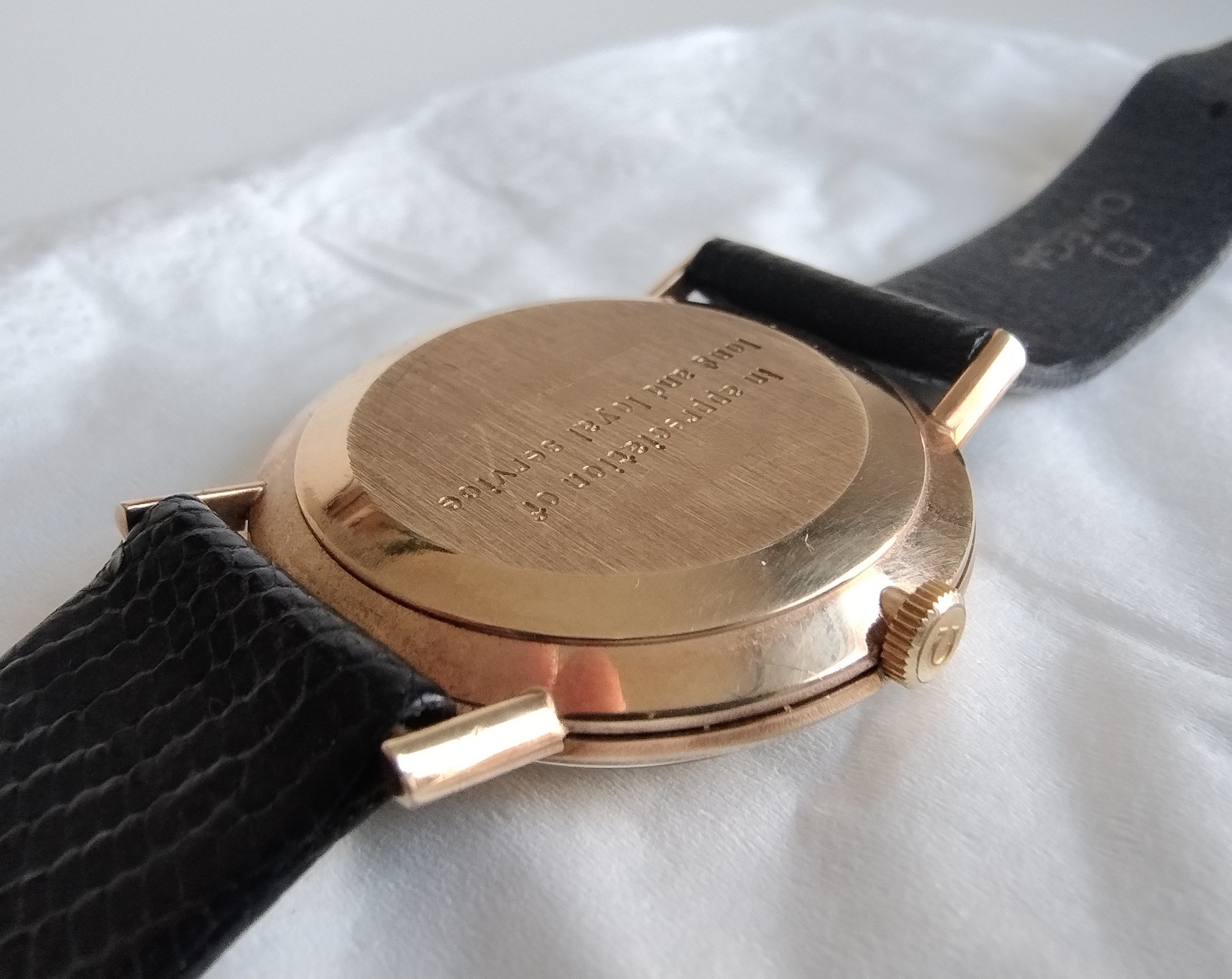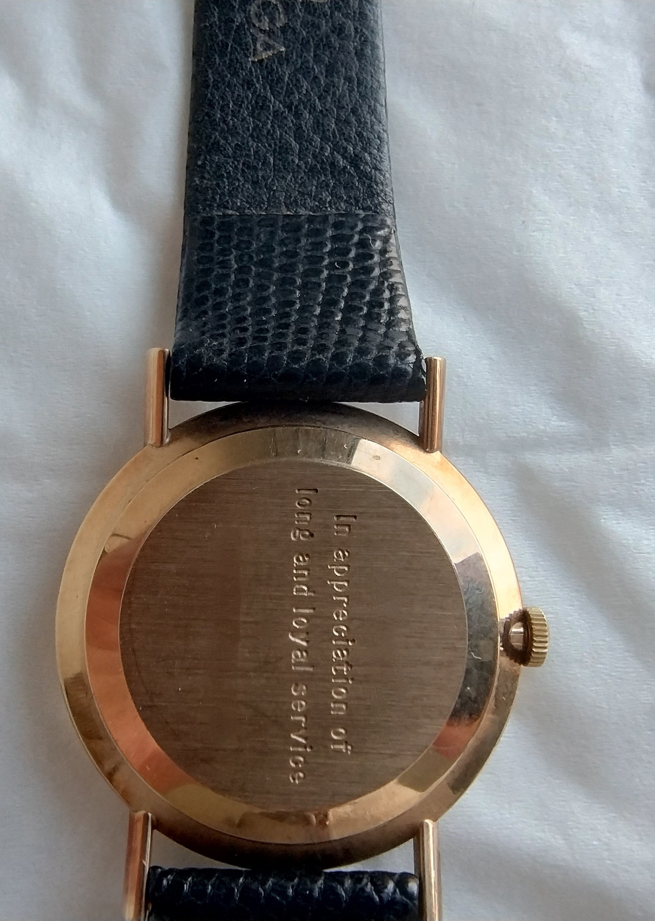 He was given the watch as a retirement present from his employer around 1975 who inscribed the back with his name and a fond farewell message. Therefore, it came with no paper work or documentation.