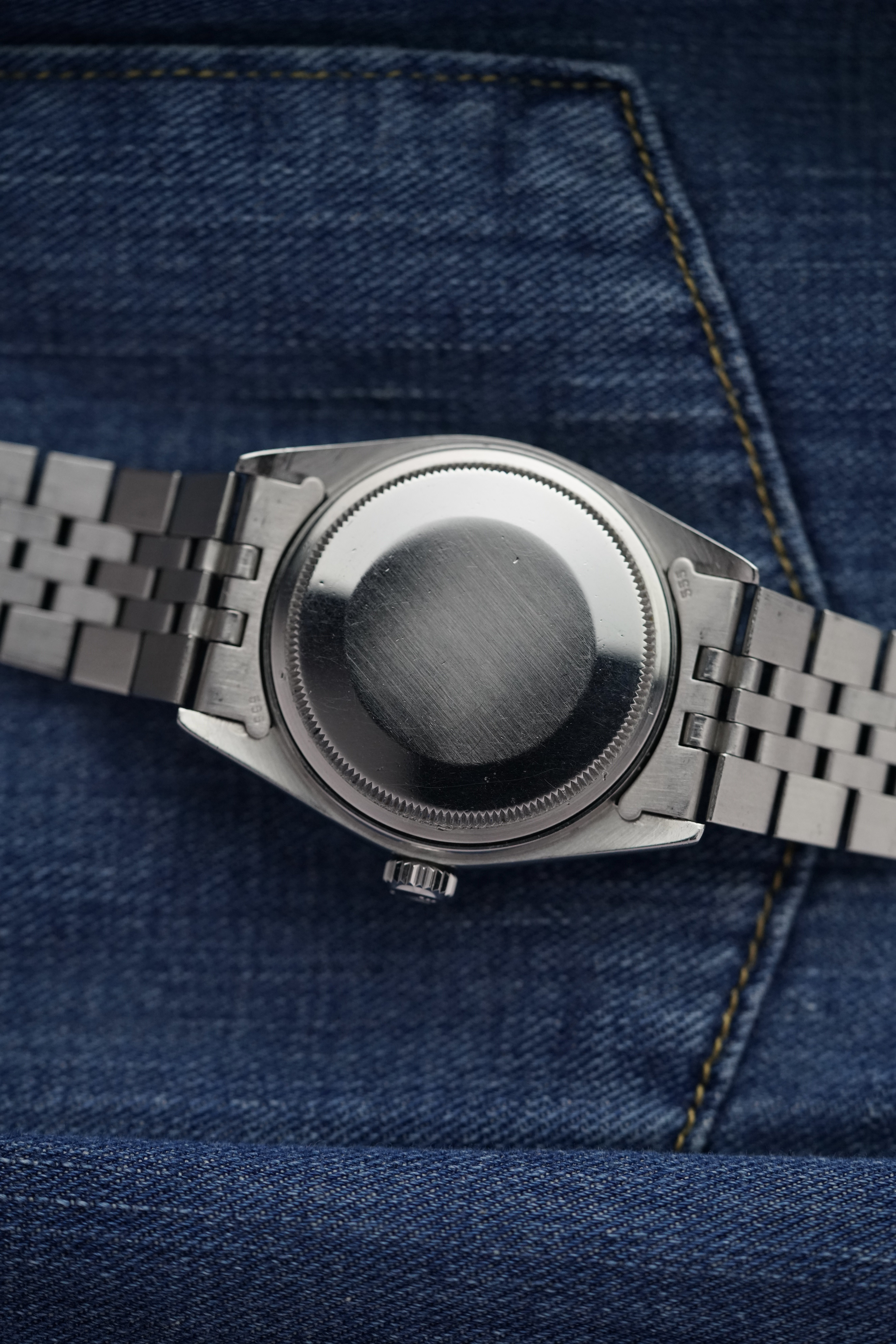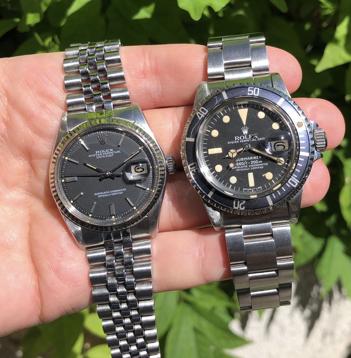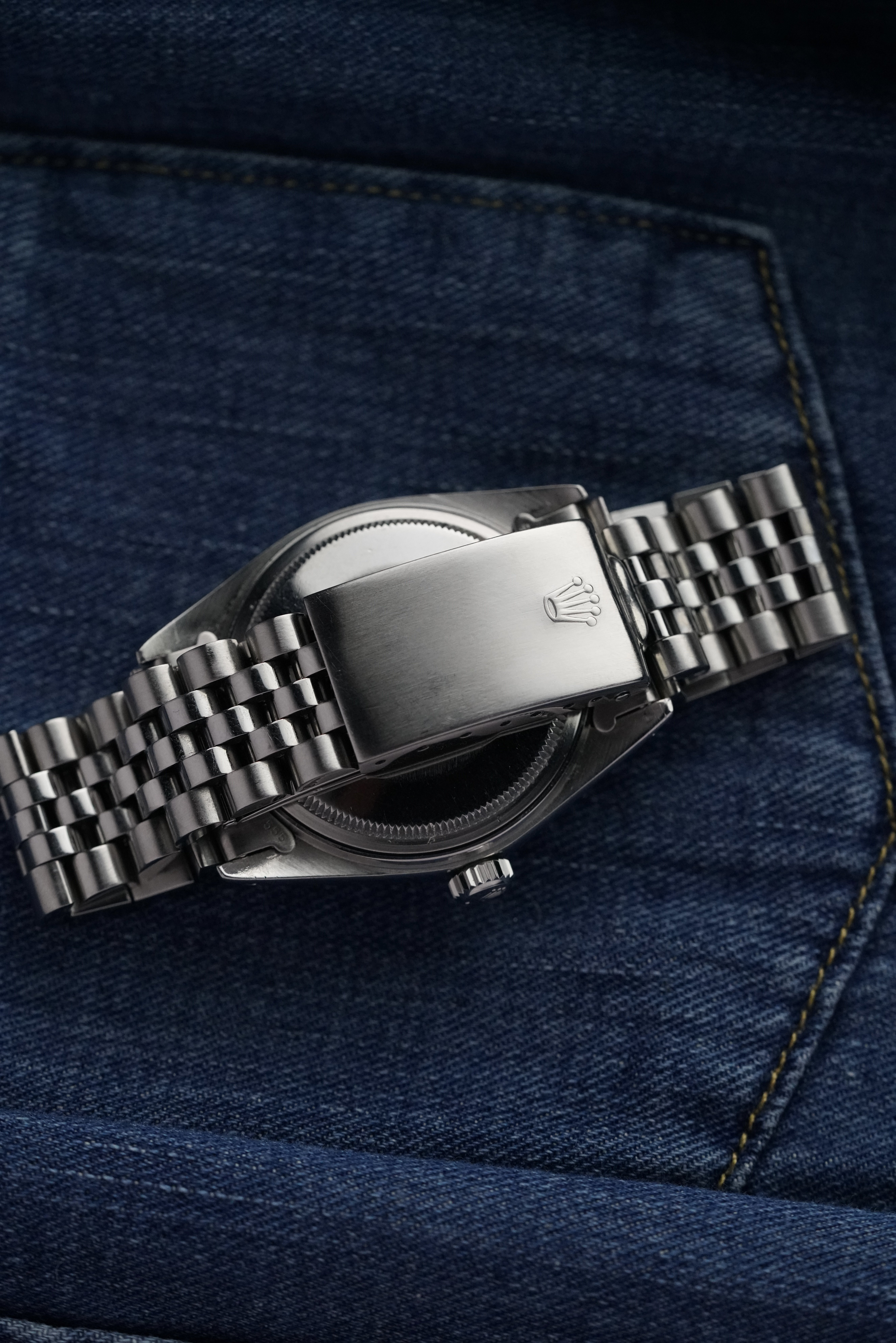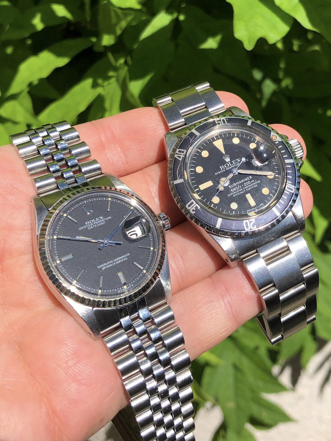 I have for sale a have for sale a real stunner: a 1975 Rolex Datejust ref.1601 with a very rare matte black pie pan "Sigma" dial in flawless condition, a solid case and excellent white gold fluted bezel.