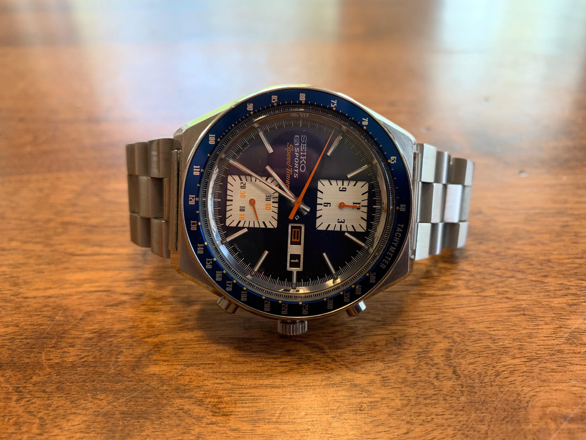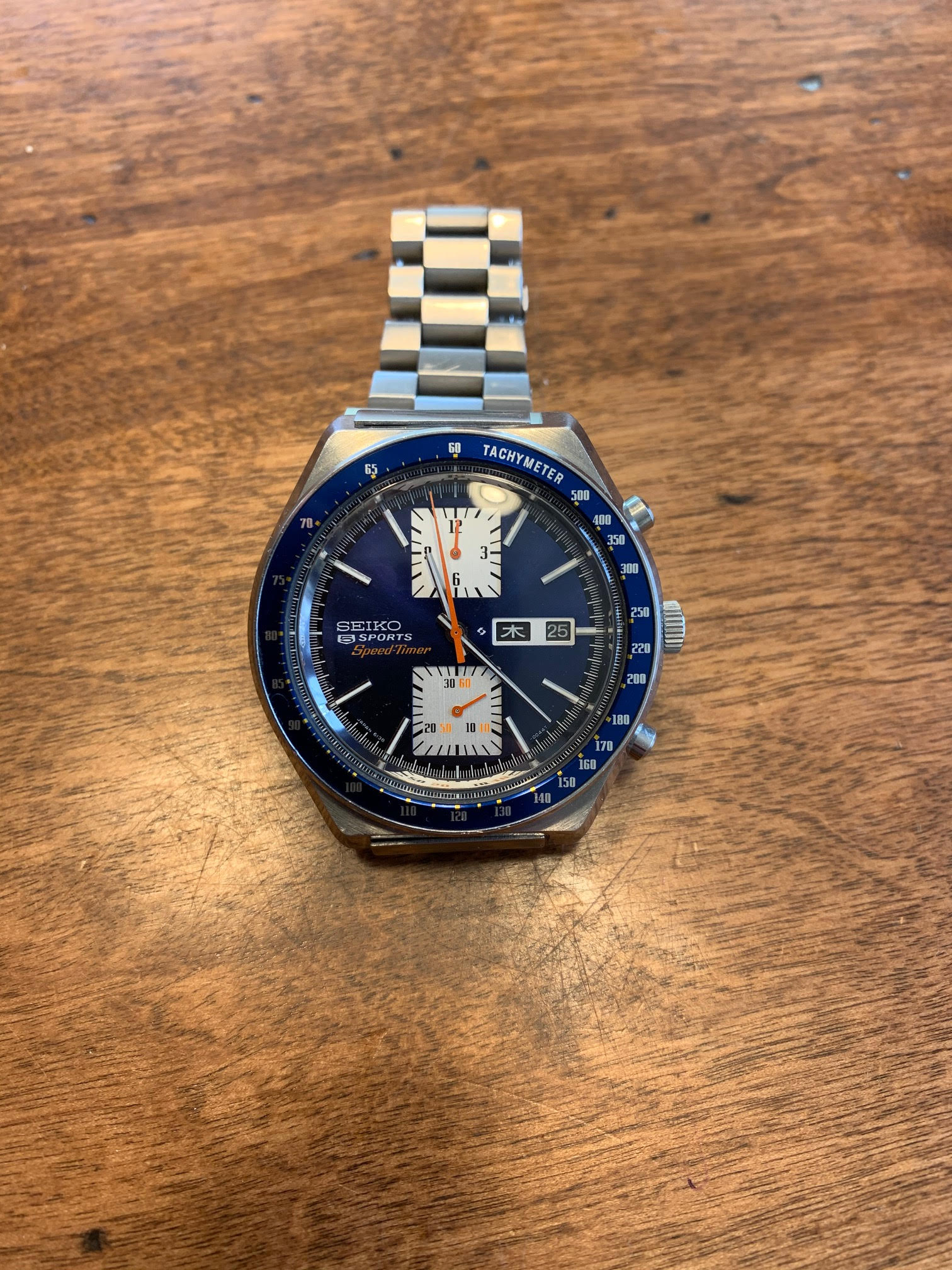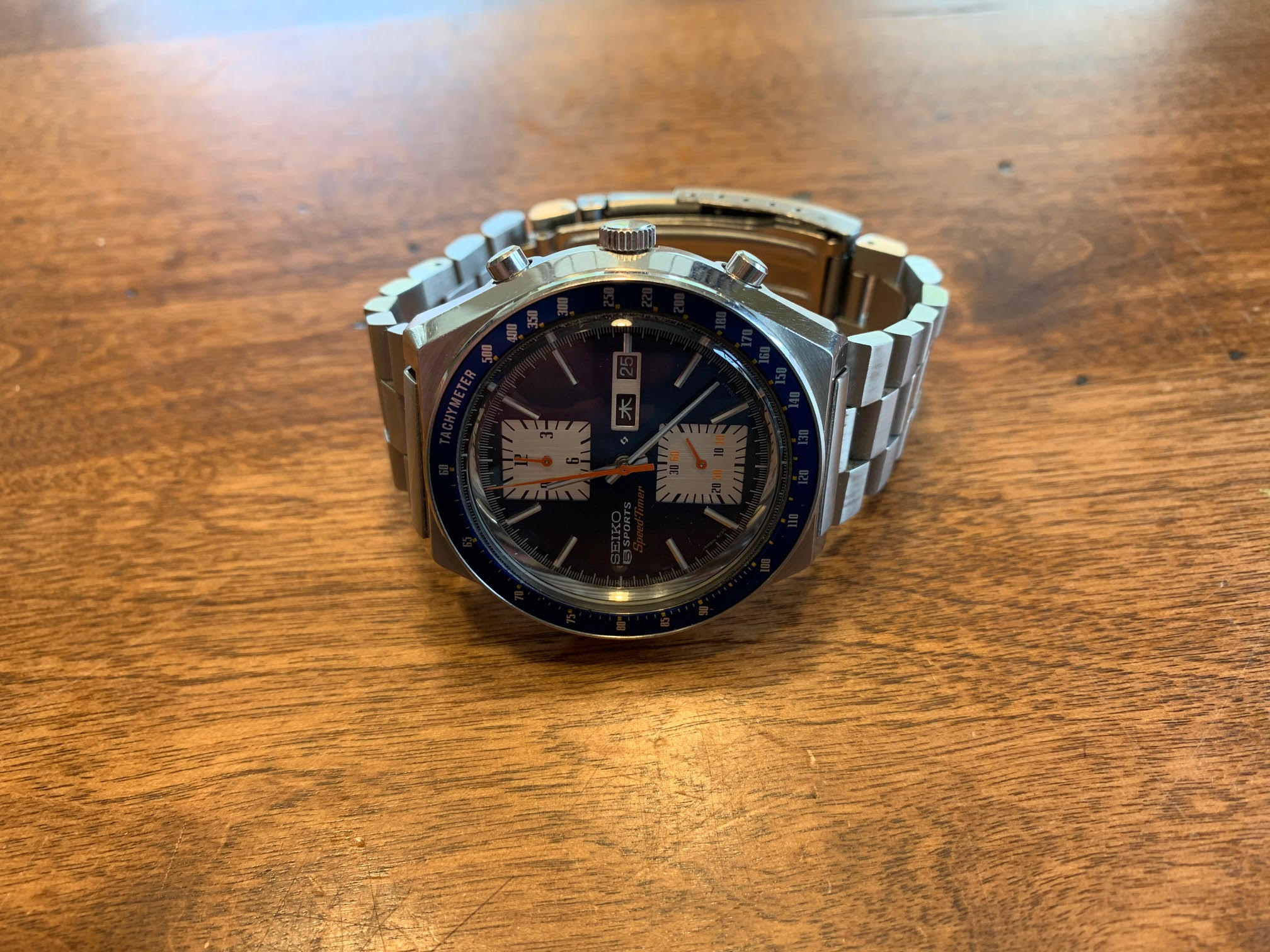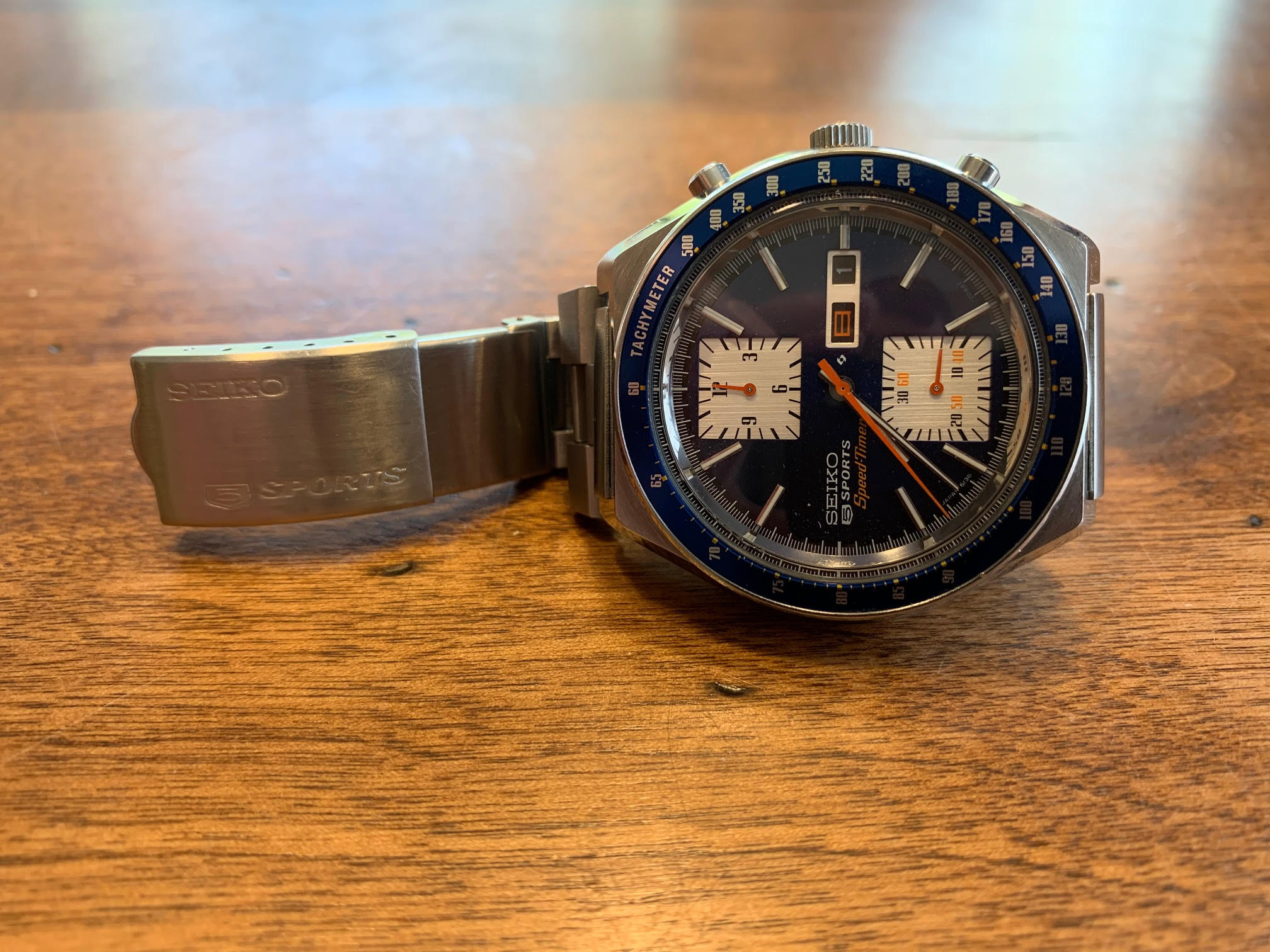 It has not been polished and is simply a gorgeous automatic piece that snaps crisply back to 12 when it is reset. It has an aftermarket bracelet, but it does include the coveted 5 Sports clasp. My asking price is $1700, plus the 4% for Paypal transaction fees. Shipping in the US (and only in the US) will be USPS priority, will be insured at a rate of $30 and require signature...and no, I am not turning a profit on this, I'm more keen on ensuring it goes to a good wrist that will give it the rotation it deserves.