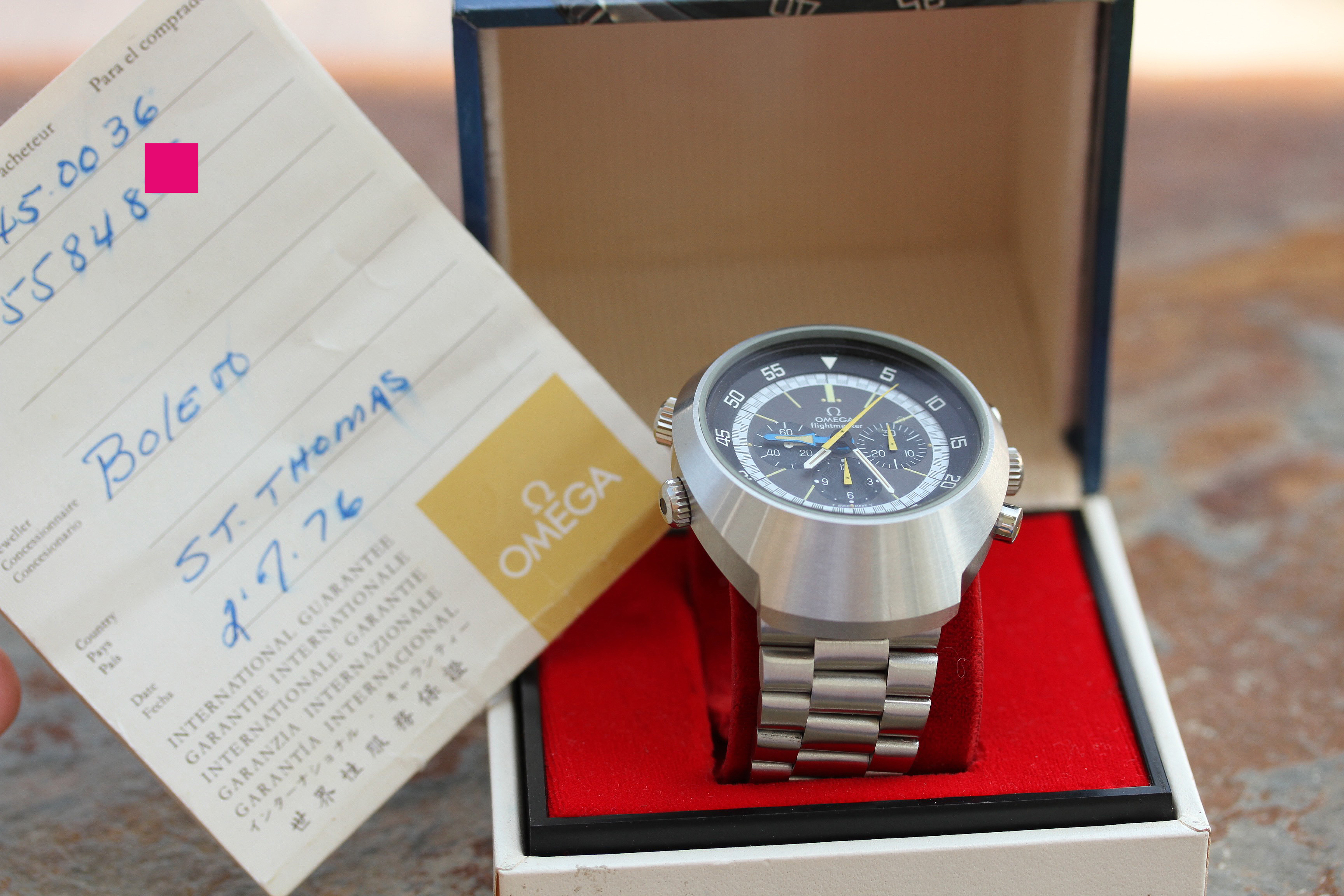This watch comes with an Omega Flightmaster box and original and matching warranty booklet.