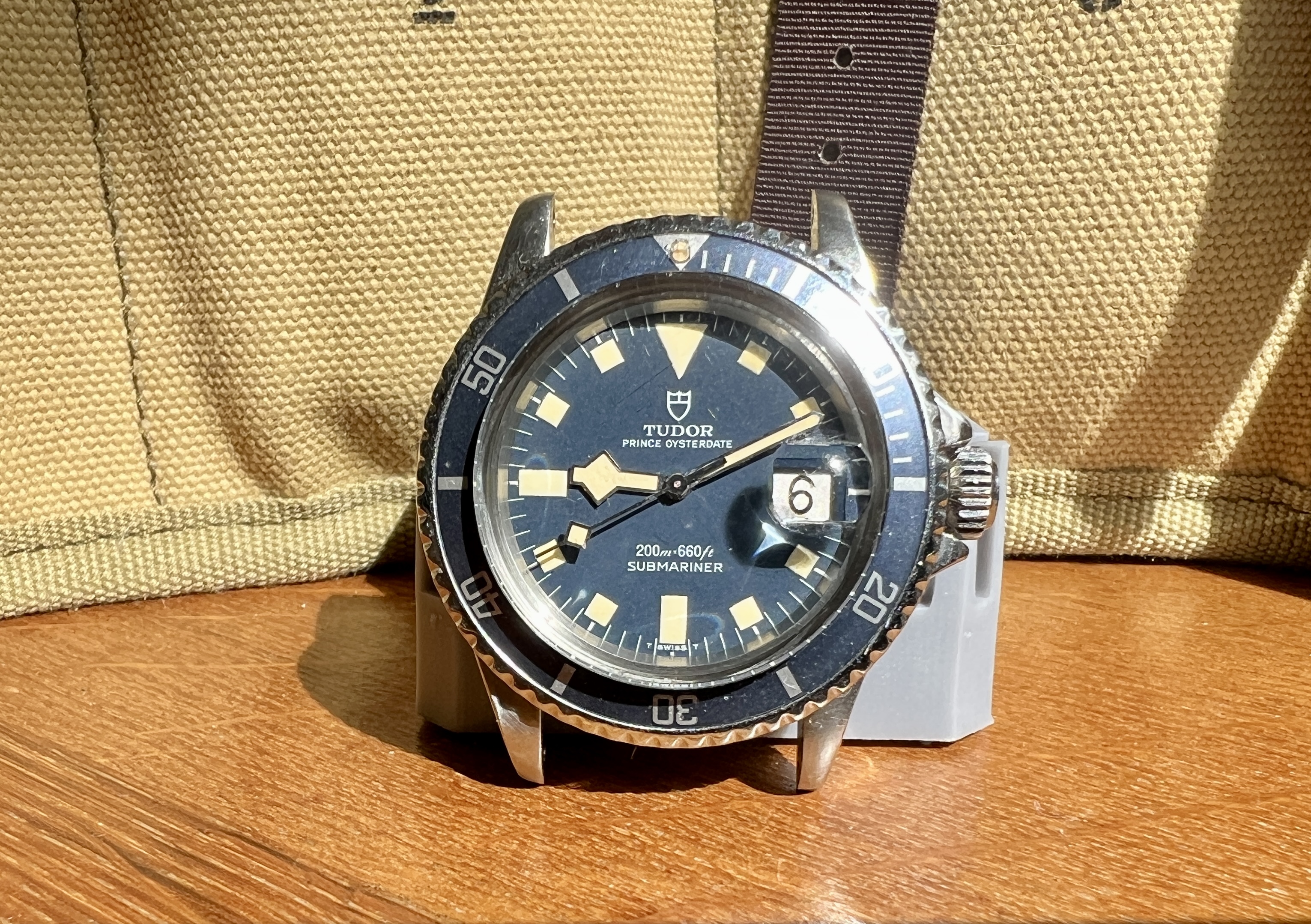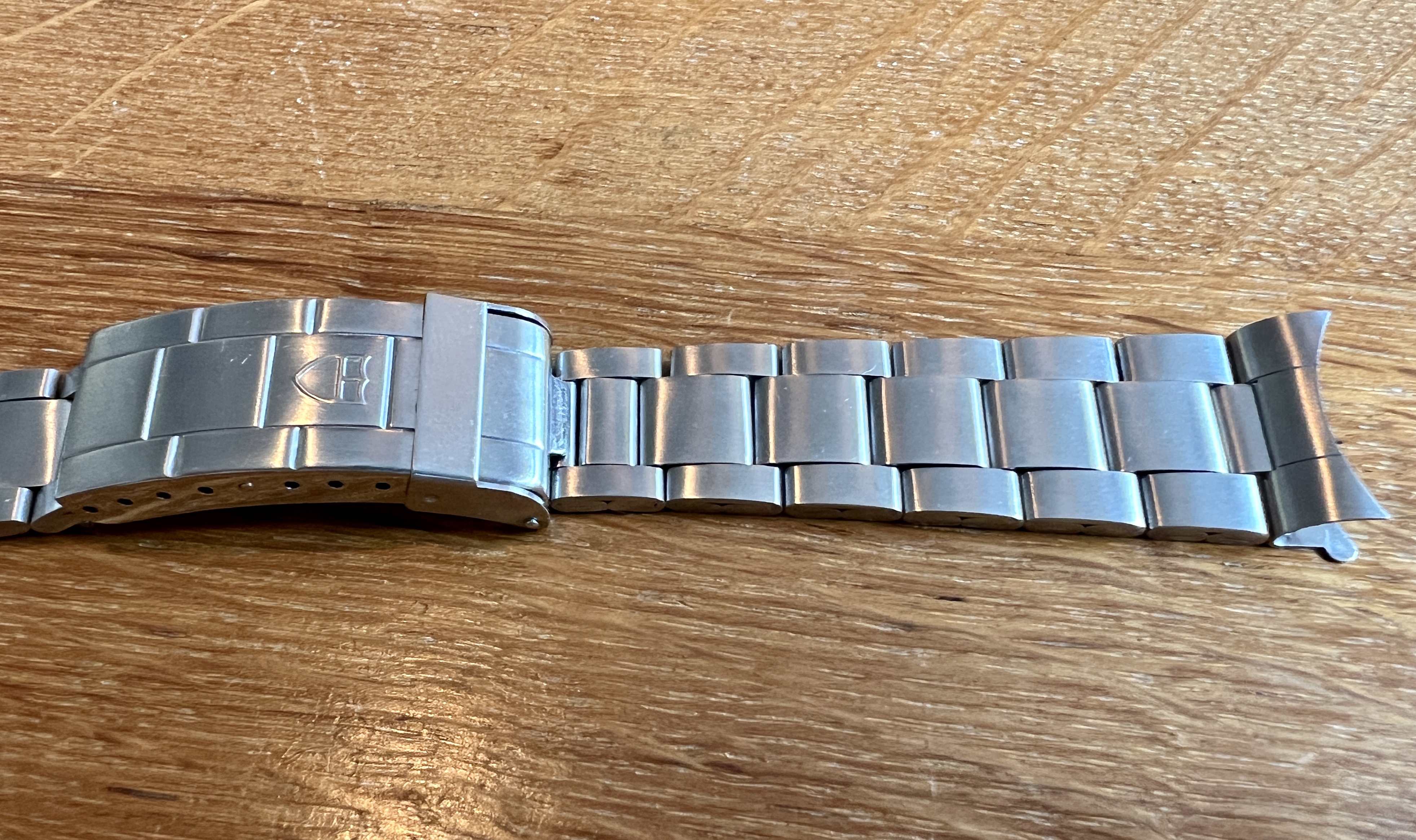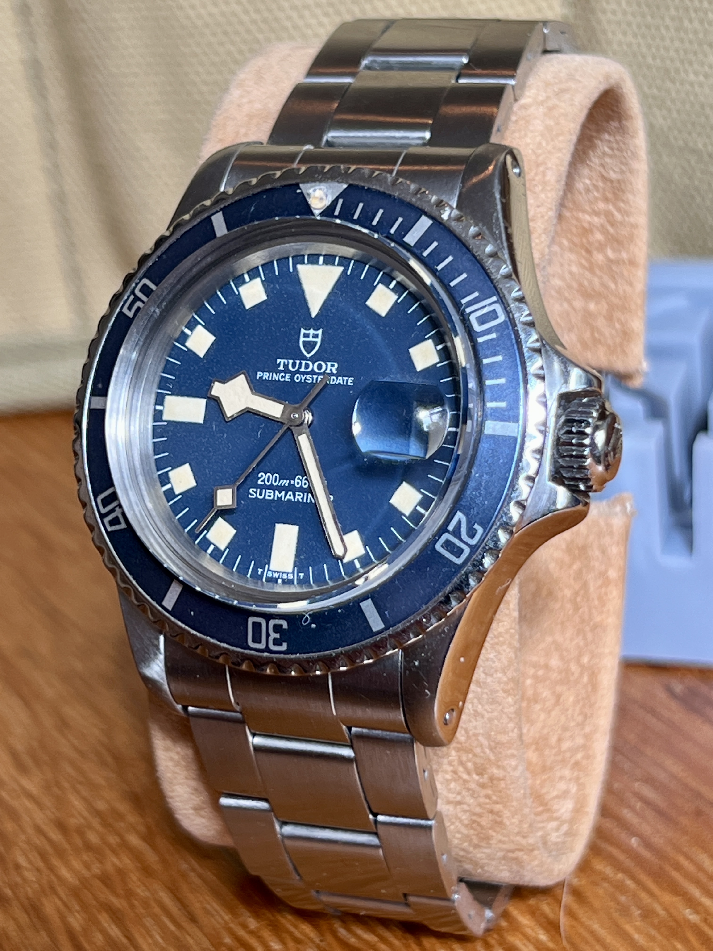 It shows signs of an active life and wear commensurate to its age. The case is worn and has a few knicks and scars. The dial is in excellent condition and the plots have a very nice aged patina which matches the hands with no noticeable flaws. It is currently fitted to a later Tudor bracelet reference 9315 with 380B end links. The clasp is stamped 06. It appears full length with its divers extension.