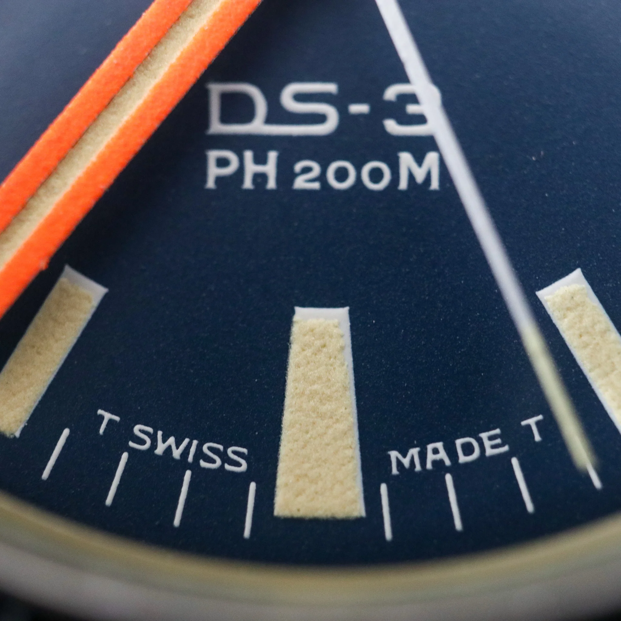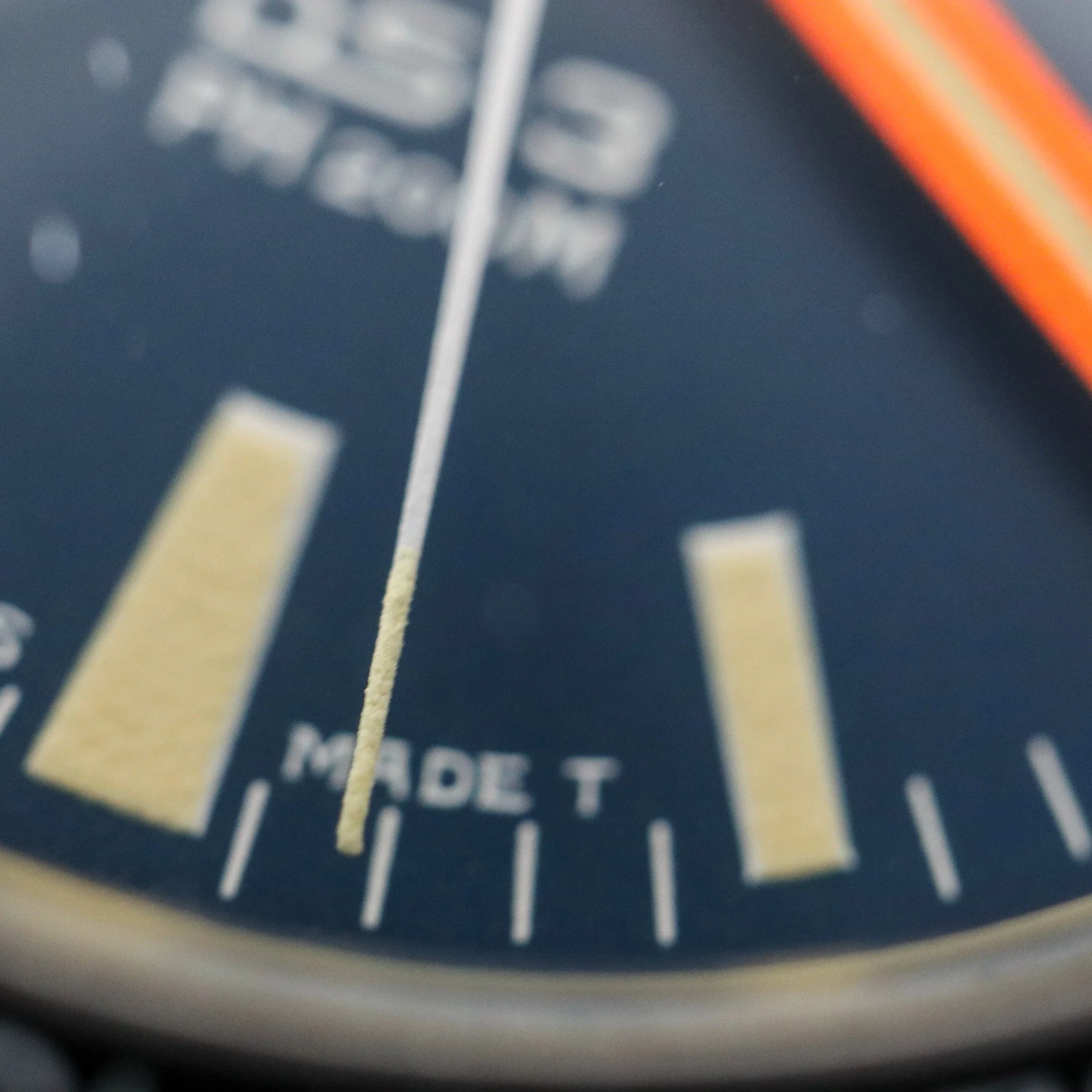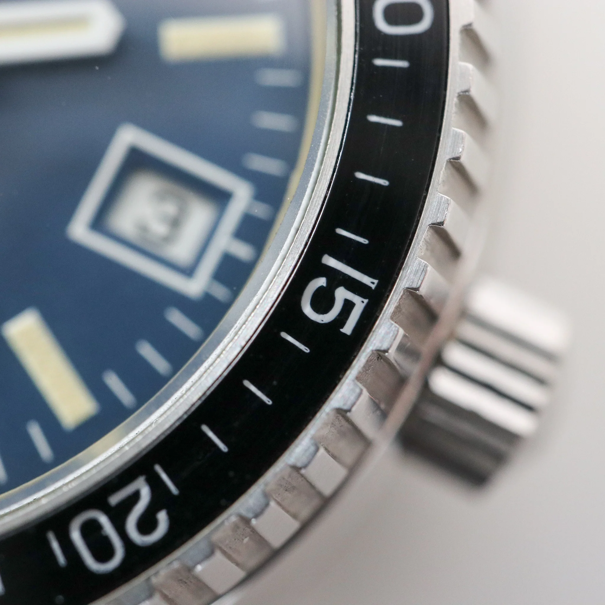 The condition is thus stunning. Very sharp lines on the stainless steel case including beautiful contrast between polished/brushed surfaces. Signed crown screws well. Setting time and date (quickset) goes flawlessly. Flawless bezel rotates with steady clicks. Flawless caseback with reference number perfectly readable. The crystal has 1-2 very small slight scratches. The blue dial is perfect with gorgeous yellowed tritium. Hands are equally flawless with tritium evenly discolored in the same vanilla hue. Everything is 100% original.