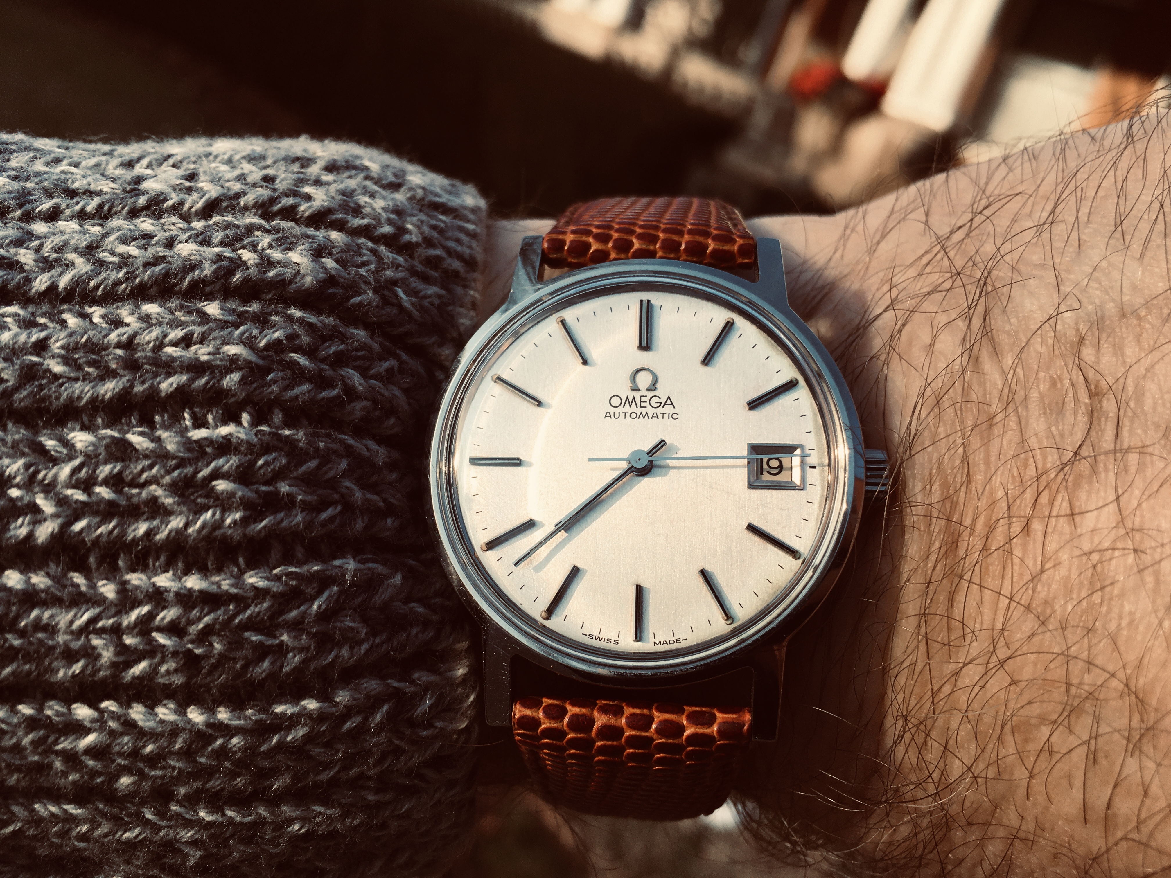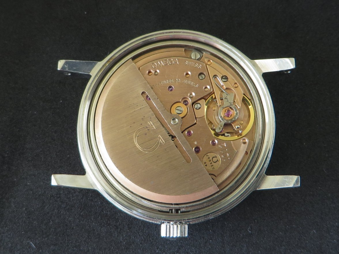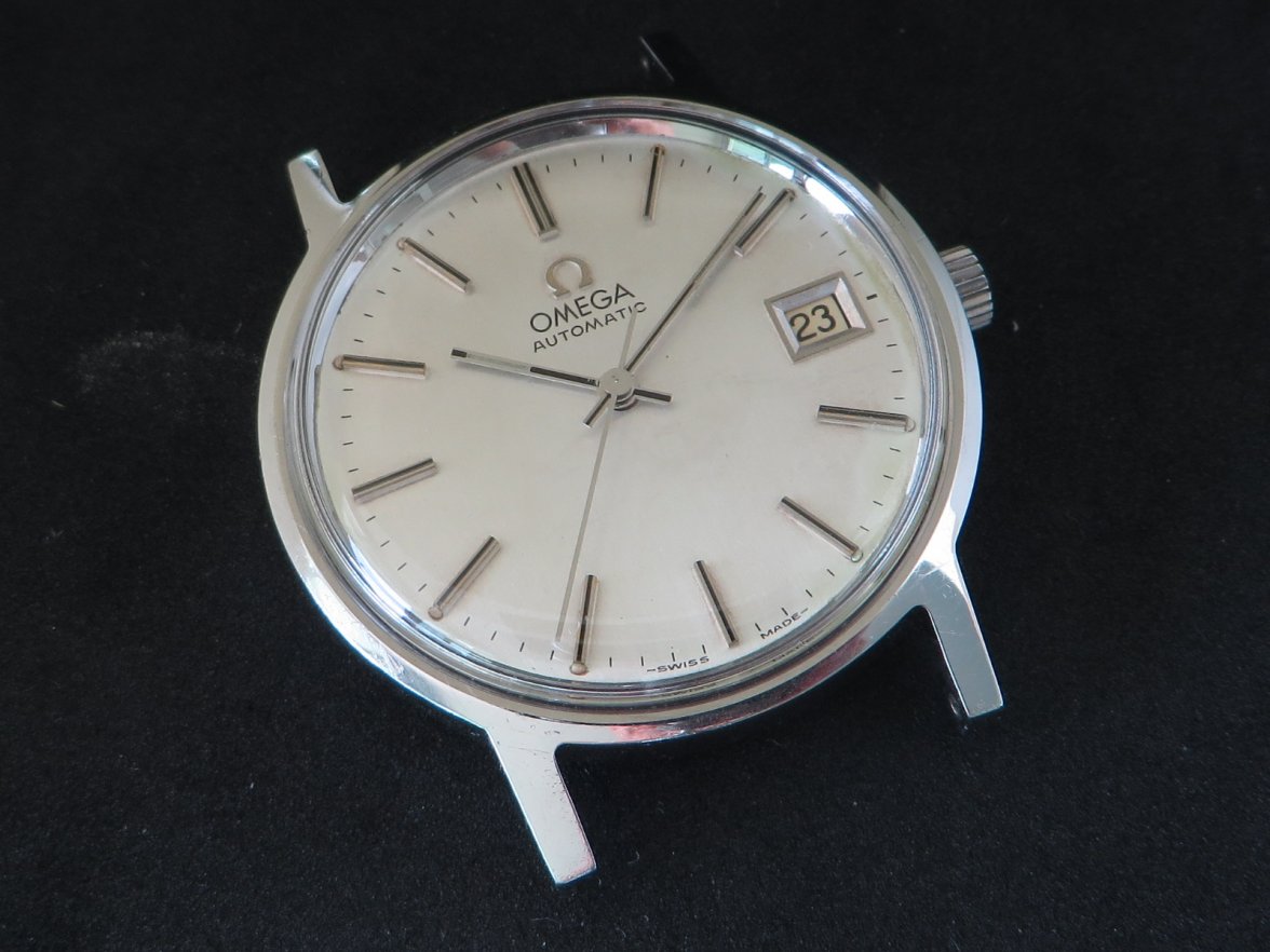 1977 Omega, Stainless Case, Quick Date Set Calendar, Ref 166.0163, Signed Crown, 23 Jewel, Lug to Lug 18mm, Baton hour markers, Movement 1012, 35 mm, 37 mm with crown, 28, 8000 BPH