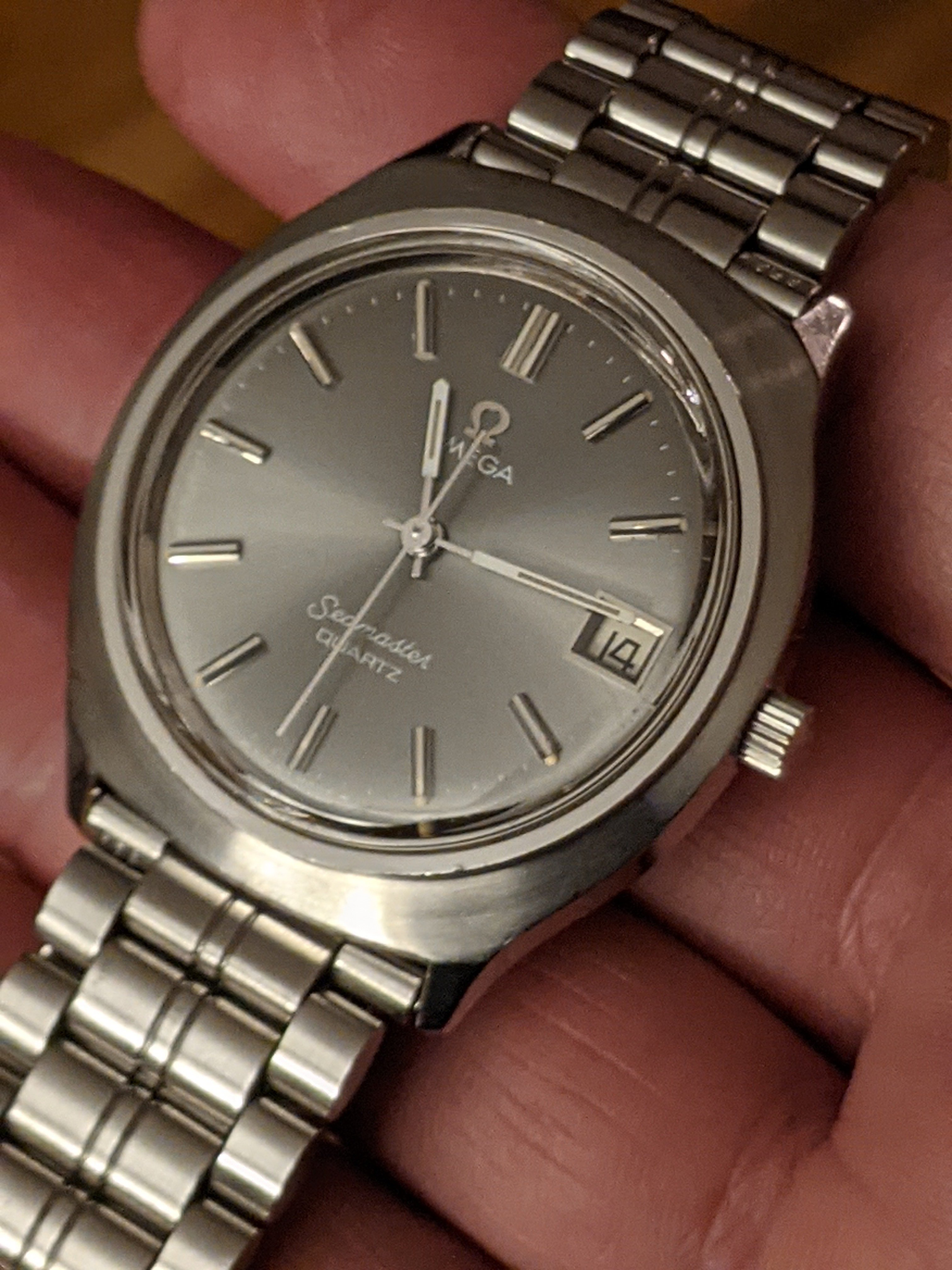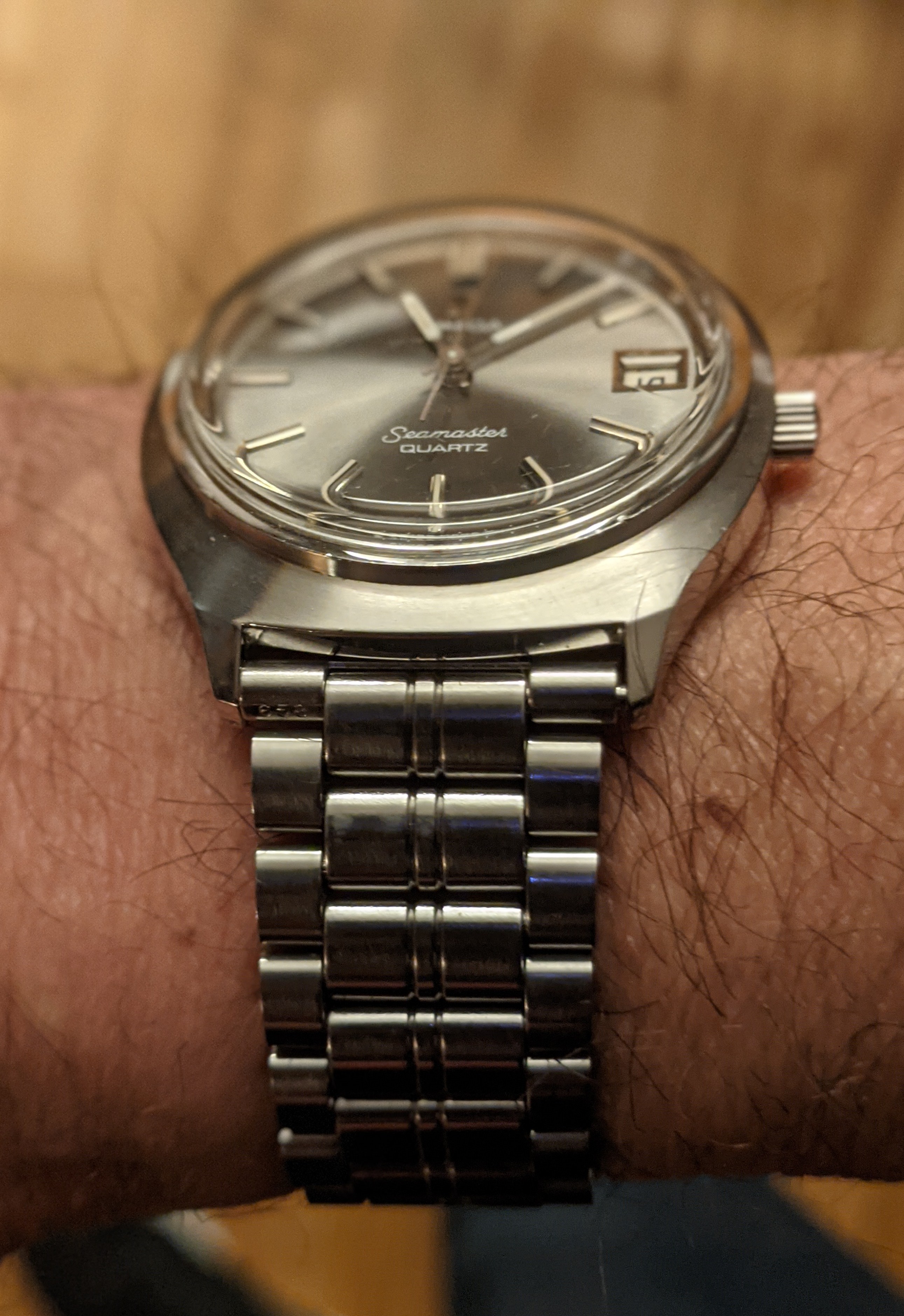 ·My first post here, so if this is the wrong spot for it, please feel free to delete or remove it. I recently purchased this quartz 1977 Seamaster on eBay for $320 USD (which, according to the Interwebs, is about 245 GDP or 430 AUD) from a seller who is local to me and offered a 14 day return guarantee. I'm still in that return window, so wanted to try to confirm authenticity as best I can and make sure I didn't overpay. The seller has a good reputation on eBay with a lot of sales, but mostly sells second hand jewelry. I got the sense that they probably don't know much about watches or about this watch's authenticity (hence the return guarantee).