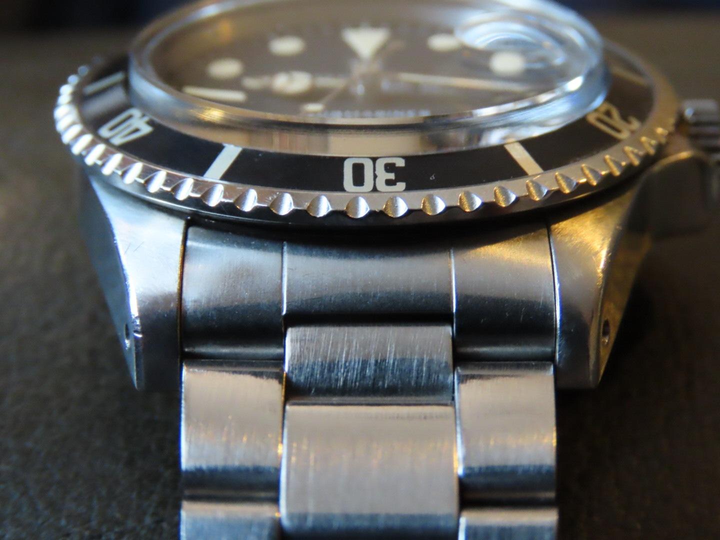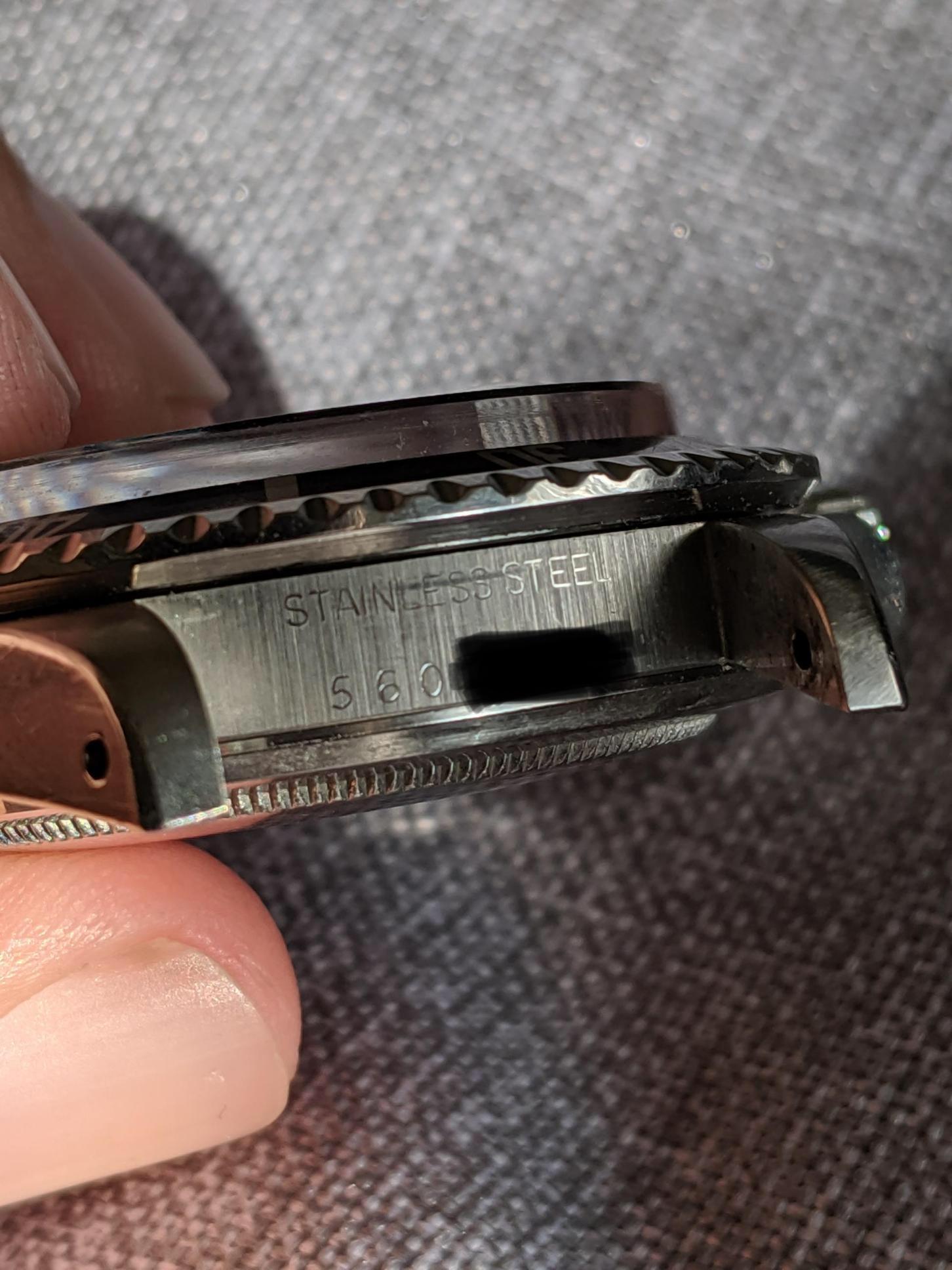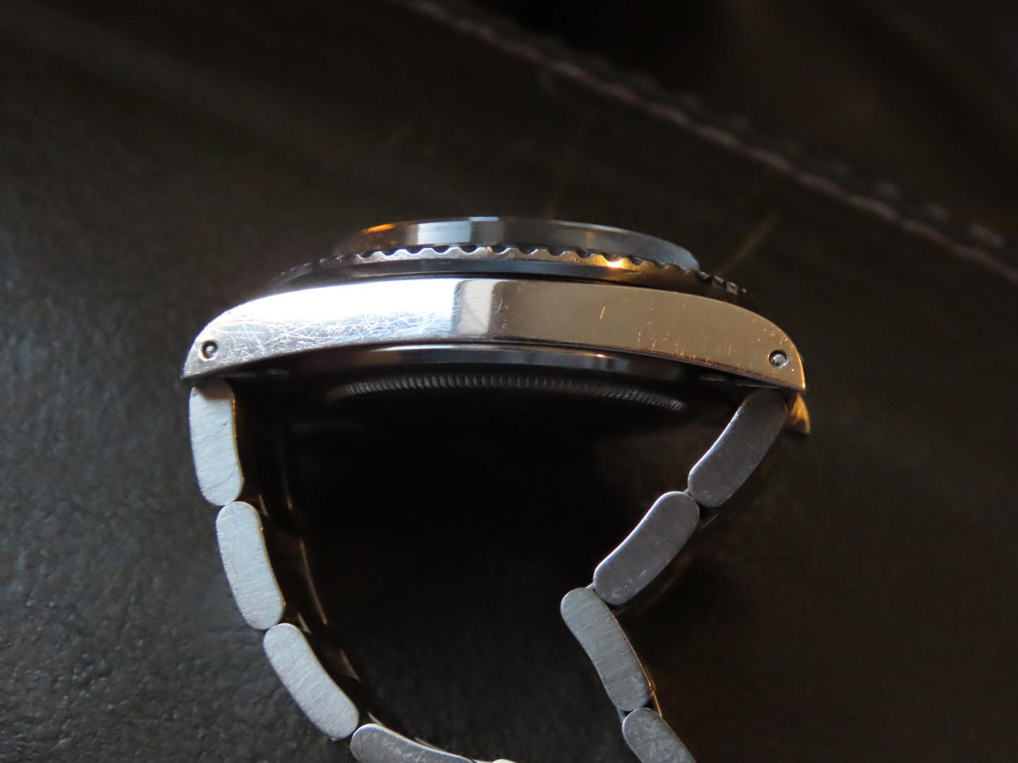 Excellent case that has a “Sleeve polished” finish. Perhaps polished in the past, but retains full lugs and some of the original chamfers. The black bezel insert is also original and in excellent condition and shows very light wear from use, and still retains original lume pip.