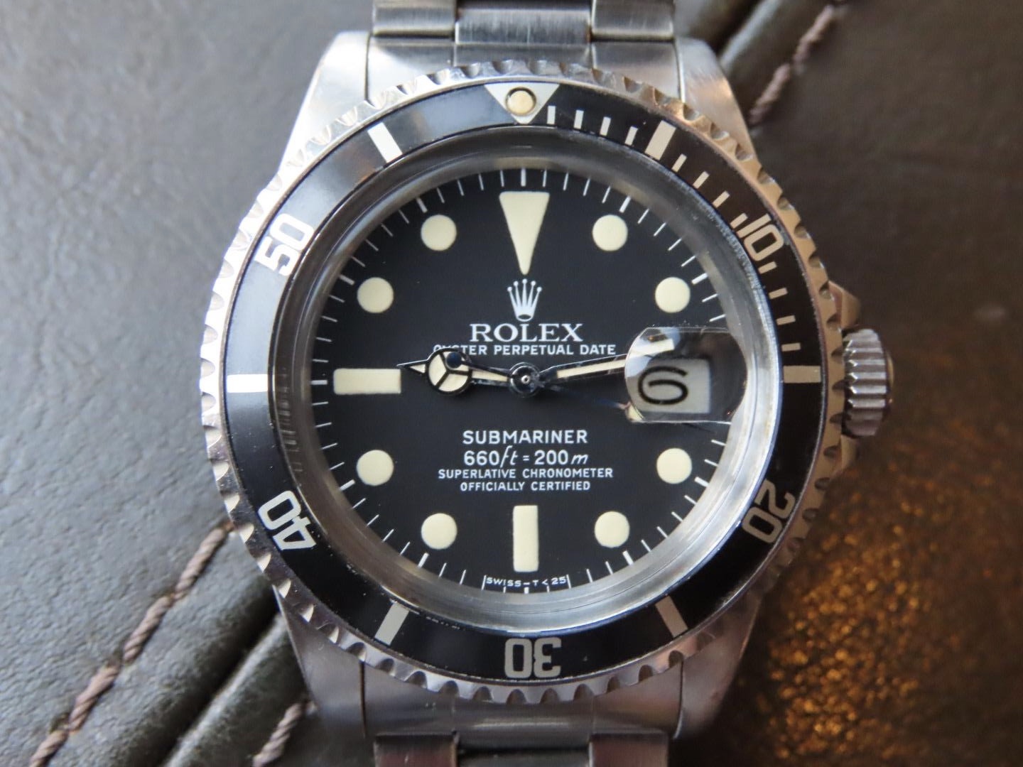 Excellent matte dial, very clean overall with warm sandy markers and matching hands. Lume is all original.