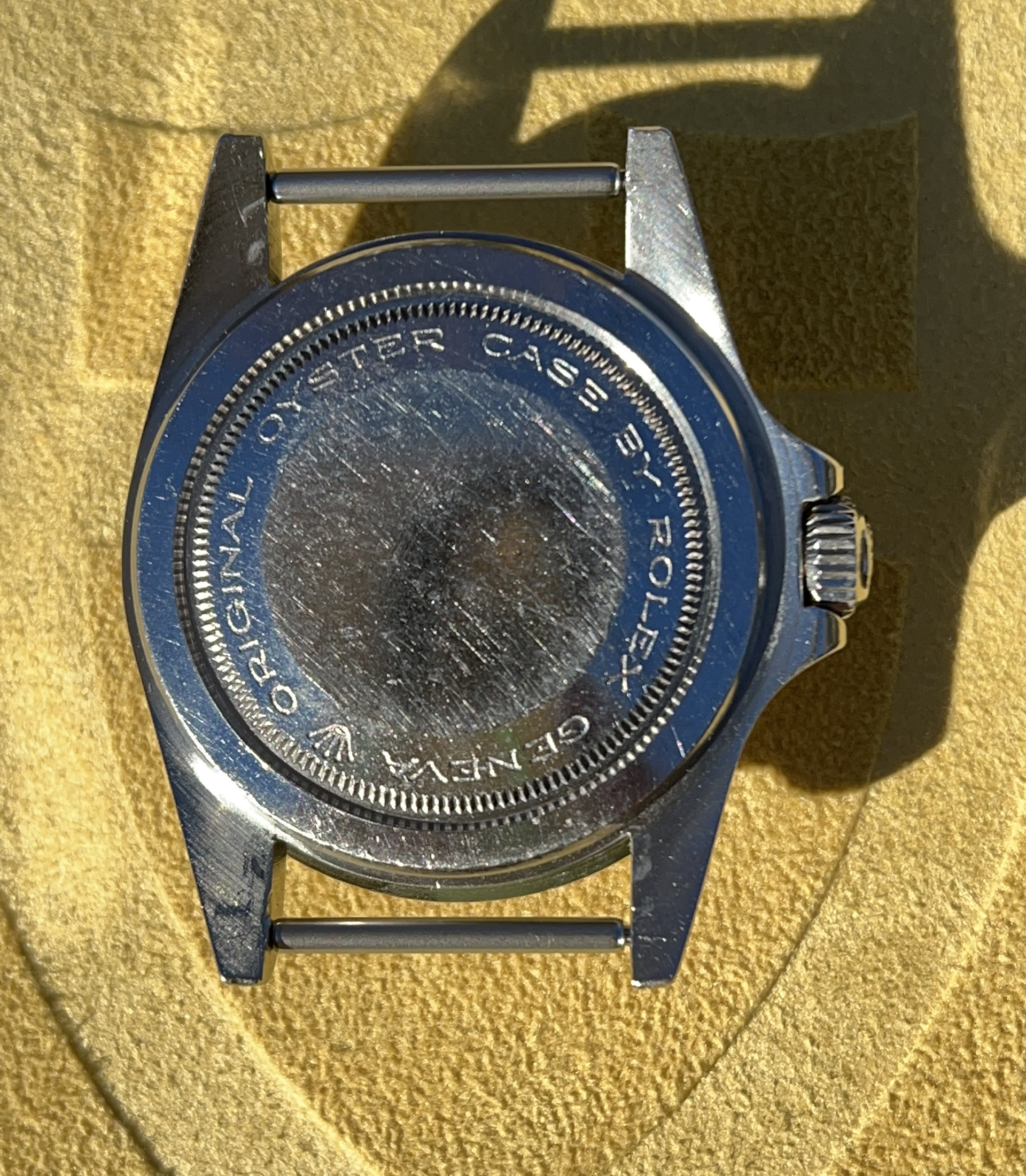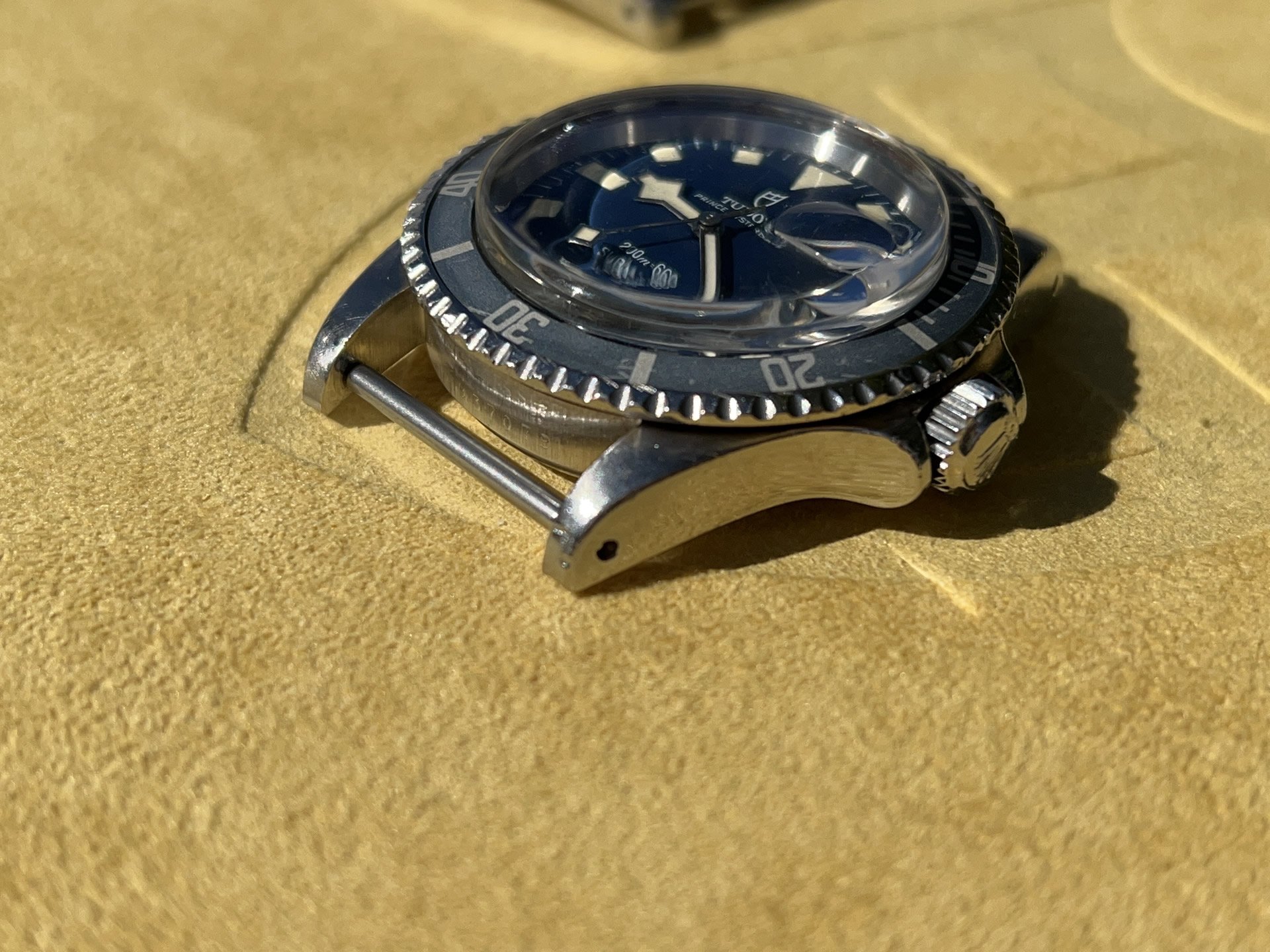 Crystal: same crystal on watch when acquired a decade ago. Possibly original to the watch, it is a rounded top and has nice color / warmth.