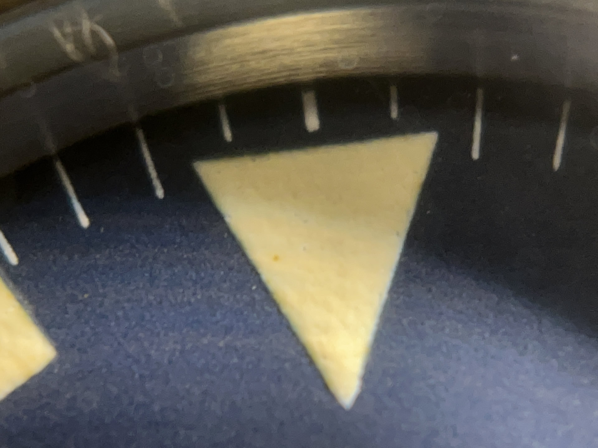 Hands: original lume with creamy patina, semi-gloss due to FACTORY stabilization on hand top that occurred on late 79 thru early 80s snowflake hands (when watchmakers do preventative stabilization it is done on underside of hands). Hands nicely match the dial.
