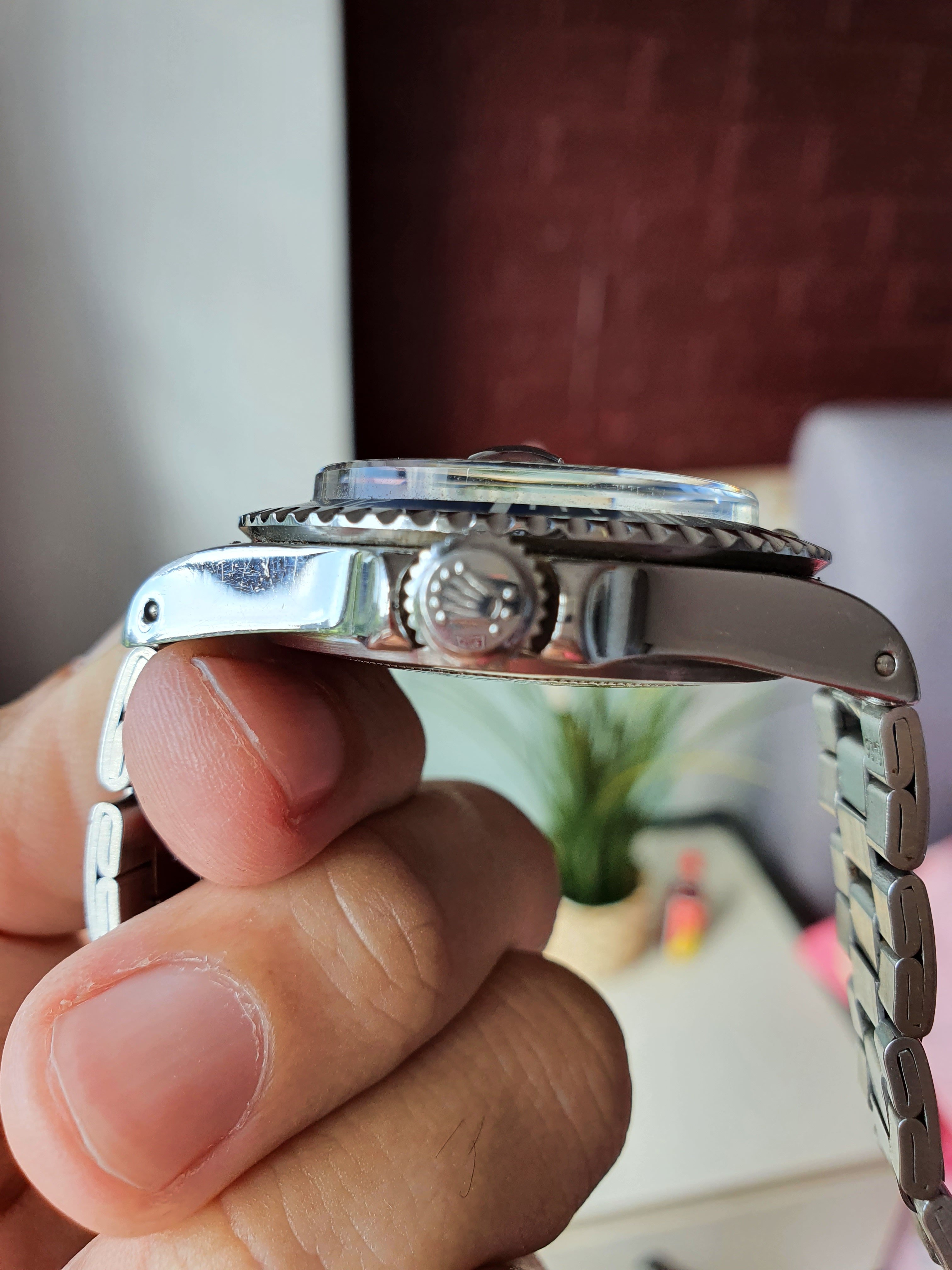 The dial is in good condition with no dial rots as seen in other models. There is no loss of lume with yellow patina developed evenly on all the markers. However, there is a scratch at the dial’s 3 o’clock position on the right edge of the dial. It can only be seen in certain slanted angles and is not visible in daily wear.