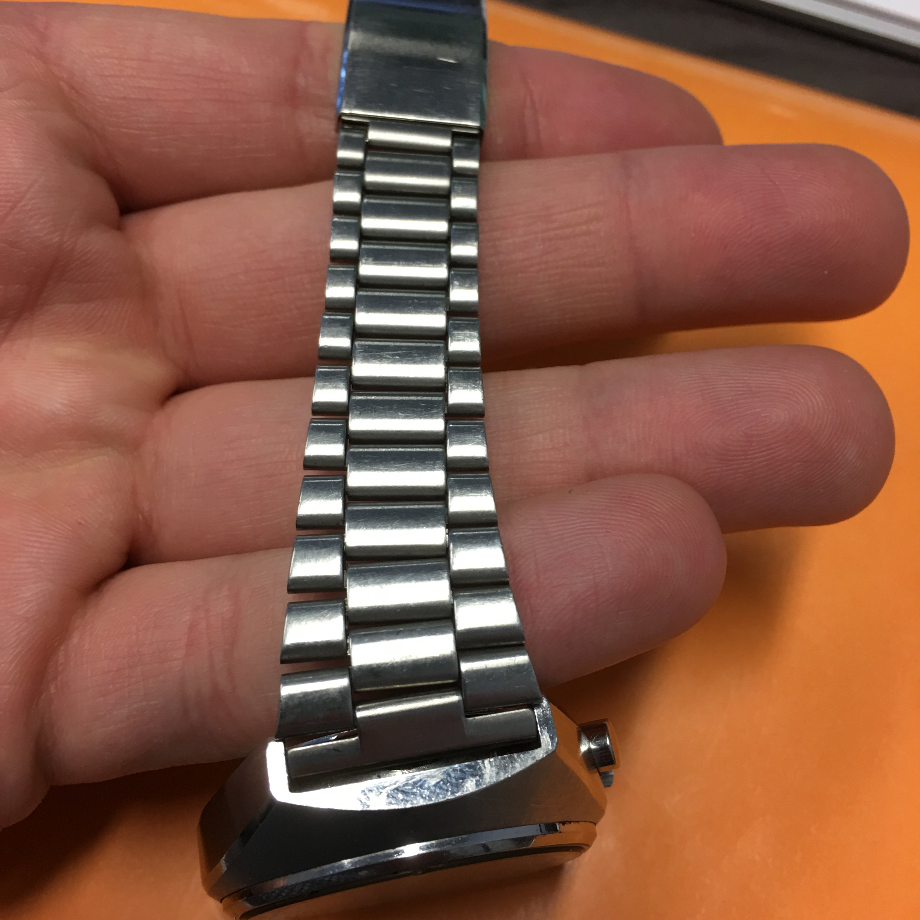 Bracelet: 1162/1/172 Good condition, needs a clean, some desk diving swirls on the clasp - no stretch in the bracelet, clasp is very tight - big enough for a 7inch wrist.