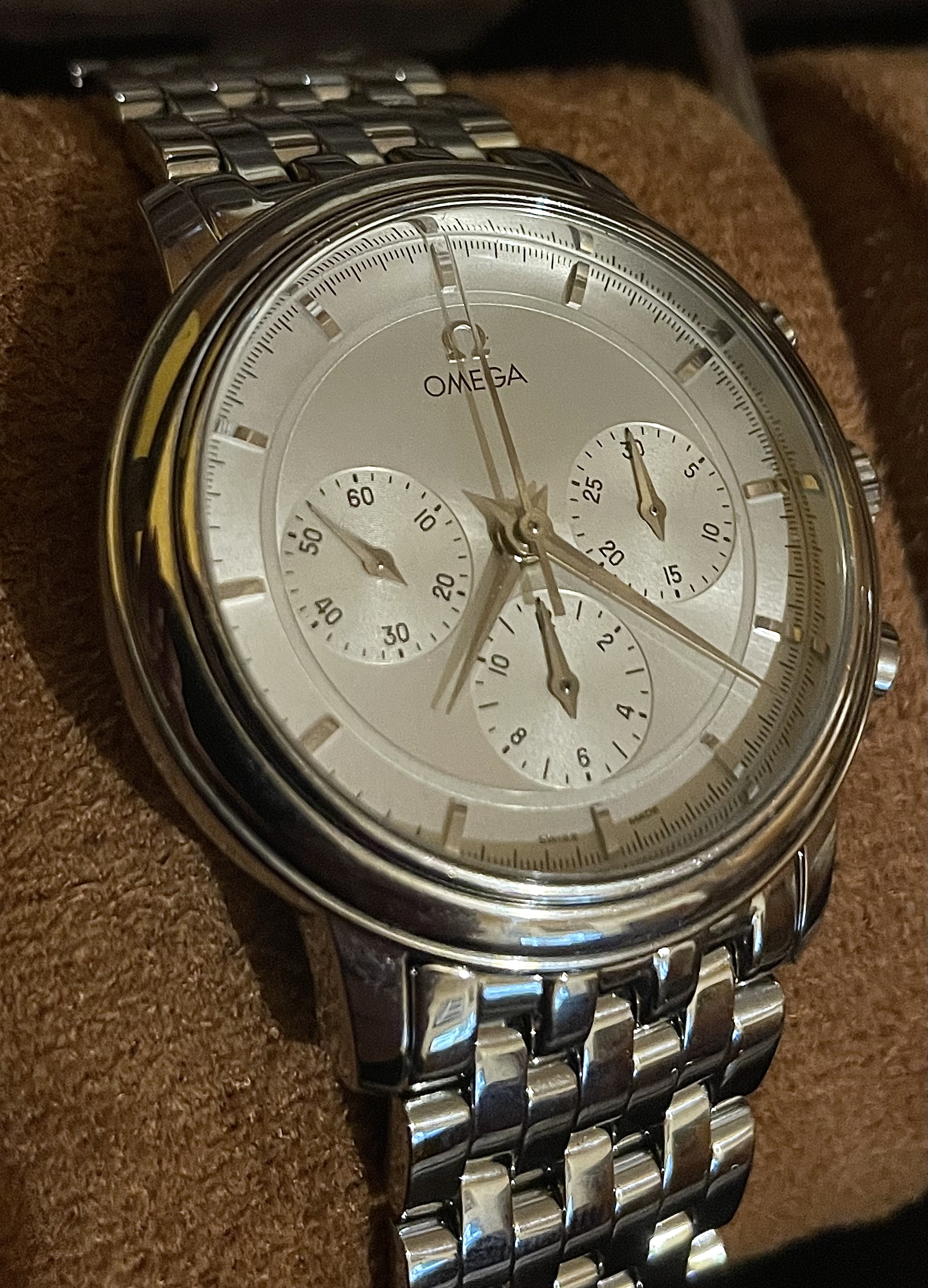This one has finally been united with a stainless steel bracelet. I've been quietly looking for a couple years, but finally managed to find an unused example that still had the plastic covers on at a great price.