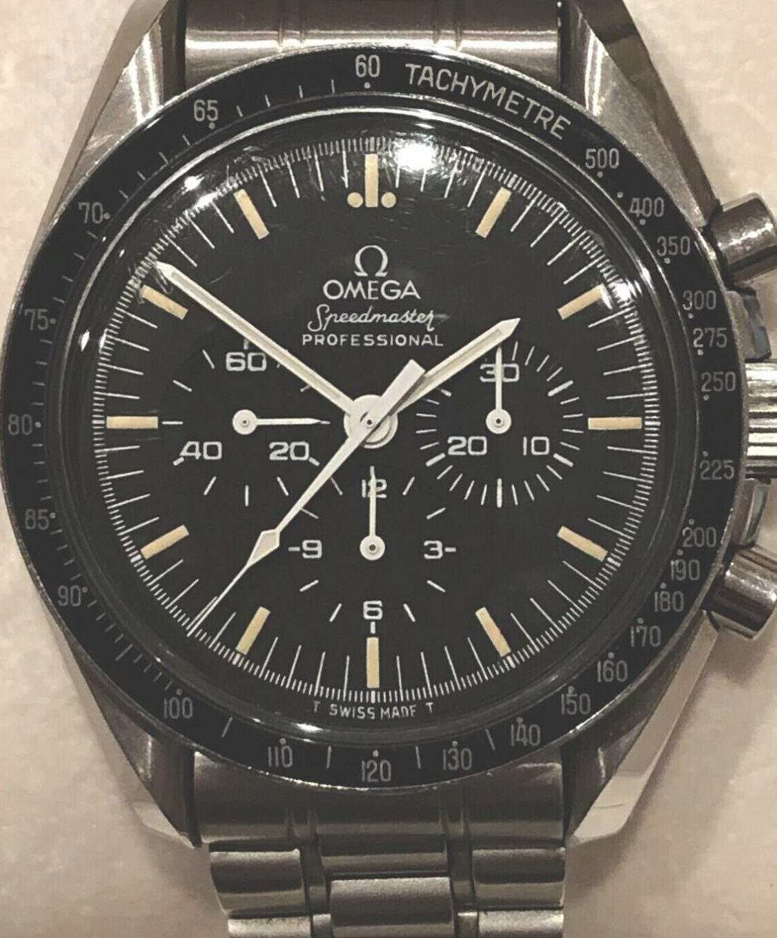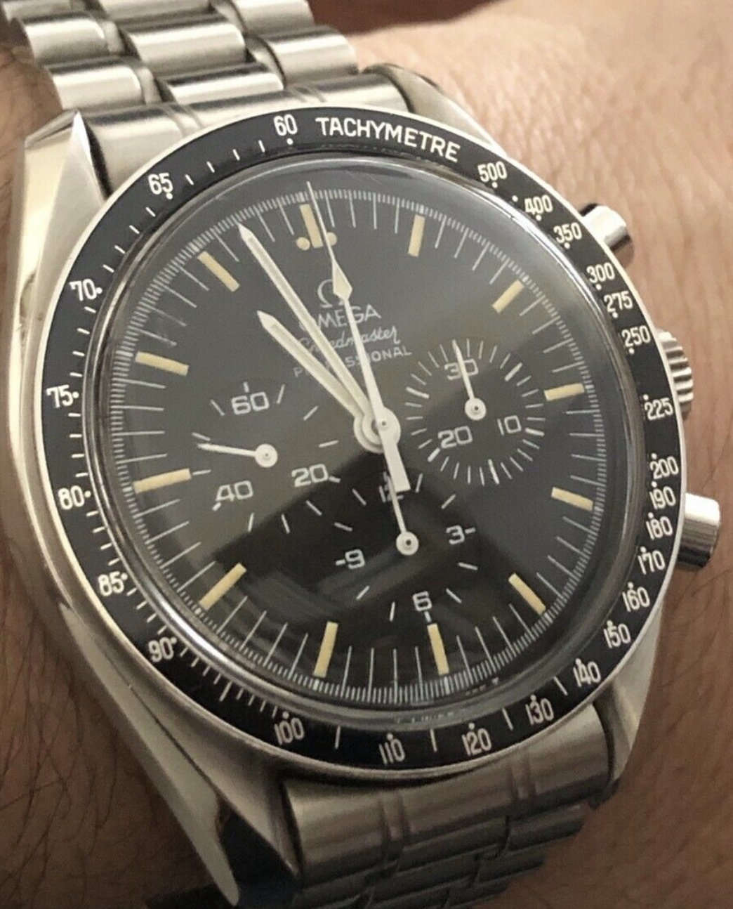 路Second one has far more attractive lume, but looks like the pictures were taken with a potato. Can't really see any detail. Unless it is important to you to have one NOW i would wait and see what I can find. That first one is almost a $2K USD premium over what I would consider a fair market value. Does anyone really care that the case was made by CRS or Spillman? That's the first I've ever heard of that justifying a premium for an '80s speedmaster.