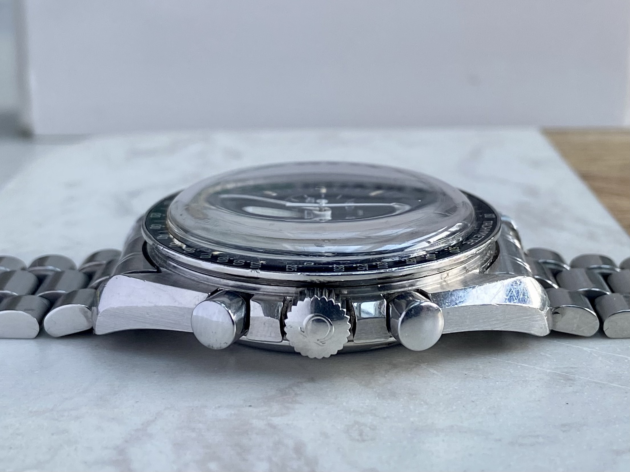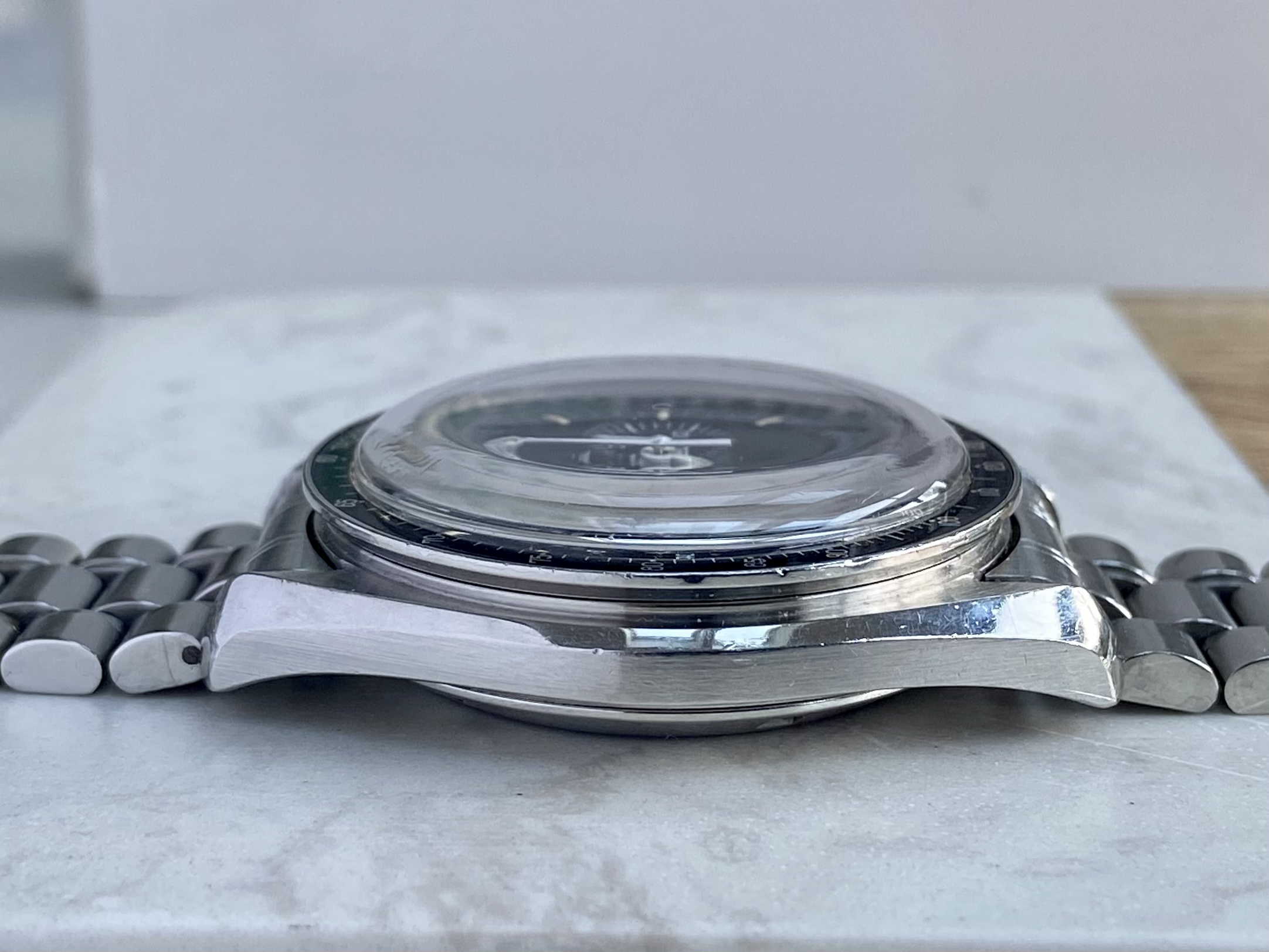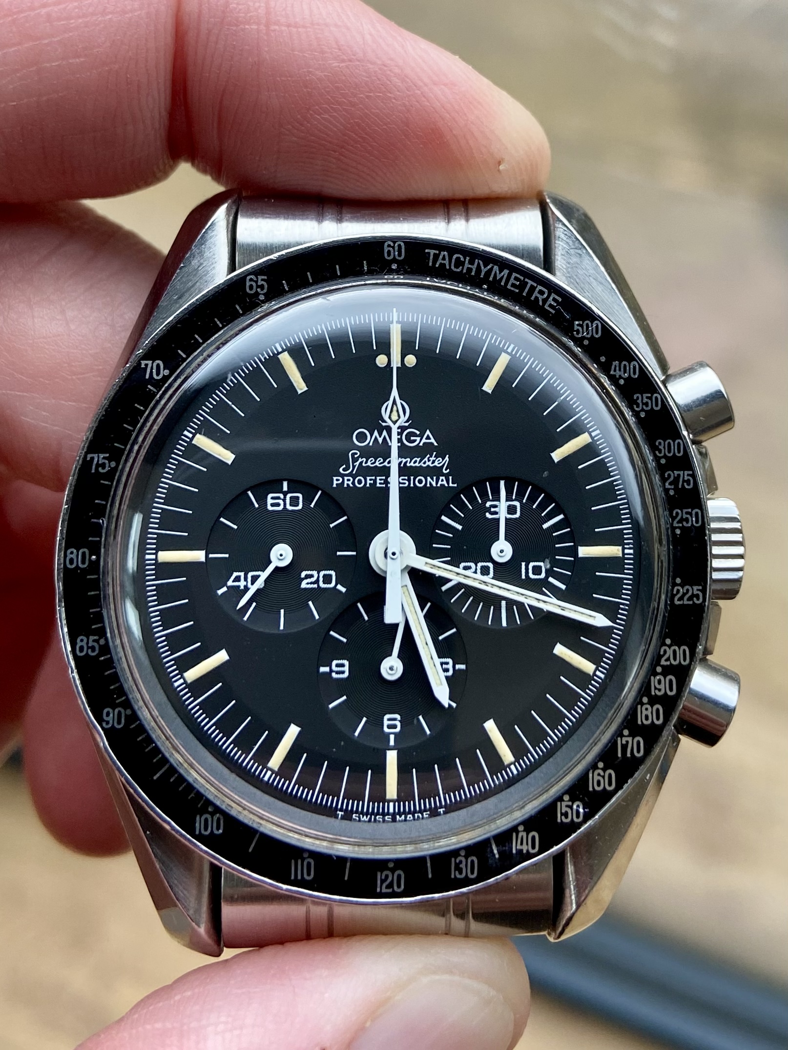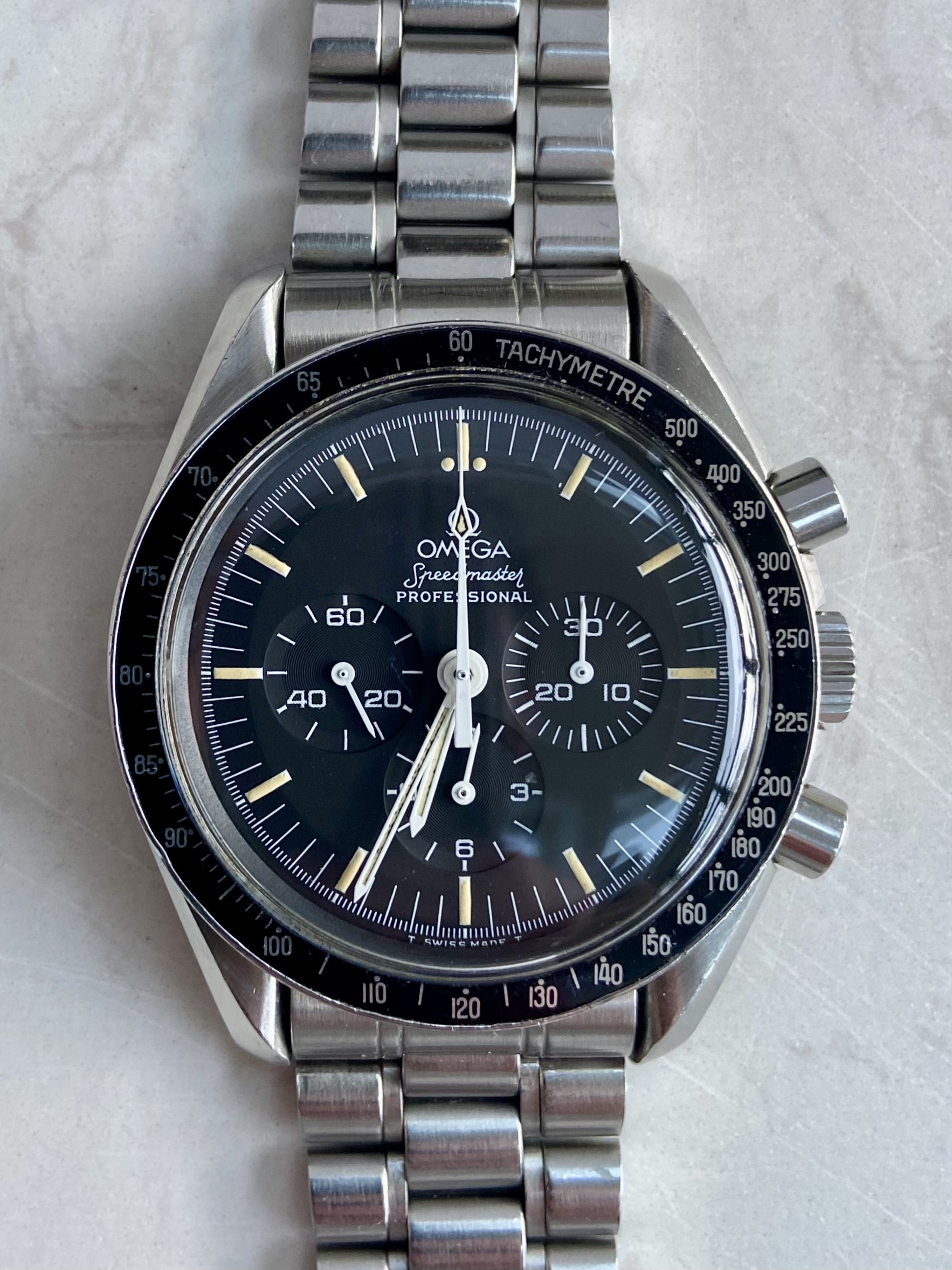 These 80’s/early 90’s Speedmasters often age wonderfully with attractive yellow lume and still retain the same bezel used in the 70’s.