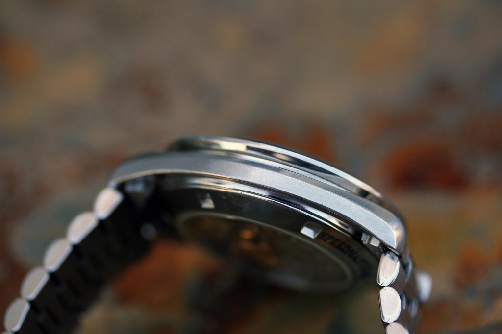 No box or papers. Since the red dot is still intact, the assumption is that the watch has never been serviced.