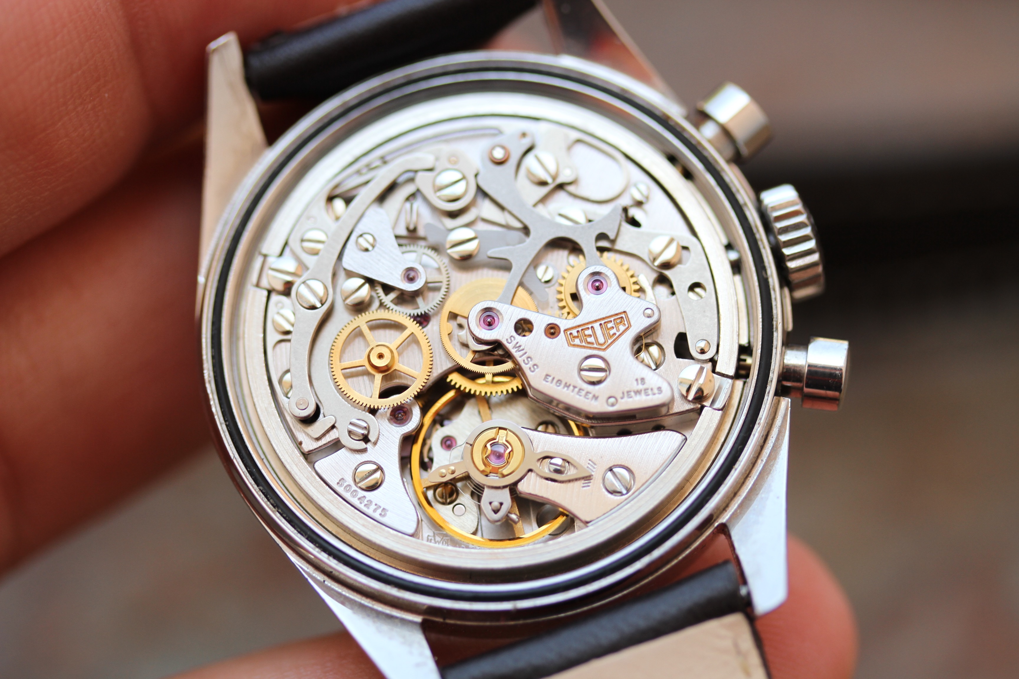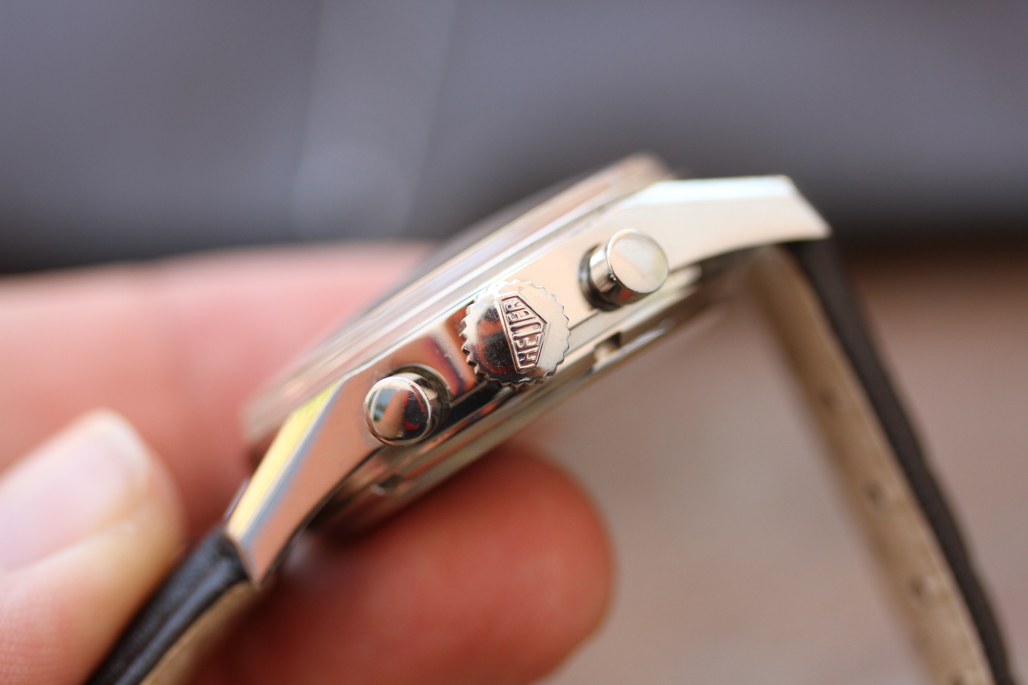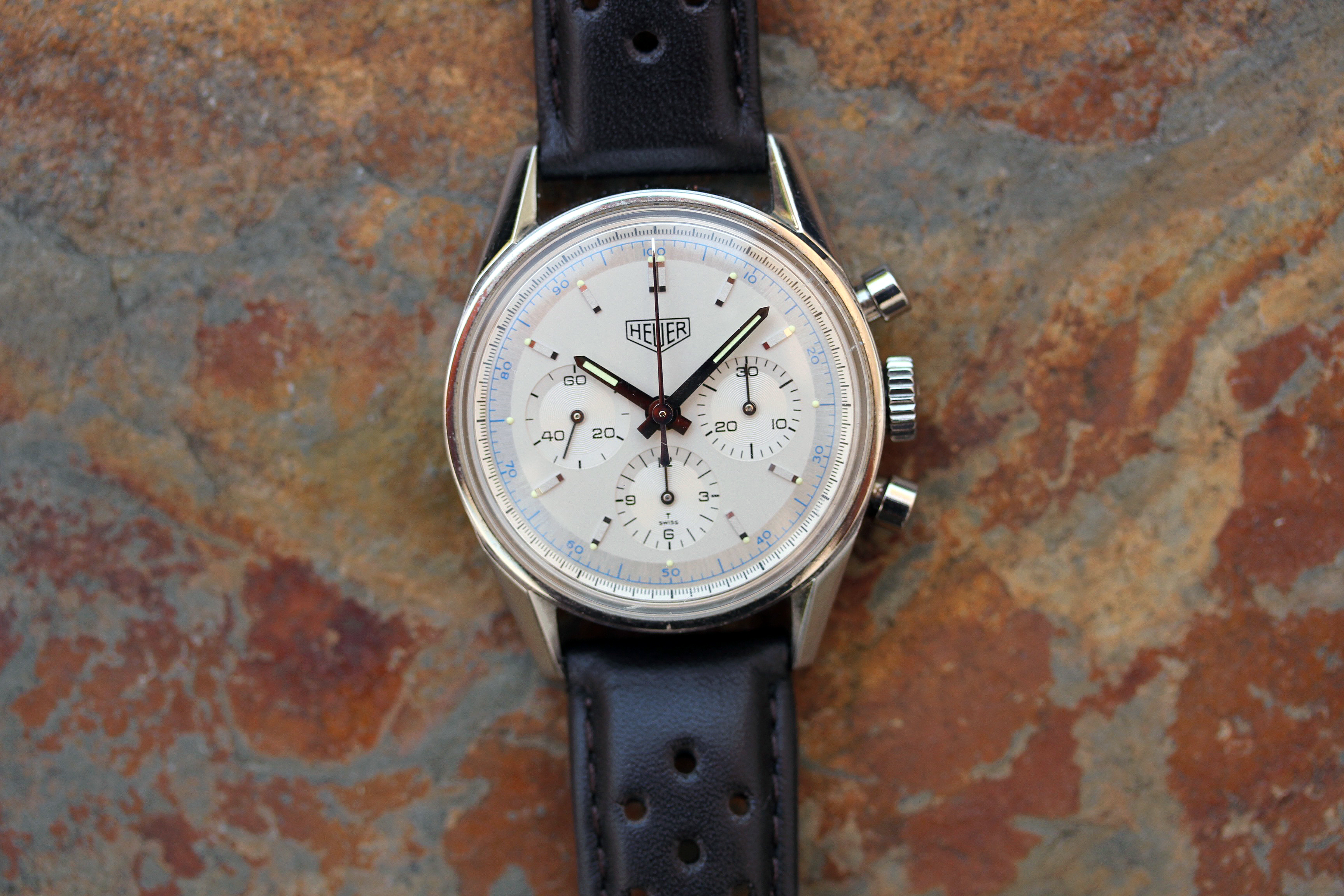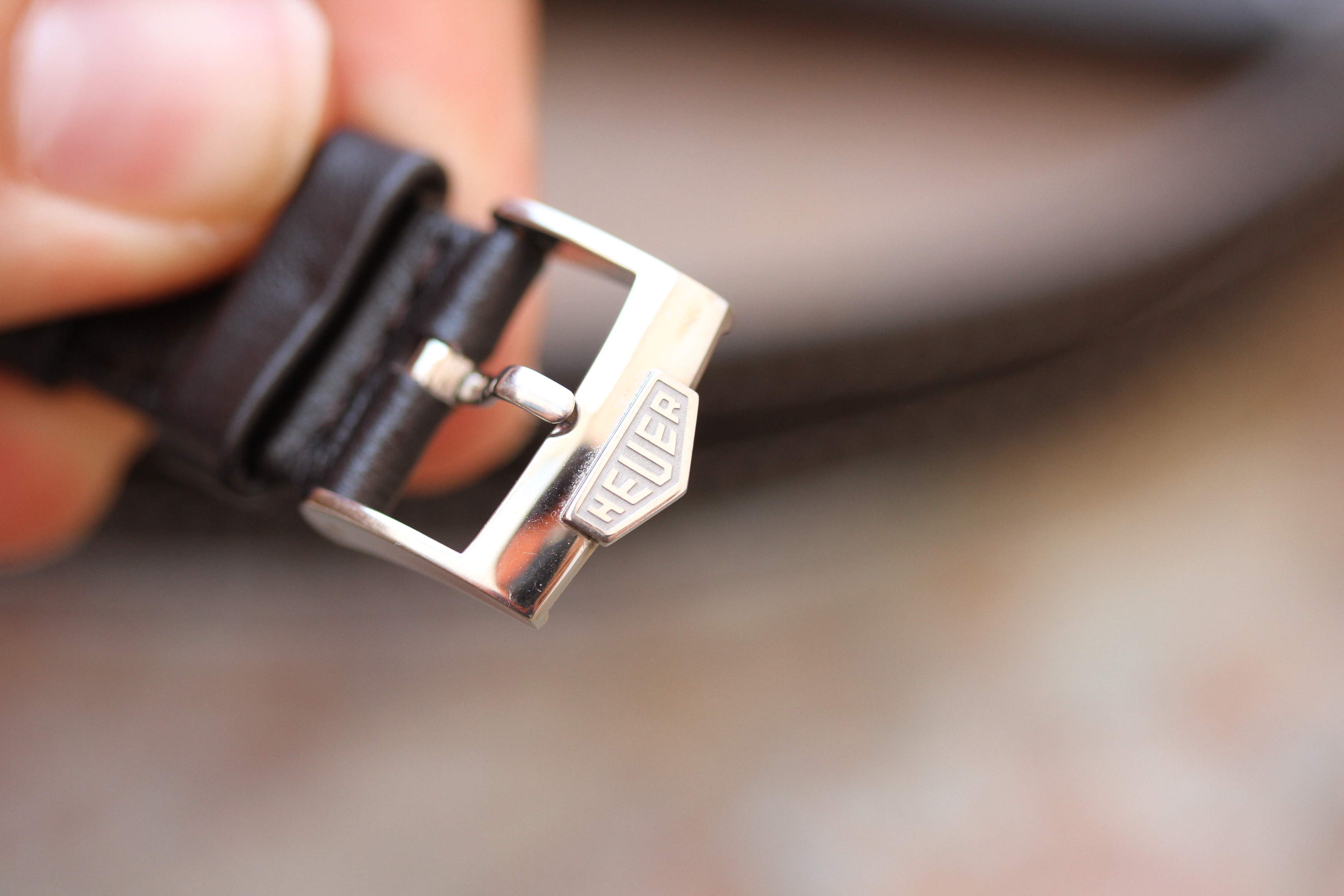 The strap has been replaced, but the original Heuer buckle remains.