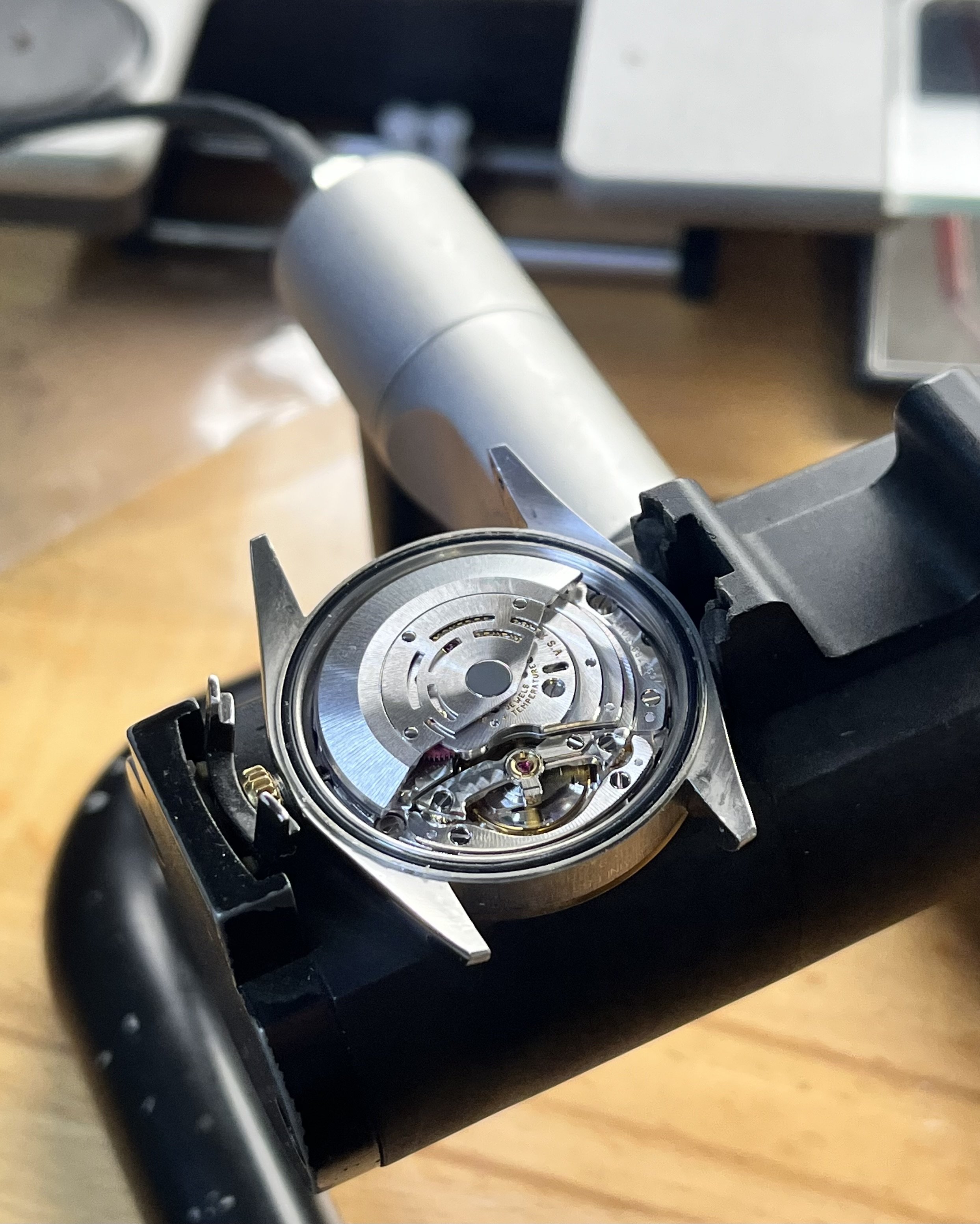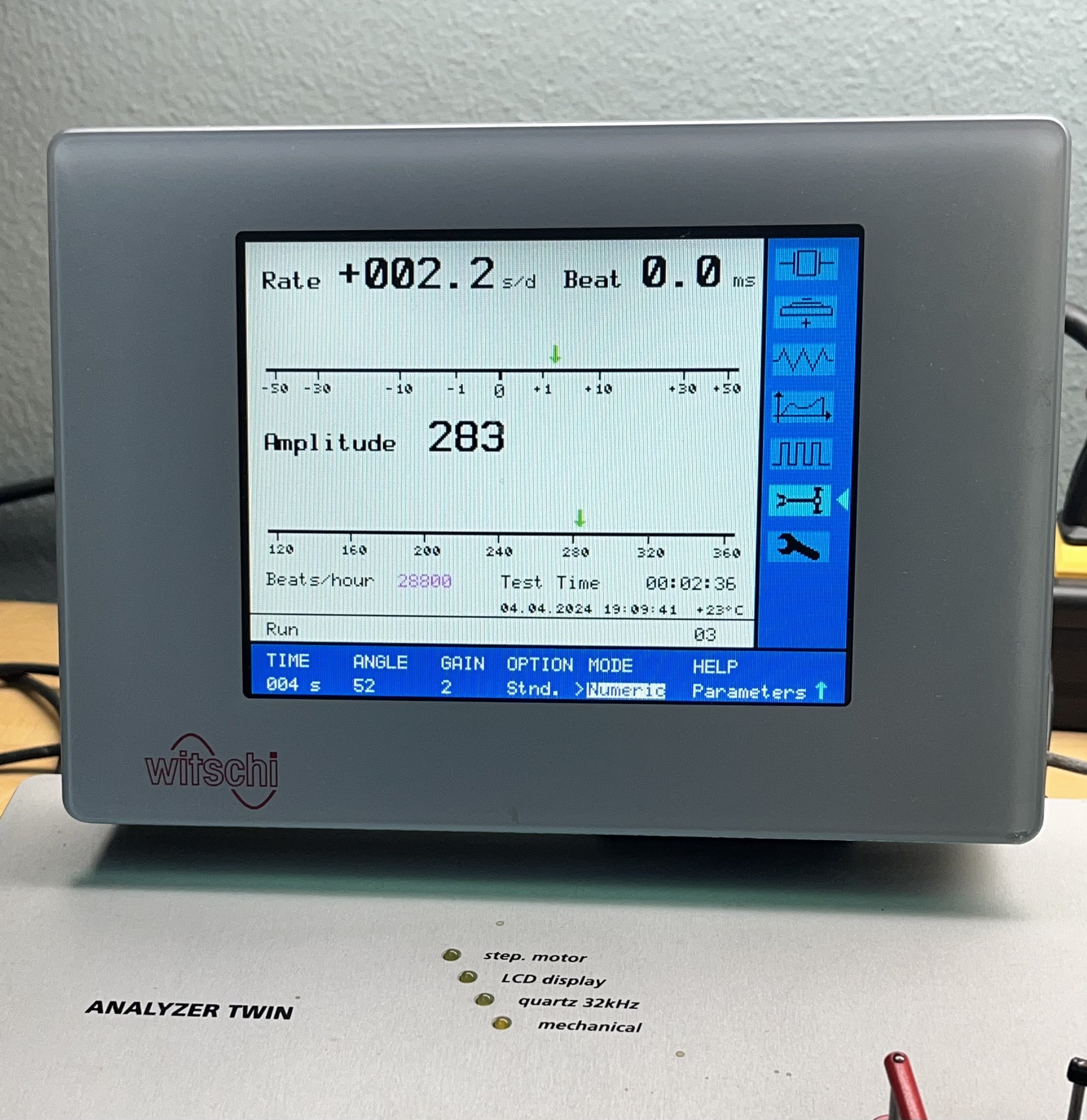 Mechanical Condition: I did take the watch to my watchmaker in early April to determine if the watch was in need of a service. His opinion was that, despite the fact that the watch appears never to have been serviced, it still did not require one. He made a very small timing adjustment. These picture were taken 04/04/2024.