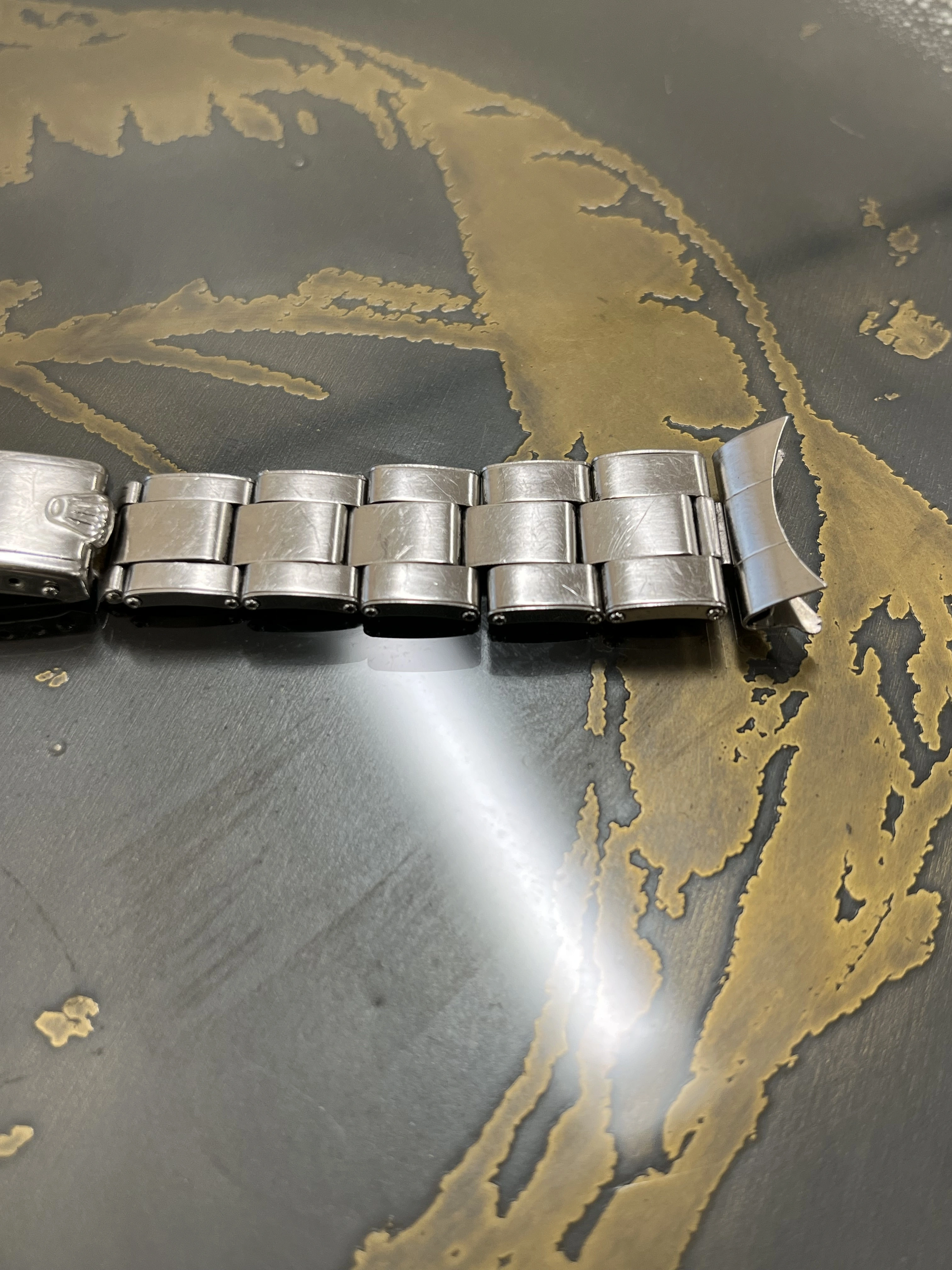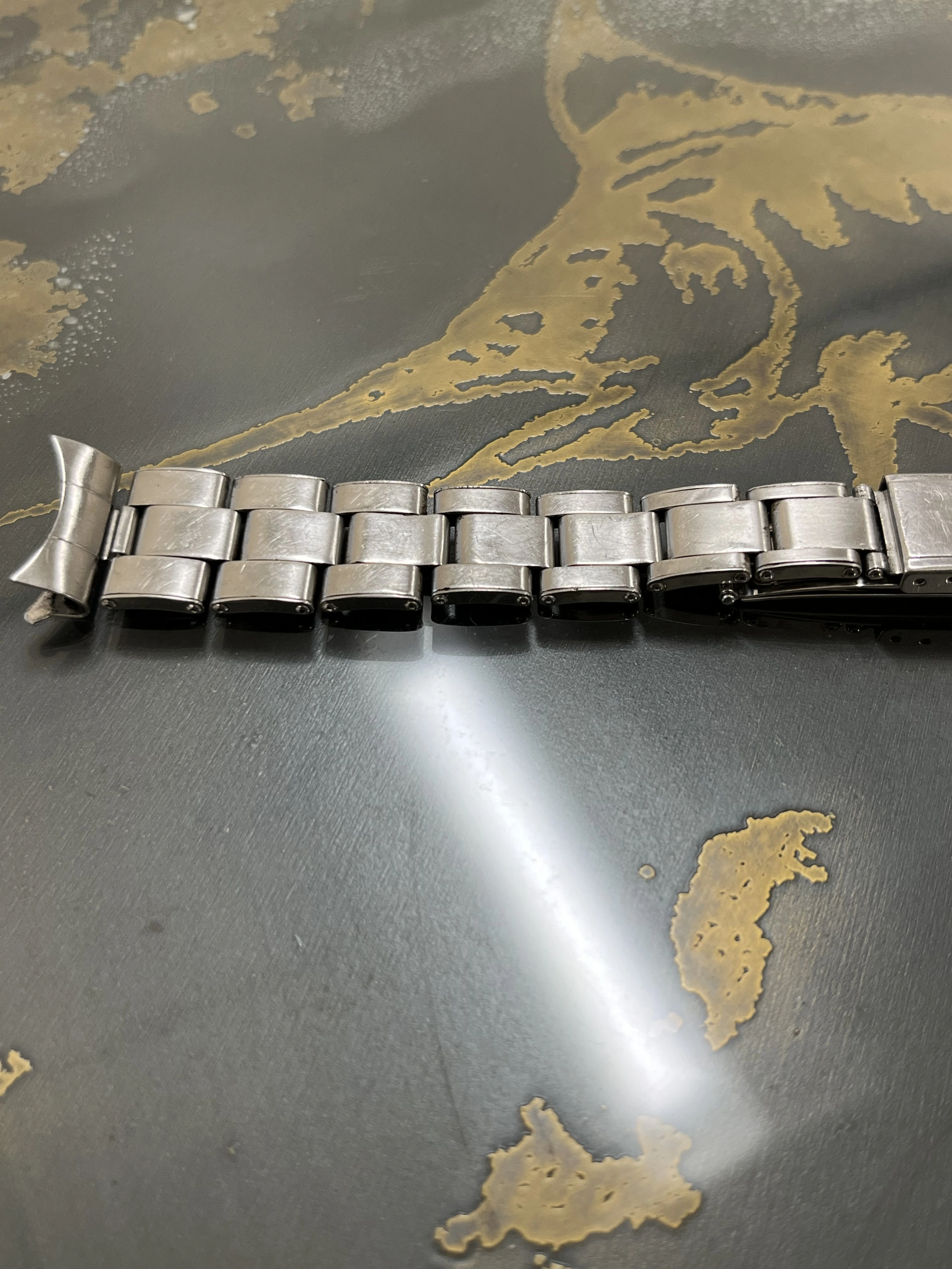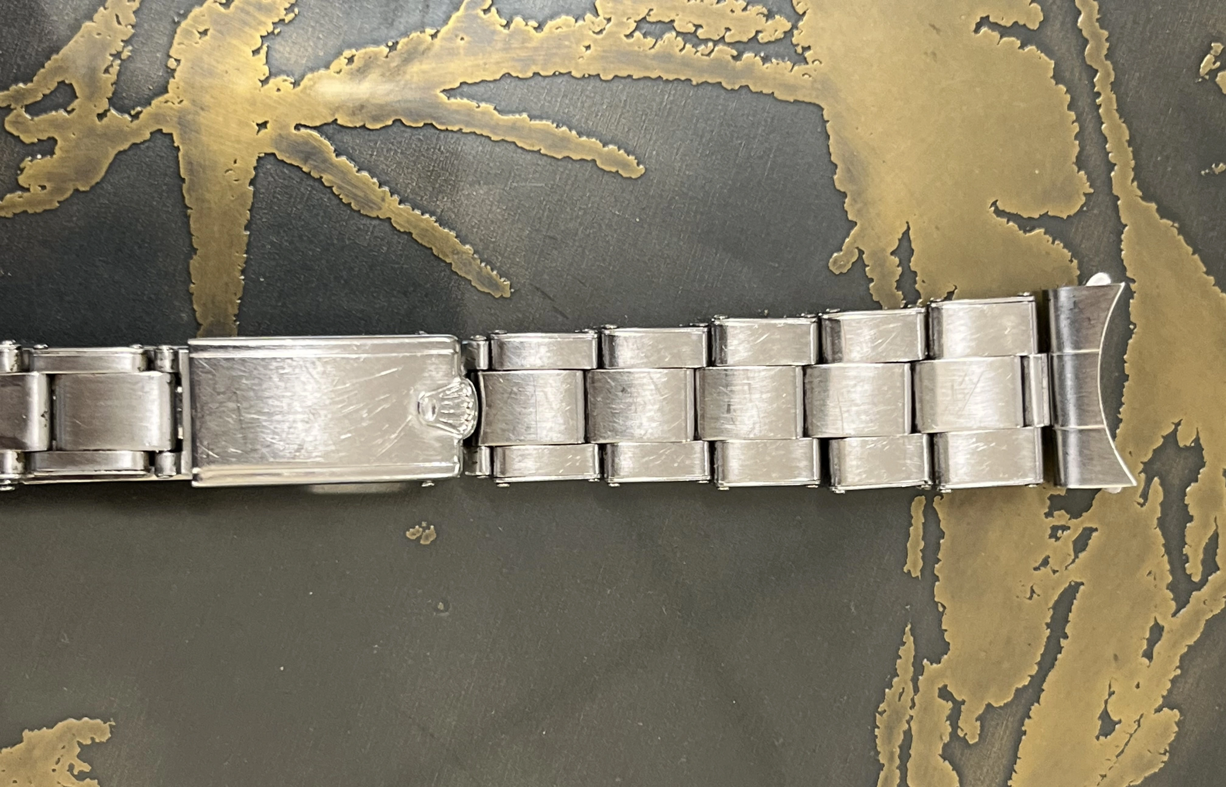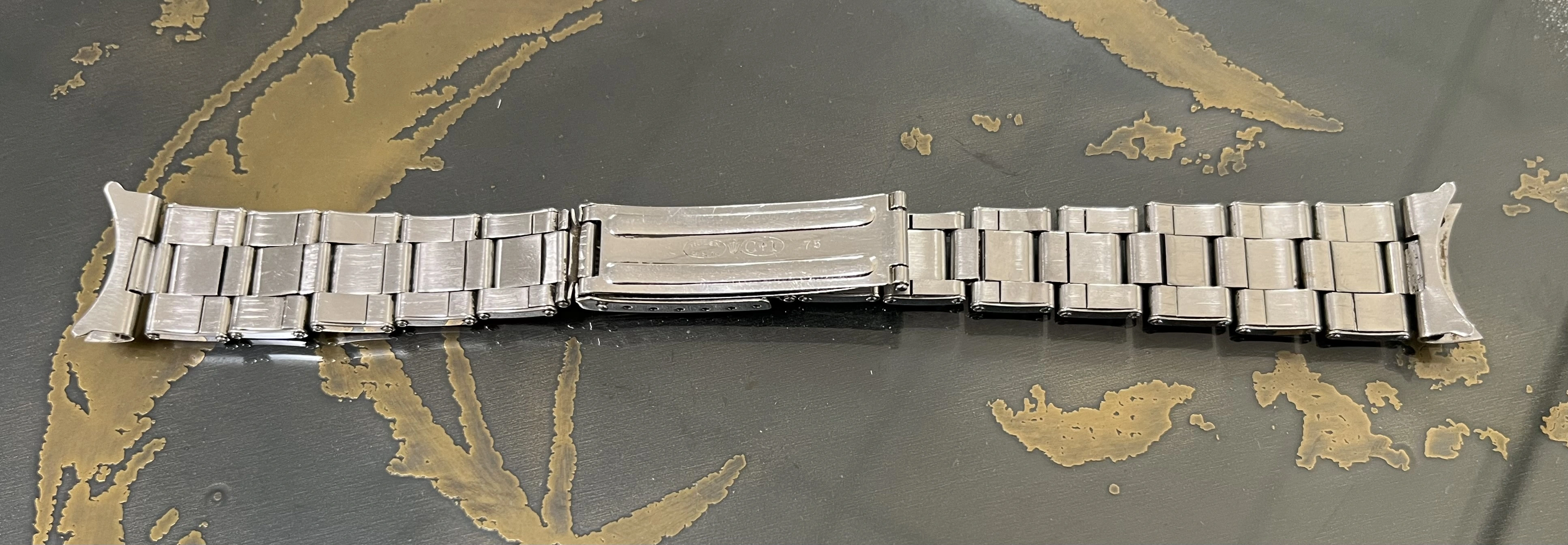 ·Hello up for sale is a Rolex C + I rivet bracelet with 19mm ends. 7 links plus 5 links. As seen in the photos, the 5 link side is the spring loaded type (7 link side is fixed type). Springs are all tight and functional. Max stretch shown in photos; bracelet is in good condition.