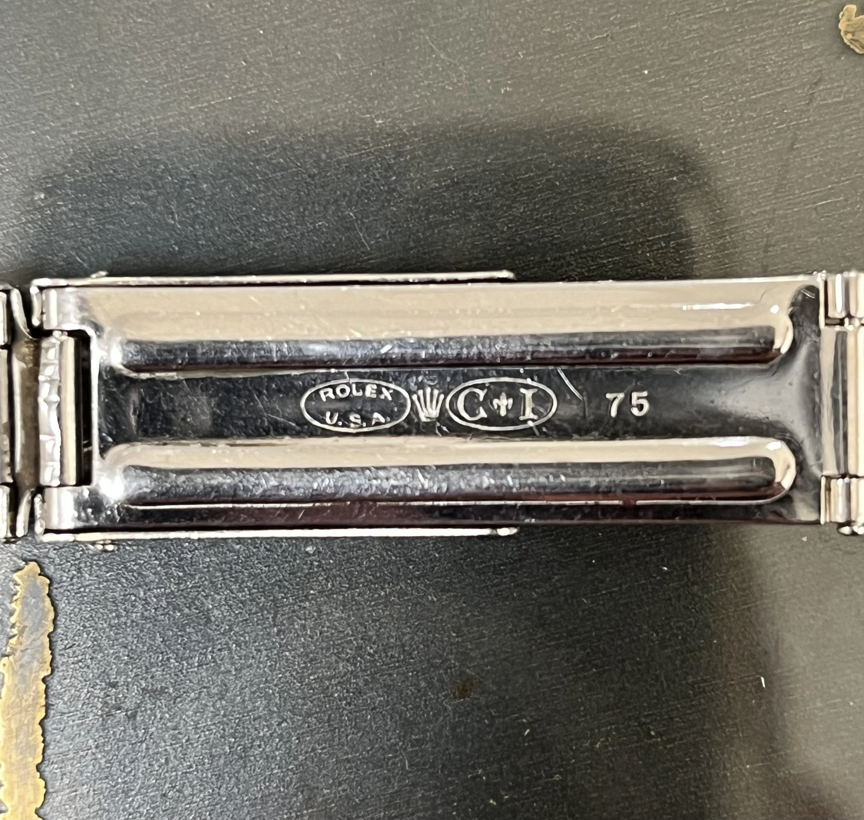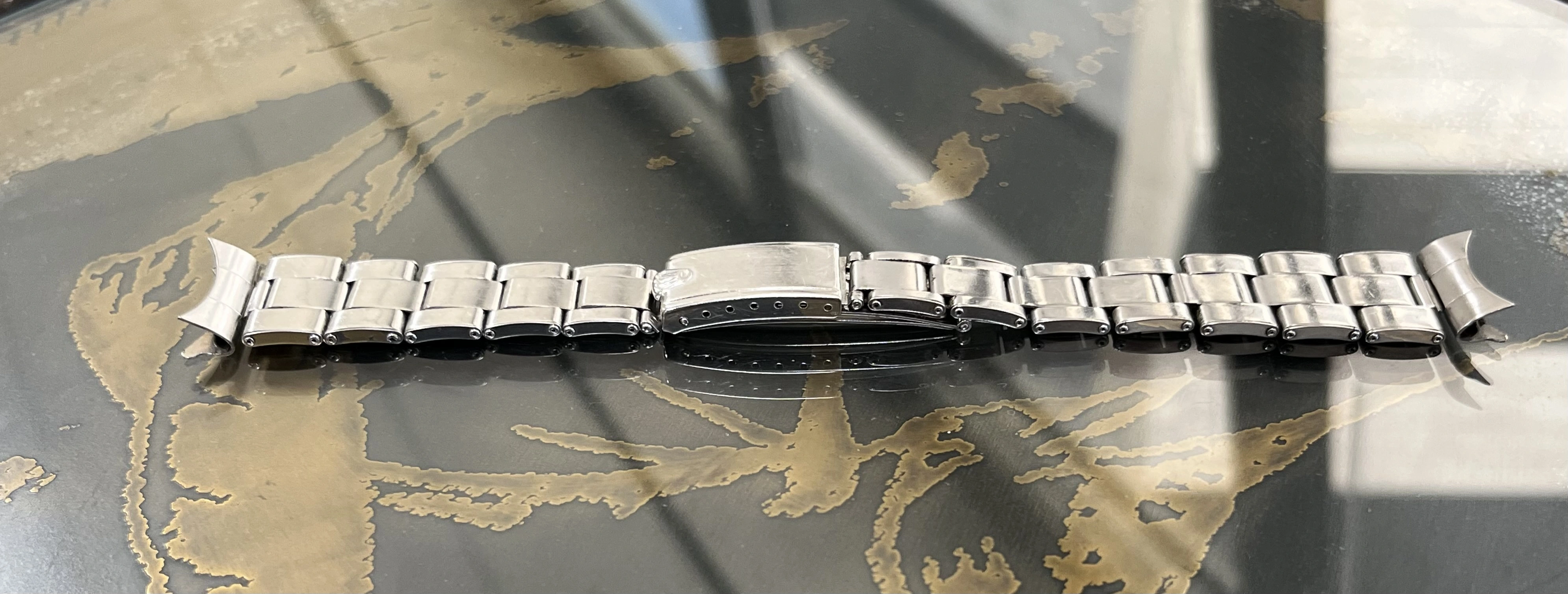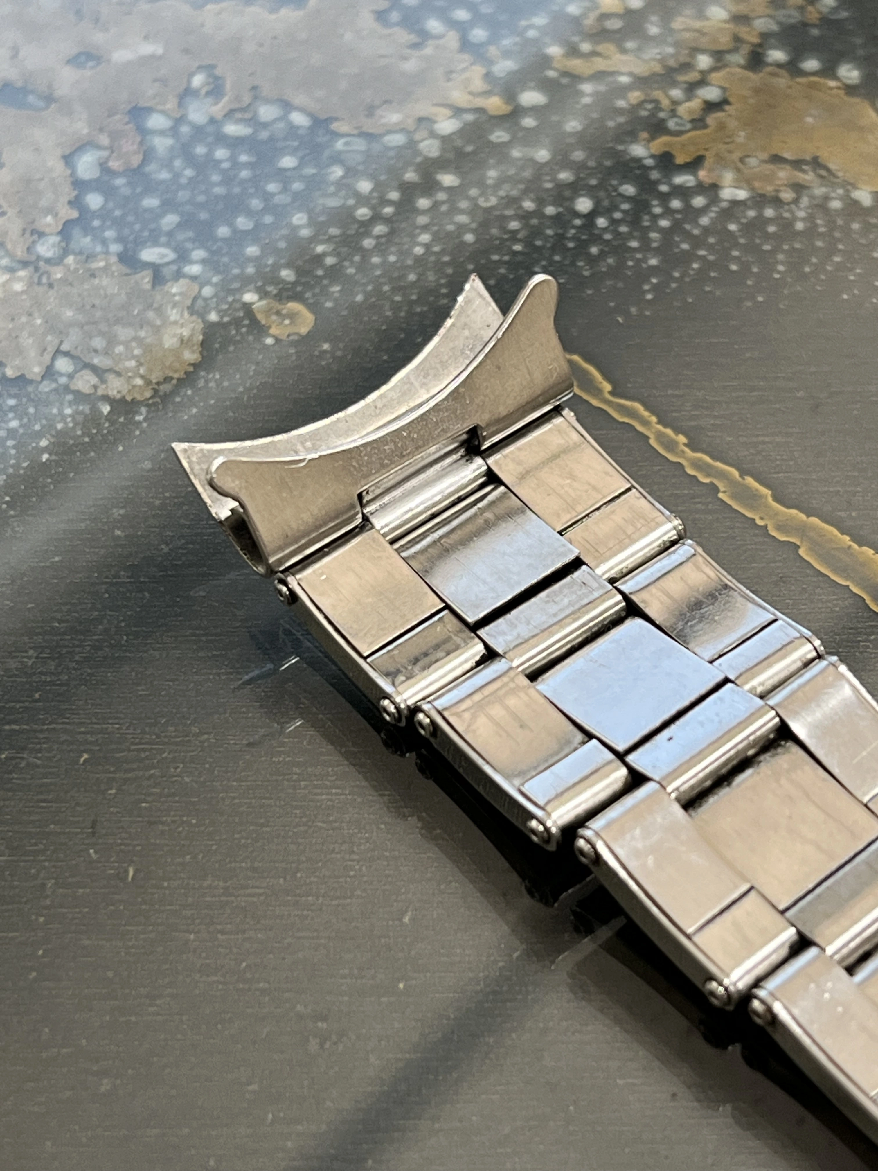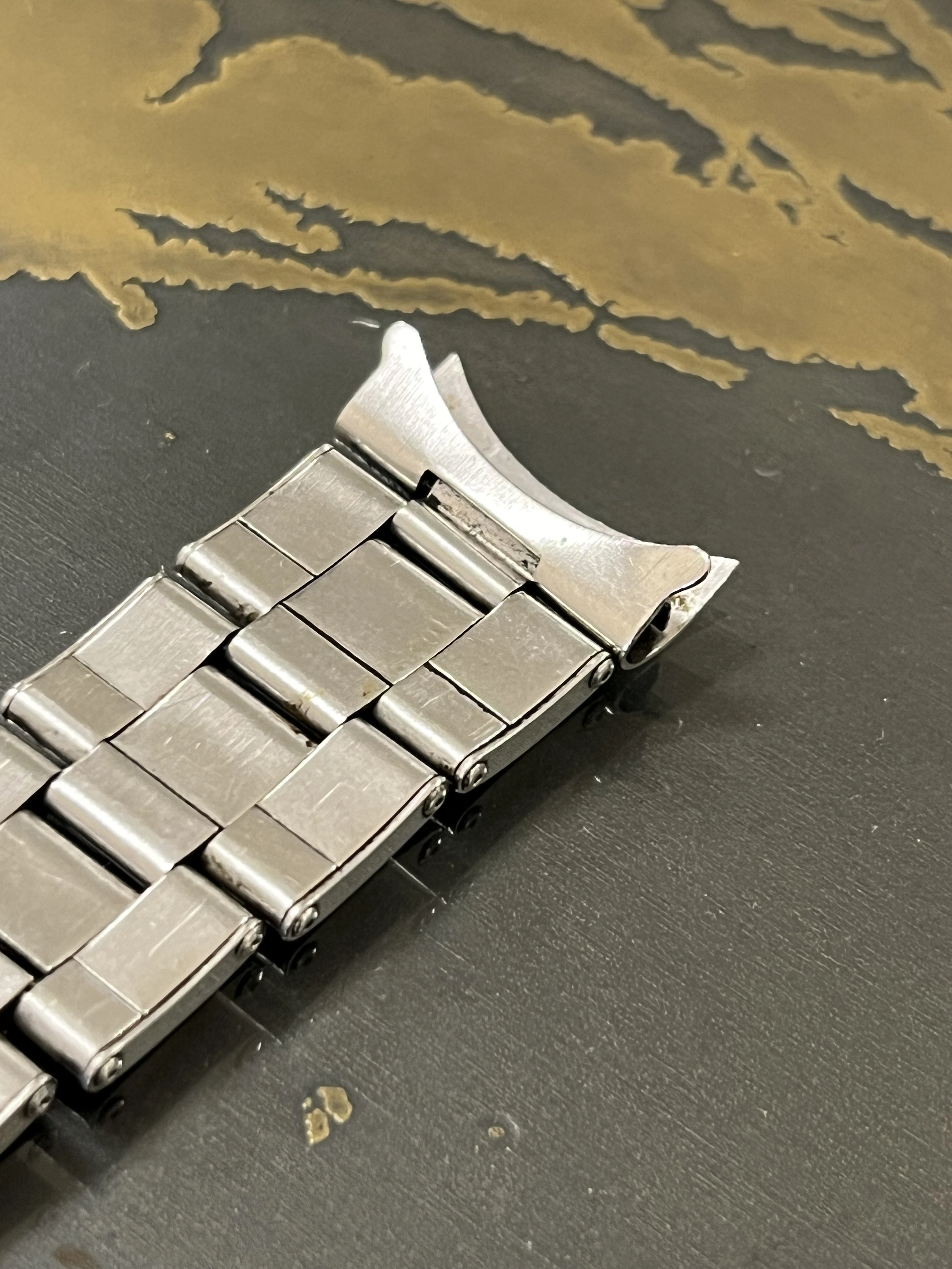 ·Hello up for sale is a Rolex C + I rivet bracelet with 19mm ends. 7 links plus 5 links. As seen in the photos, the 5 link side is the spring loaded type (7 link side is fixed type). Springs are all tight and functional. Max stretch shown in photos; bracelet is in good condition.