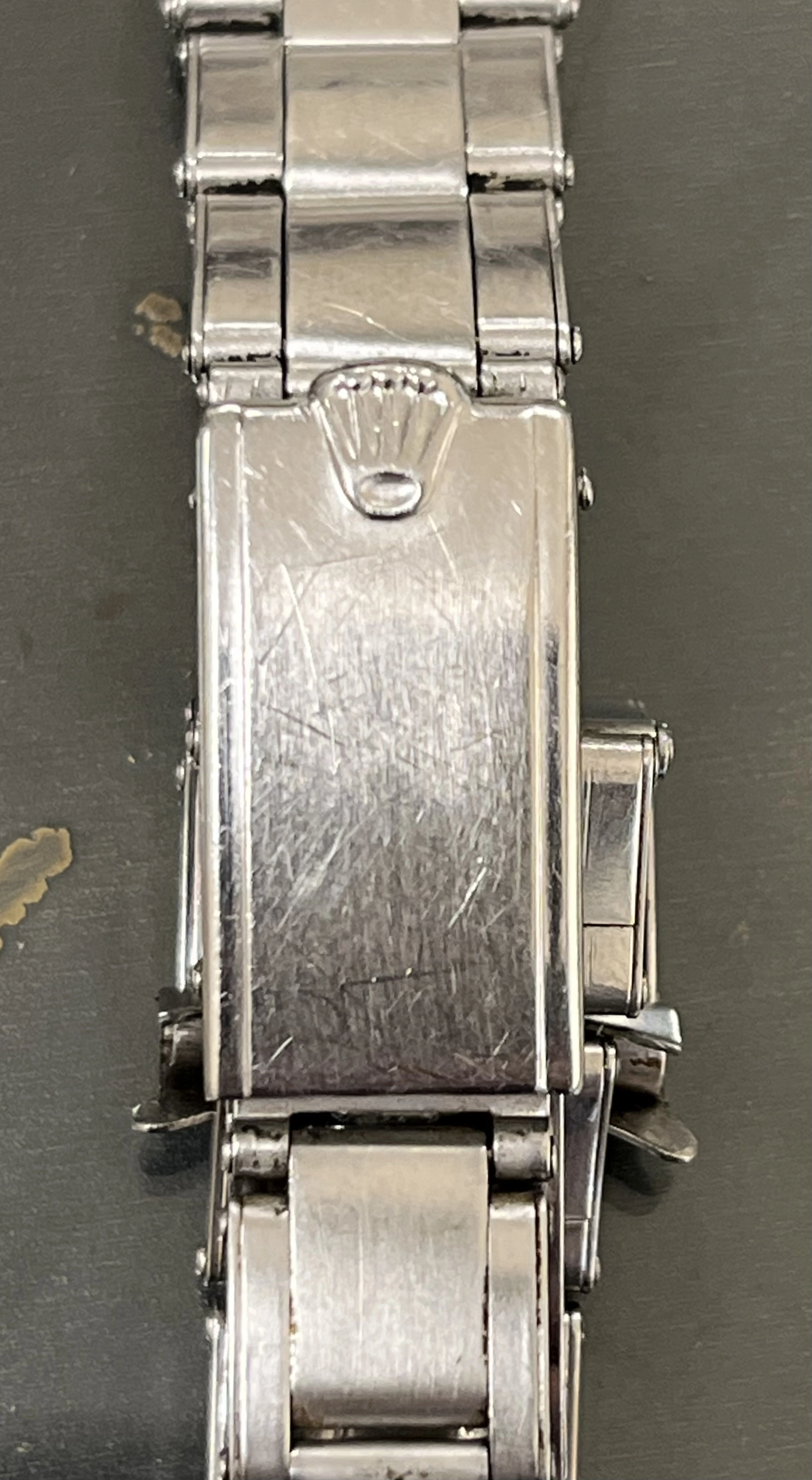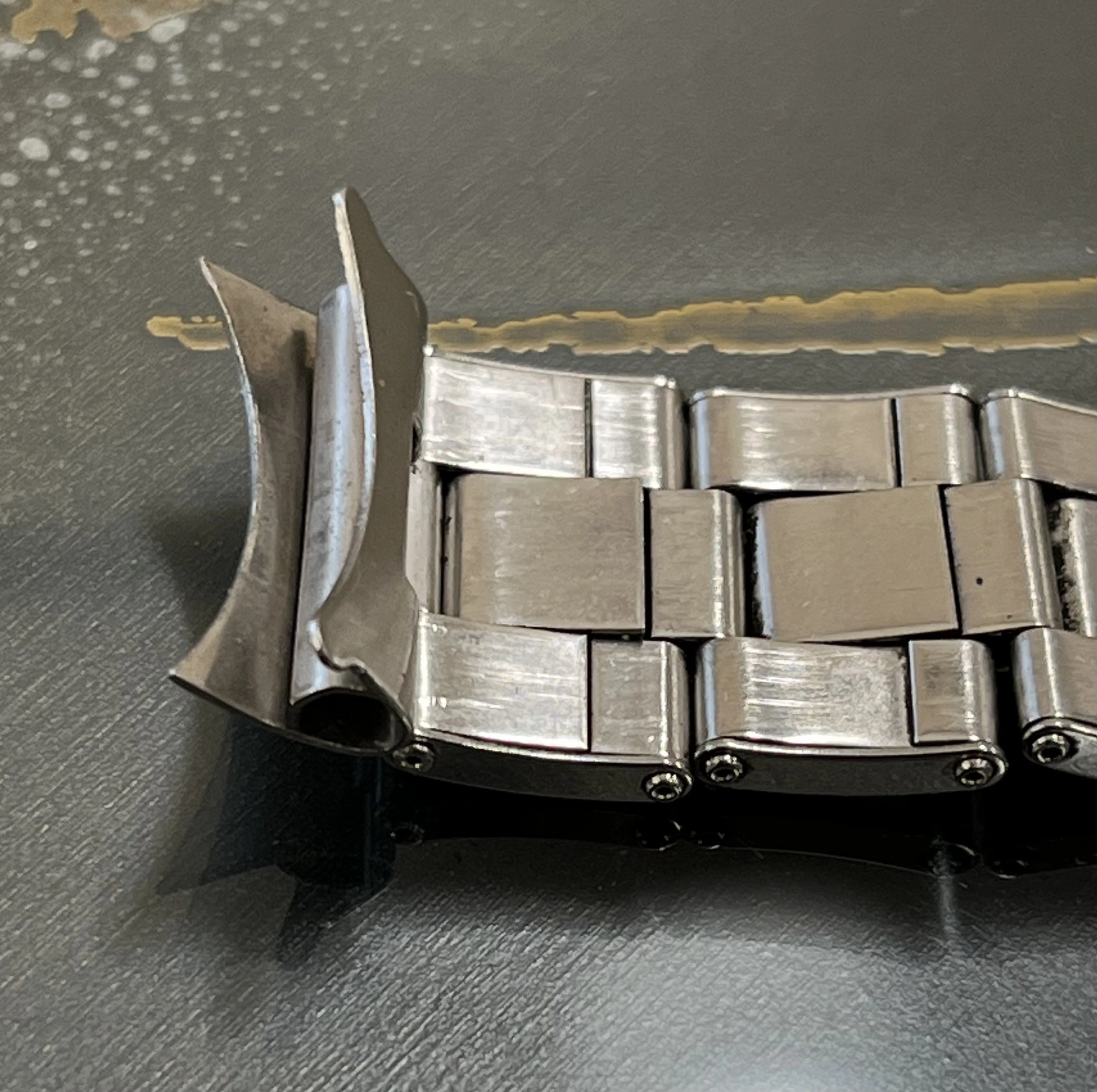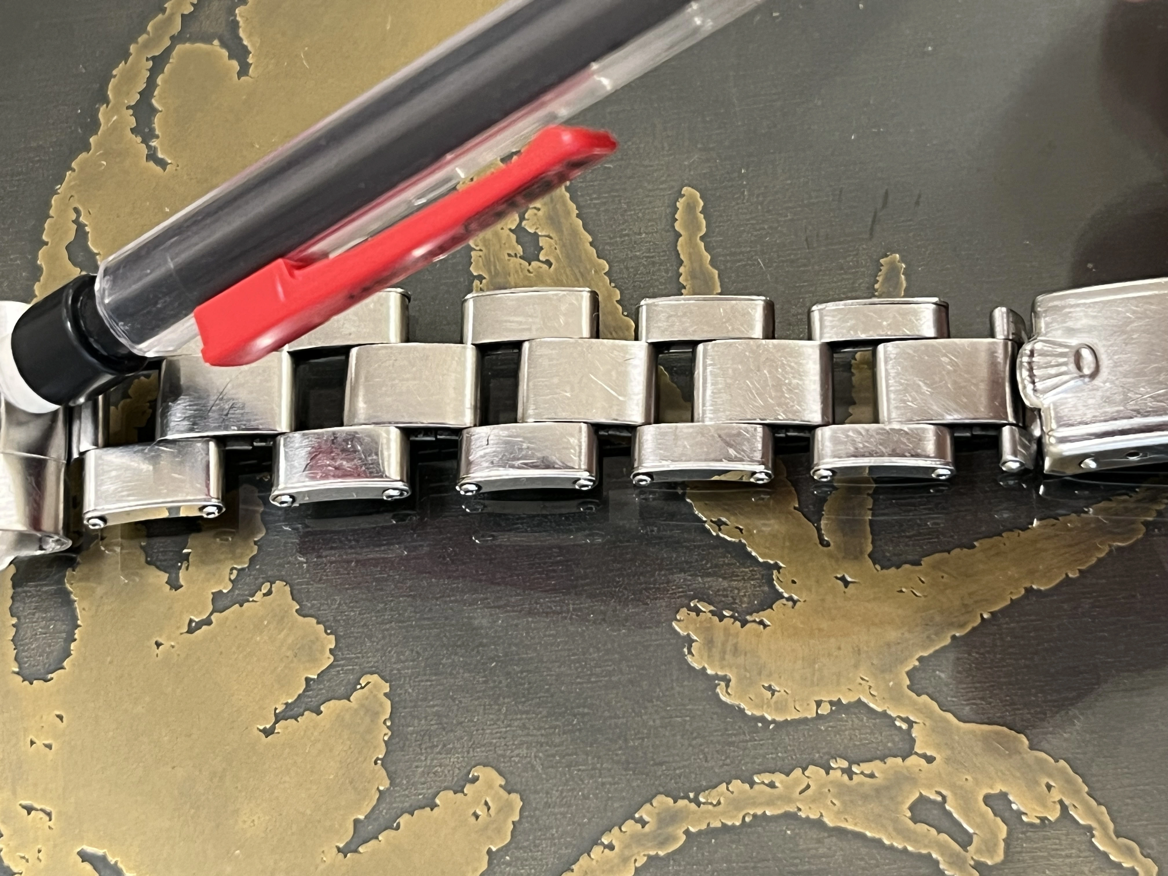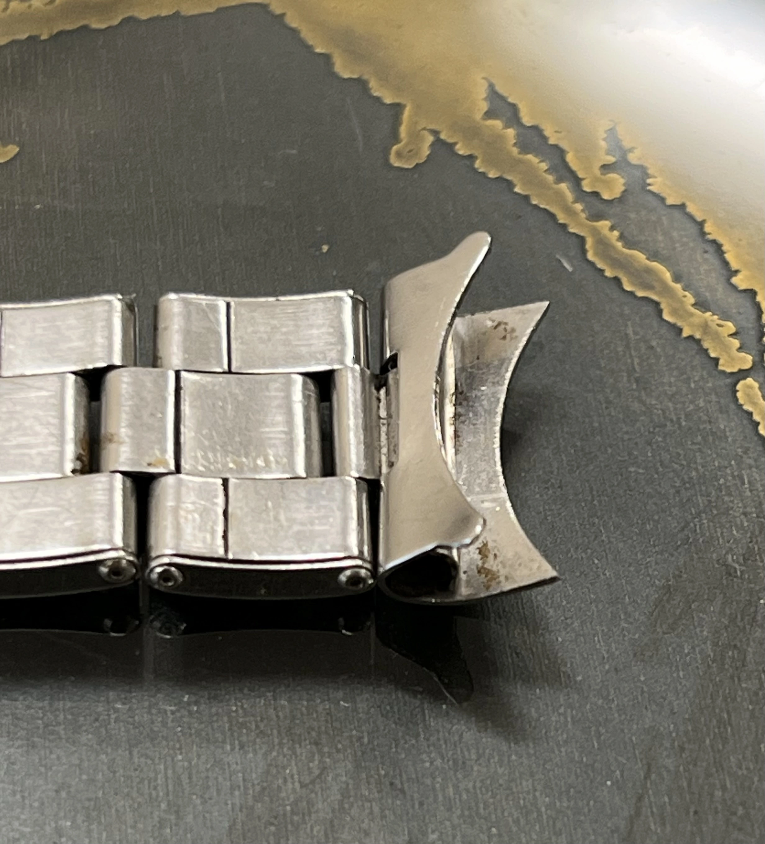 ·Hello up for sale is a Rolex C + I rivet bracelet with 19mm ends. 7 links plus 5 links. As seen in the photos, the 5 link side is the spring loaded type (7 link side is fixed type). Springs are all tight and functional. Max stretch shown in photos; bracelet is in good condition.