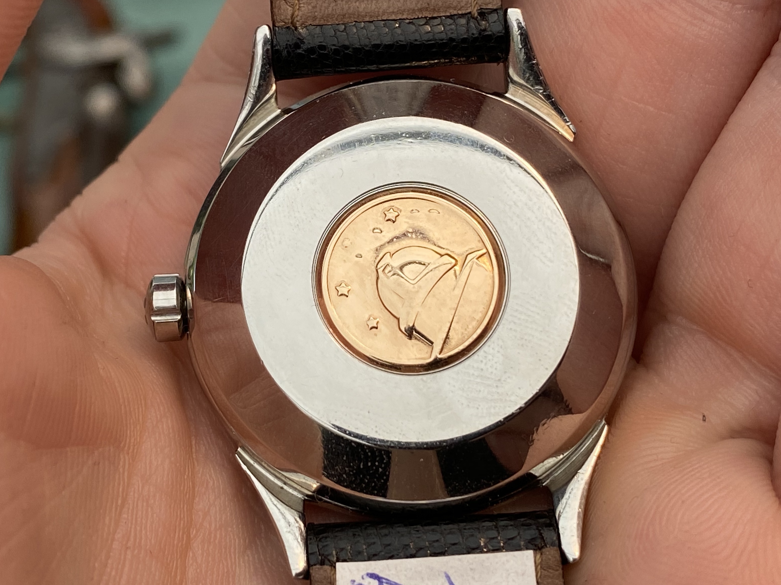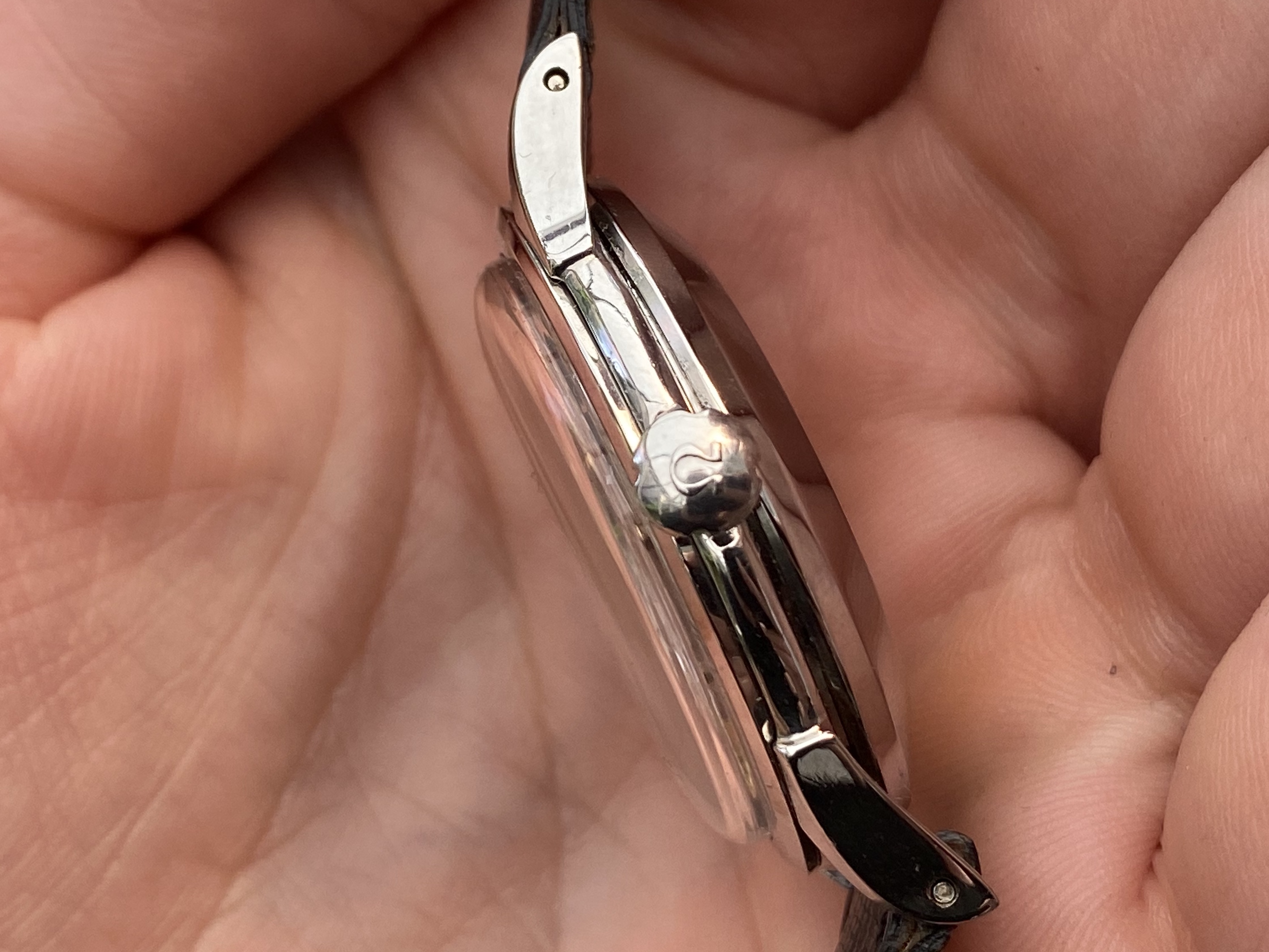 Also, the Omega logo on the top is not completely in the center of the line (which I’ve spotted on a few of them on Chrono). The “Omega” seems to have been applied in an angle, too.