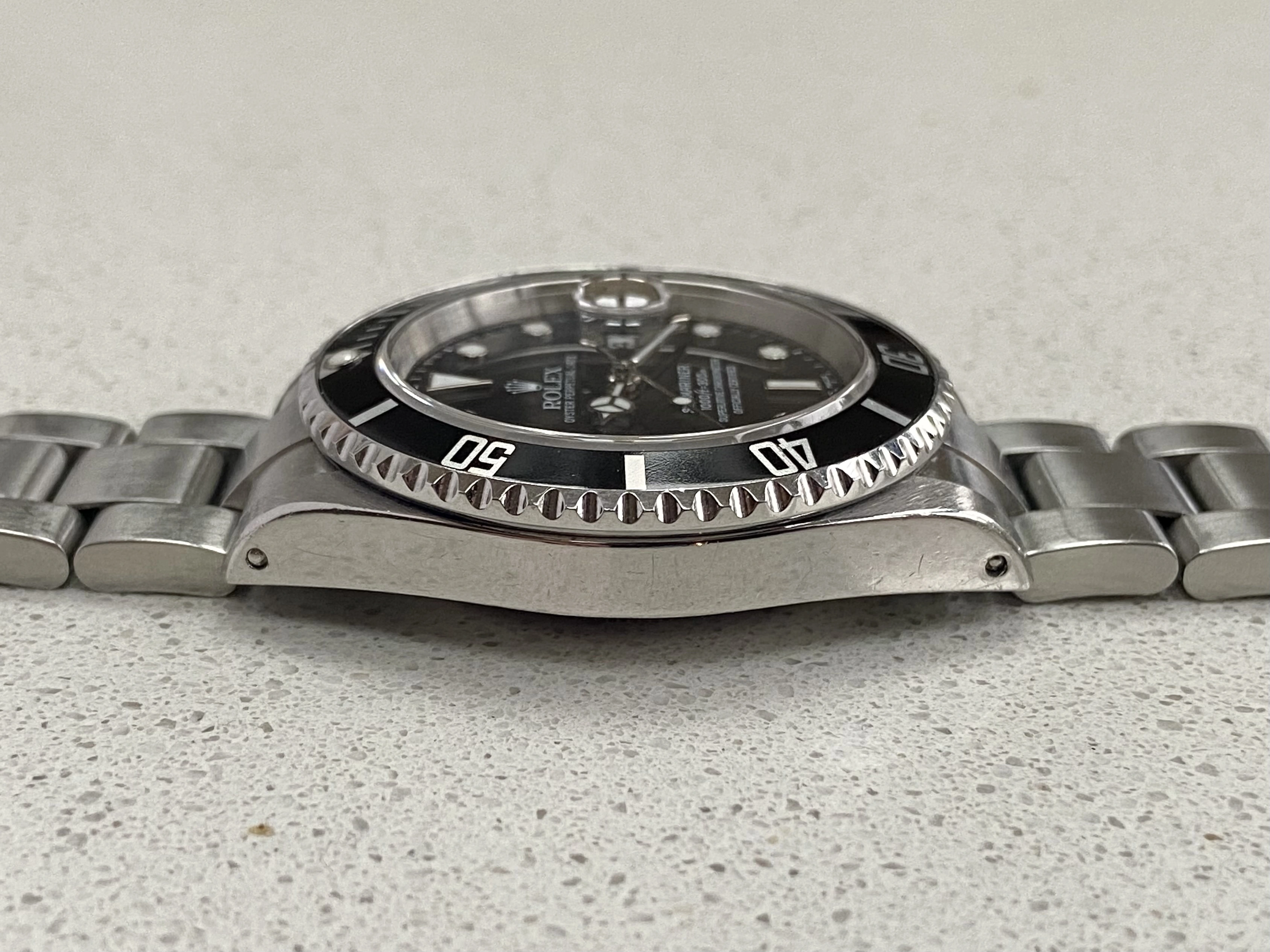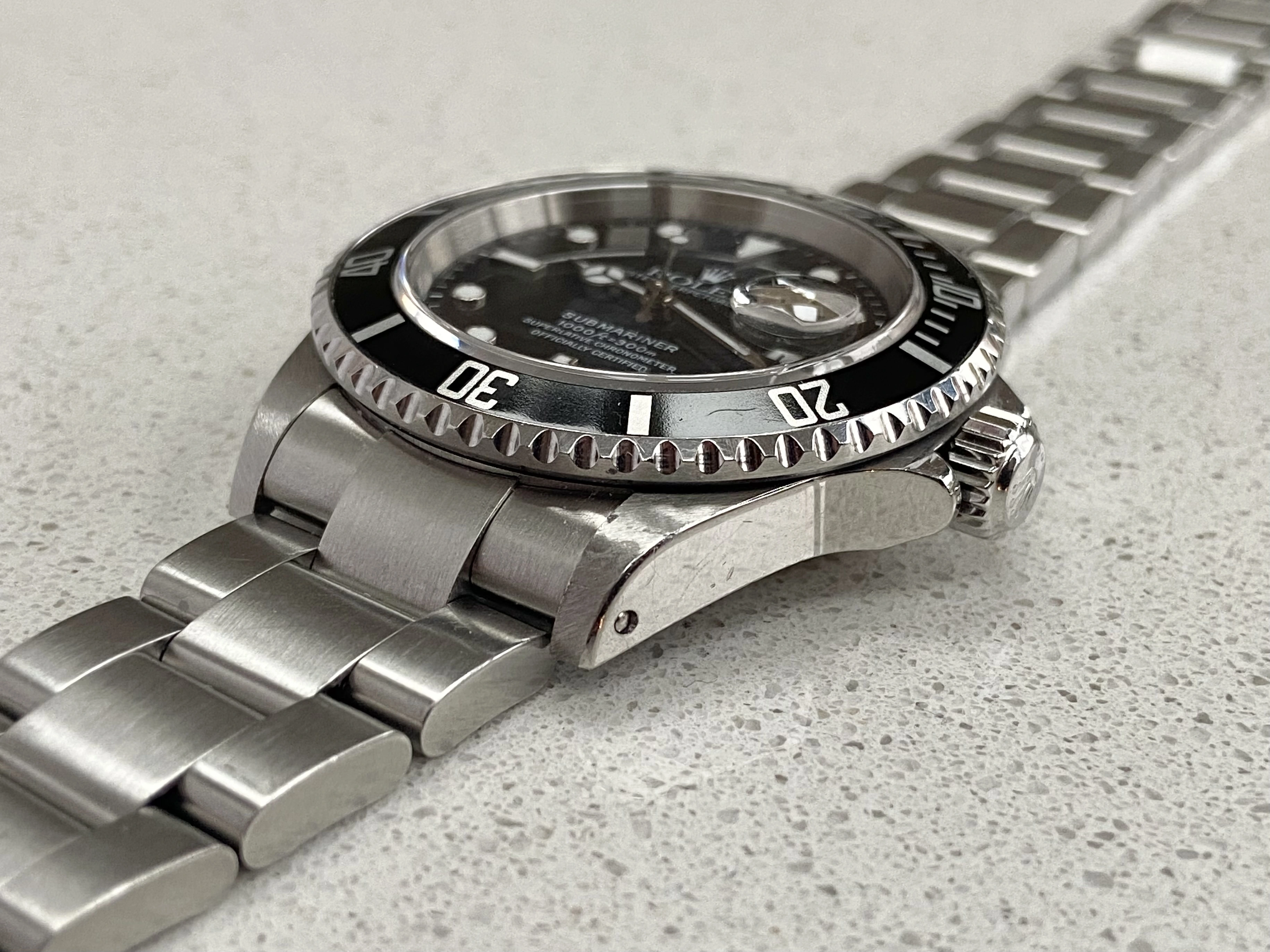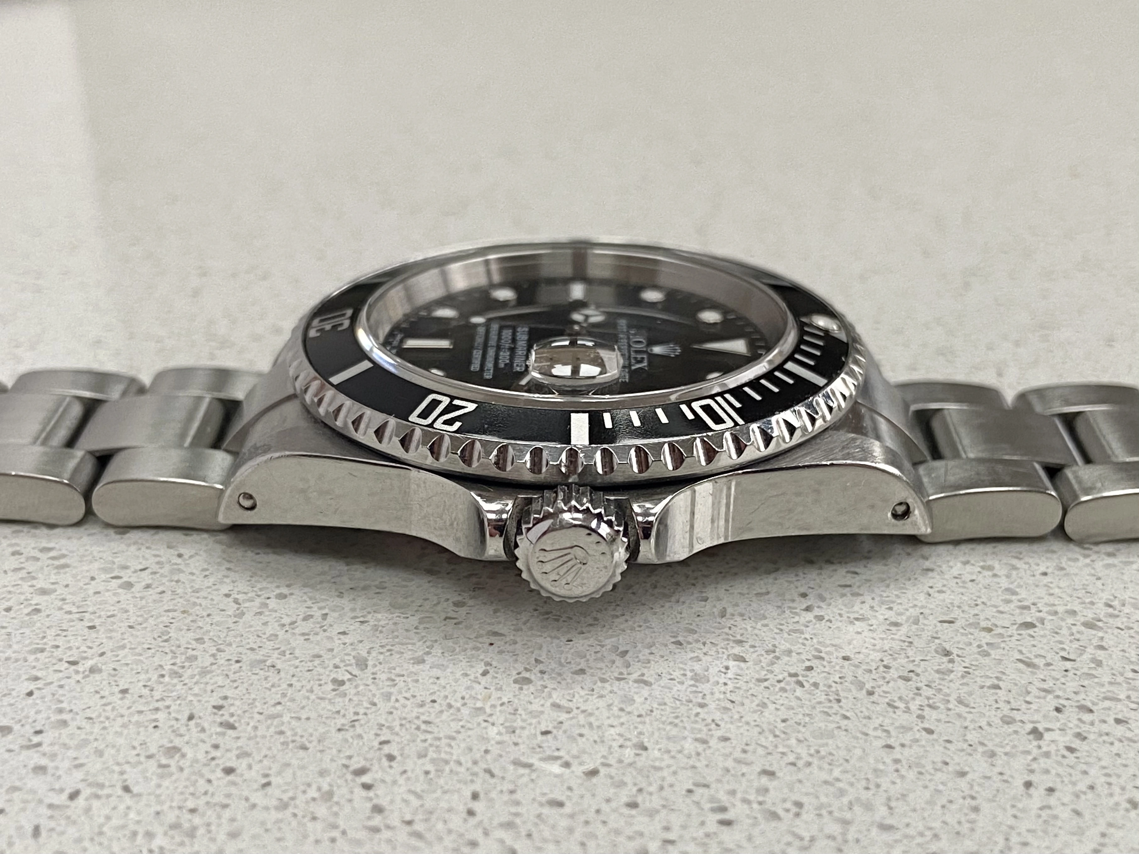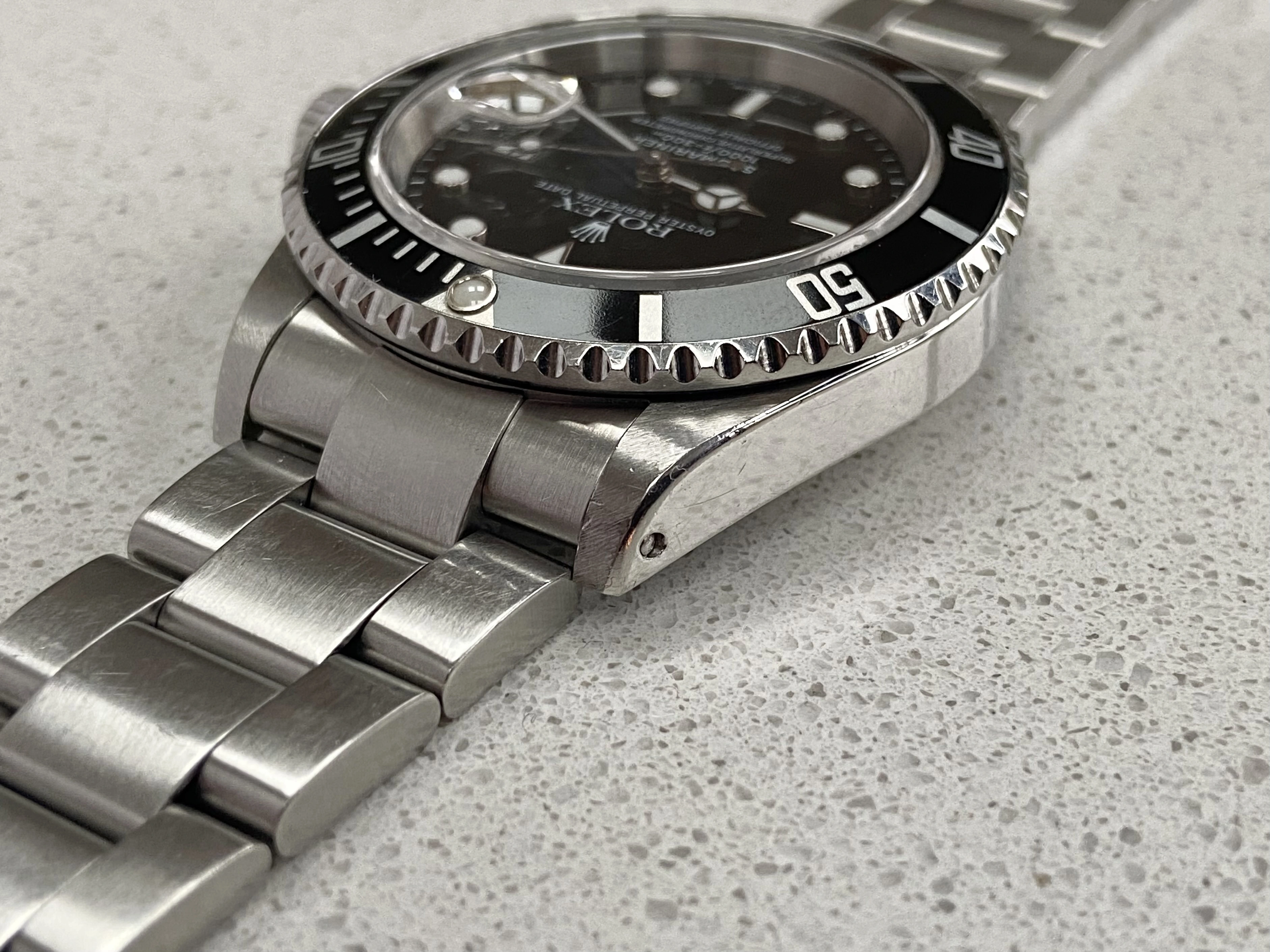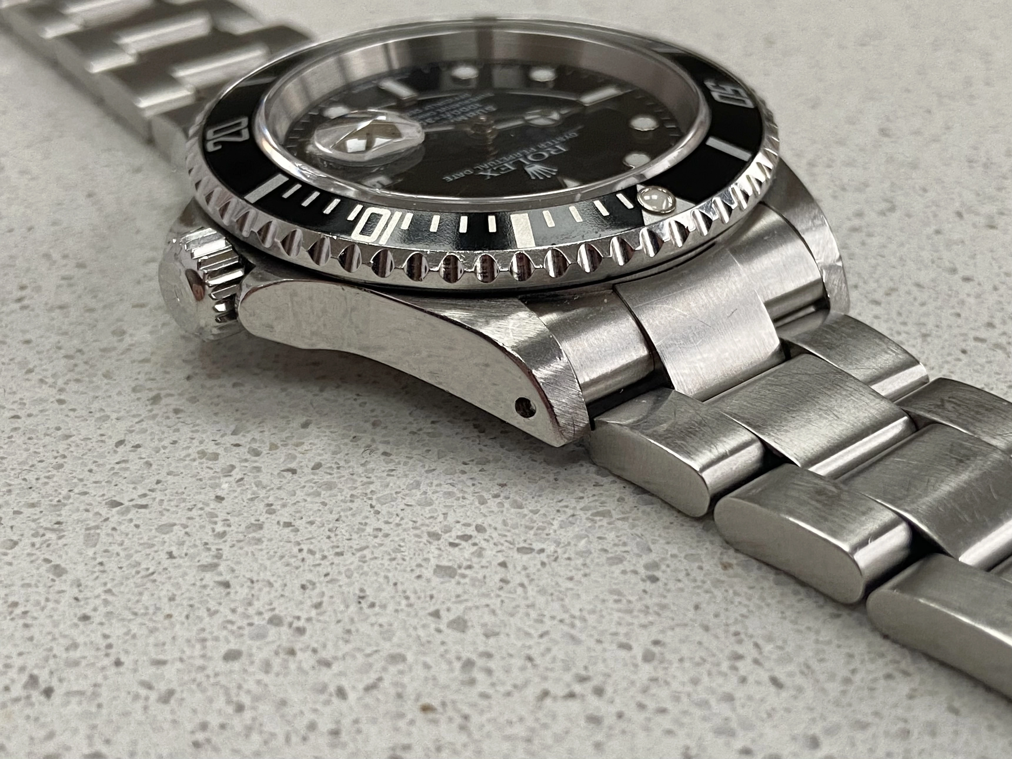 Overall this is a nice honest Sub and a great daily wearer. All parts seem original and correct (serial dates to 2001 and bracelet is 2002), the case is nice and thick and it’s running well. No box and papers which keeps the price down.