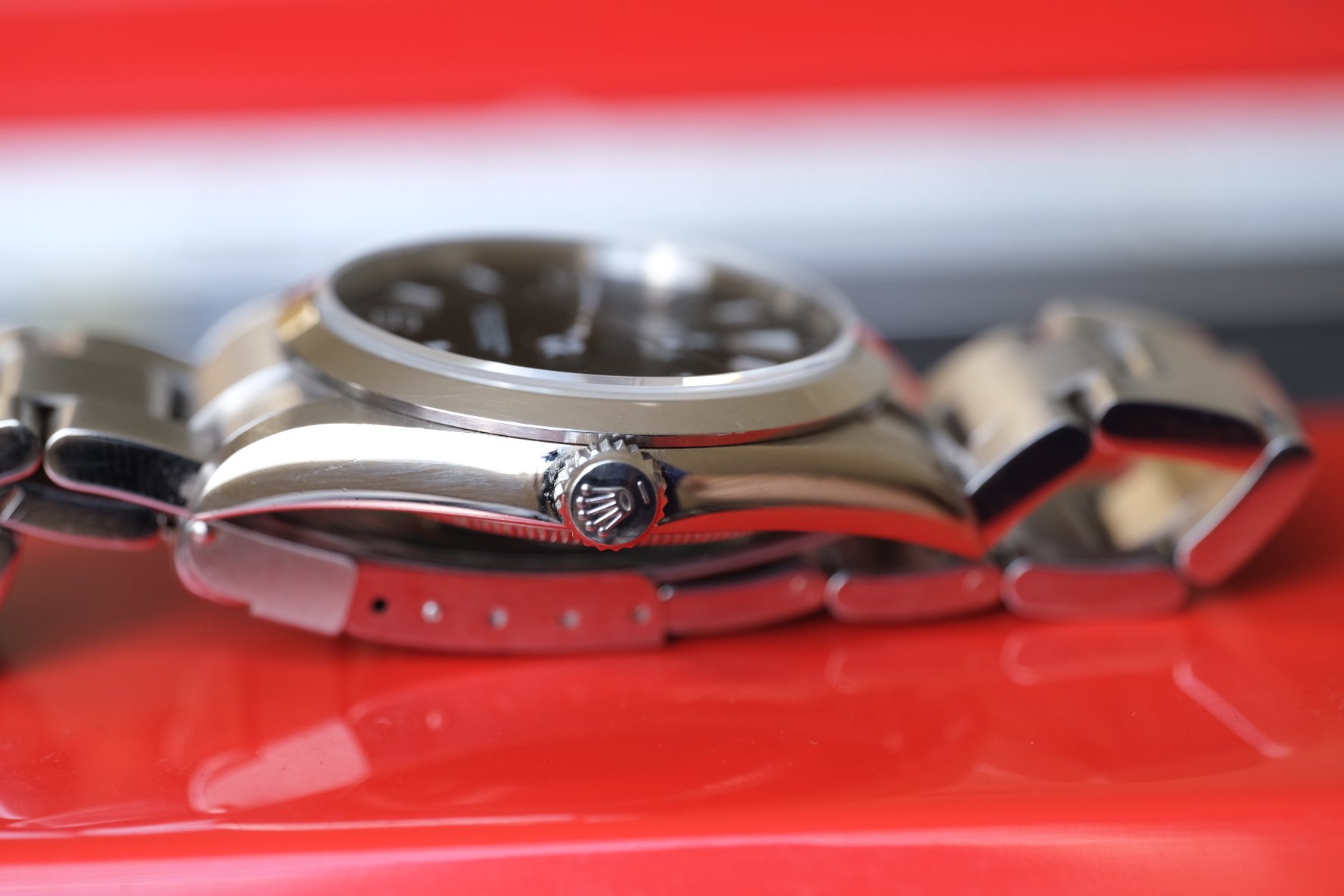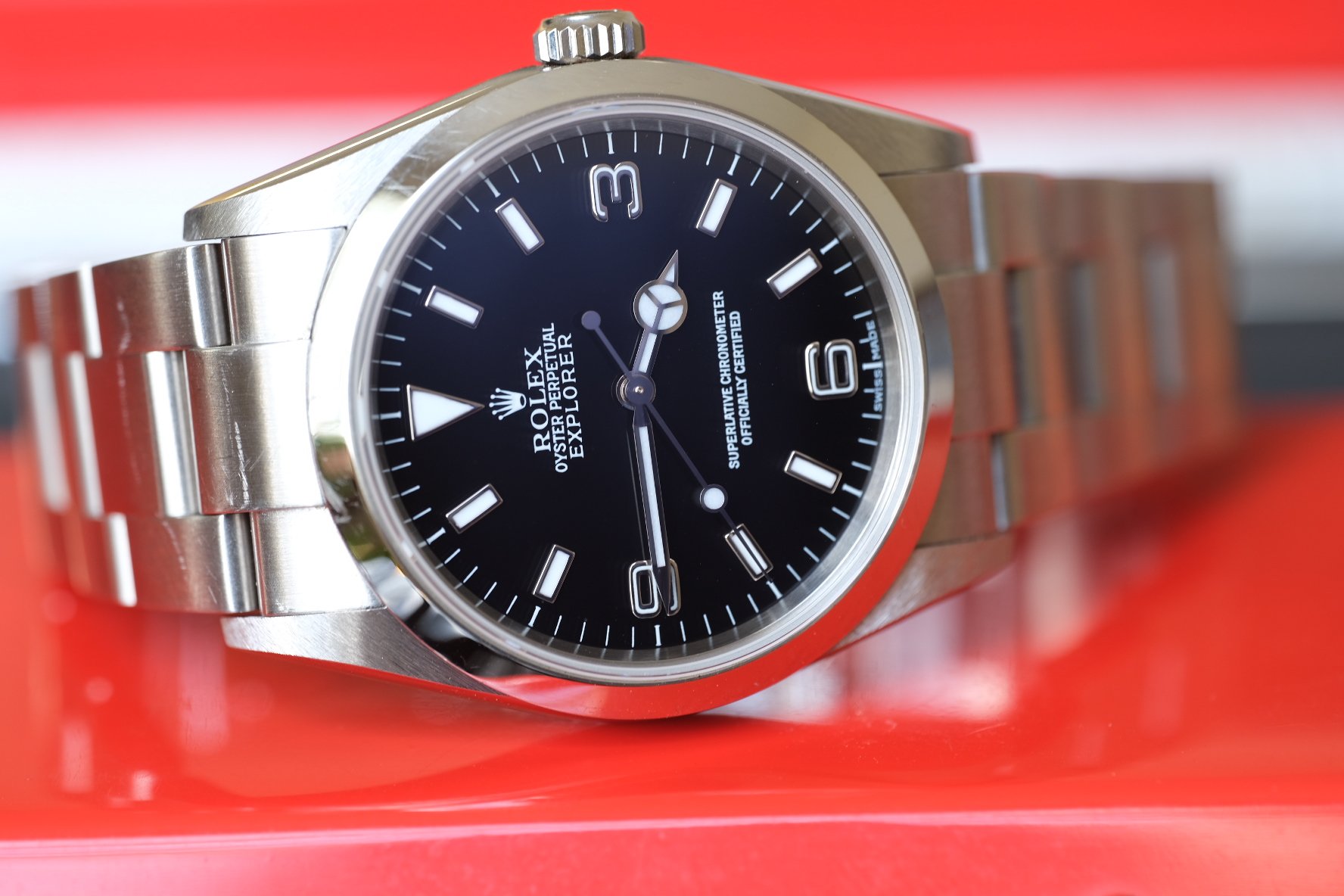 MOVEMENT: Under the hood is the classic Rolex cal 3130 automatic movement. It’s a great upgrade from the older version in the Explorer 14270. Service history is unknown but running incredibly well with buttery hand winding and setting and great timegrapher numbers at 13 seconds a day with an amplitude of 303!