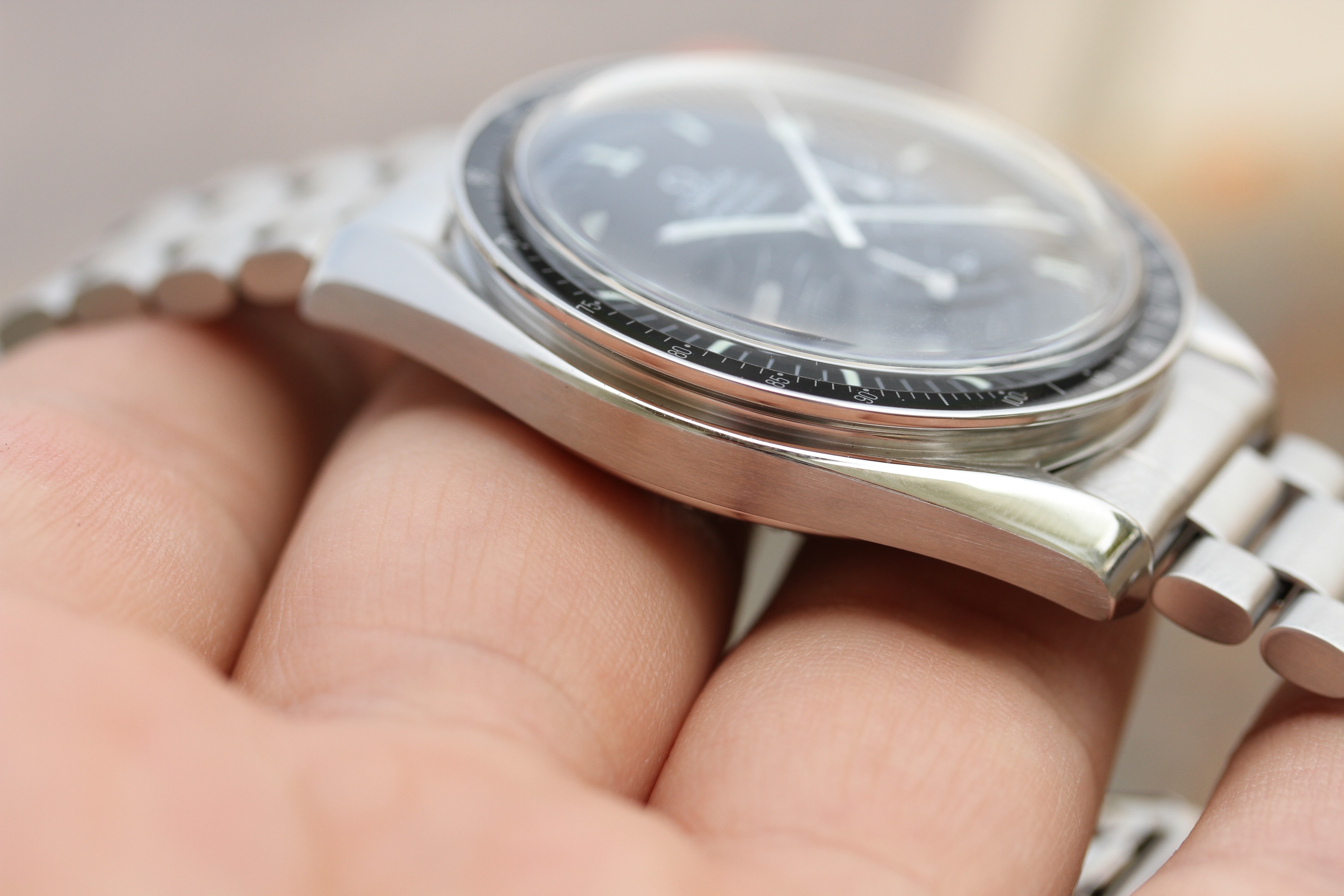 Excellent condition with no dings, dents, or deep scratches. Serial number is clearly intact on lug and matches the movement.