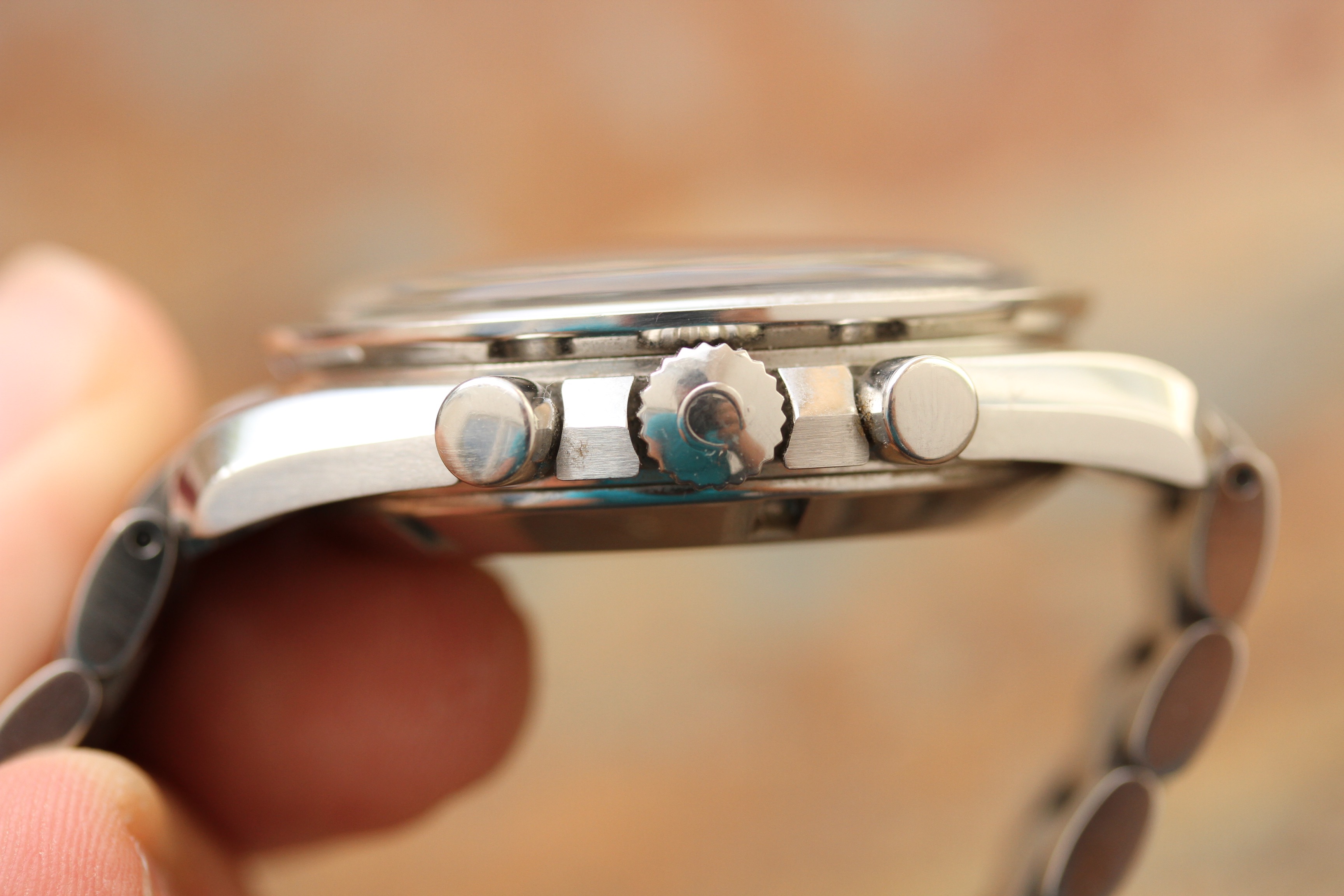 Chrono runs and resets as should. The top pusher sticks when you engage the chrono, so you have to manually "pull it" out to be able to press again to stop the chrono. Again, the chronograph functions as it should and resets back to zero, but the top pusher's spring perhaps could be replaced.