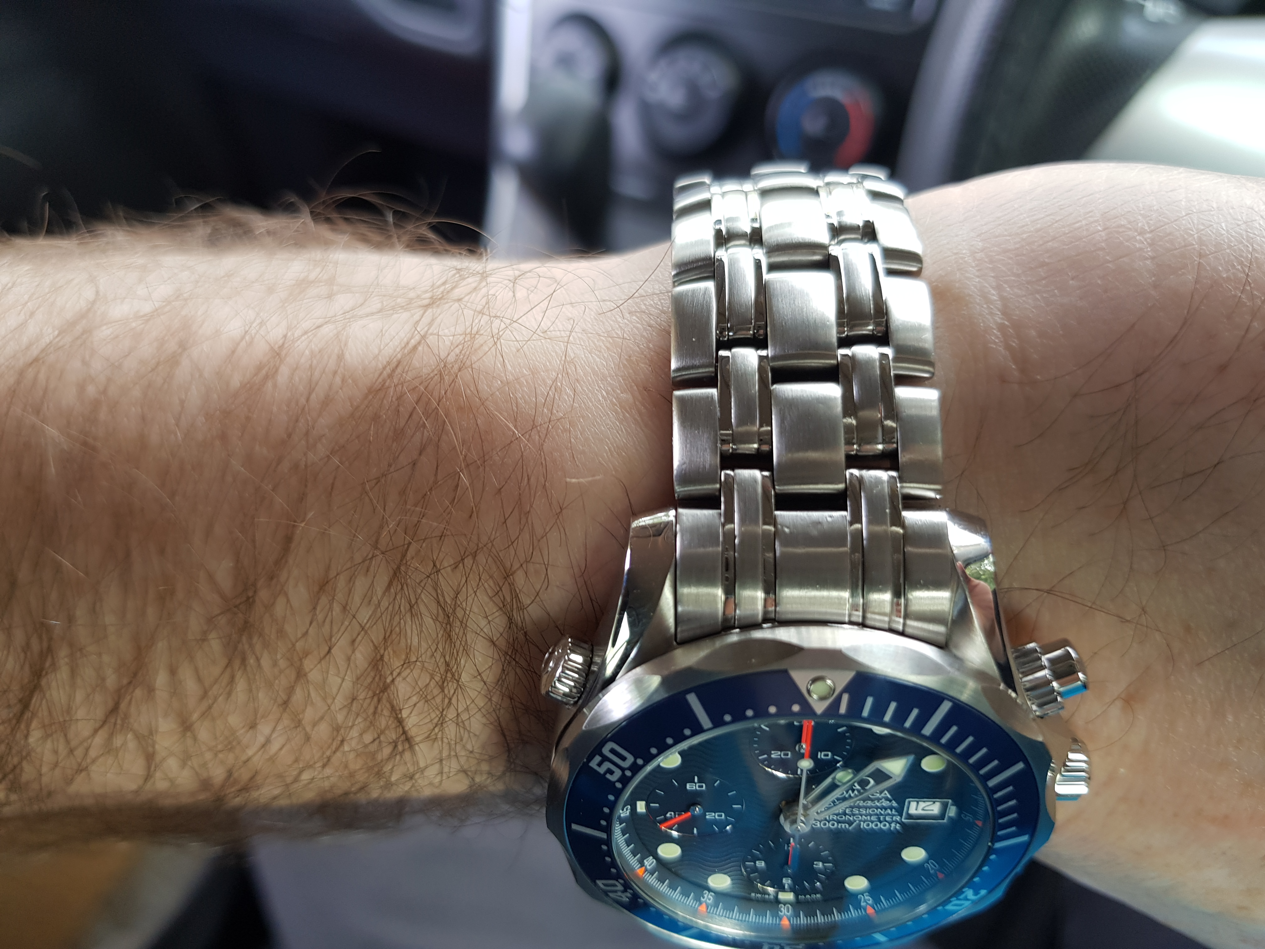 If possible you should see if you can get the new adjustable seamaster clasp. I have an America's Cup chrono from the early 00's and the one thing I wish I could change was to have a micro adjustment on the clasp. Wouldn't hurt to ask them if it's possible since you're spending the money anyways.