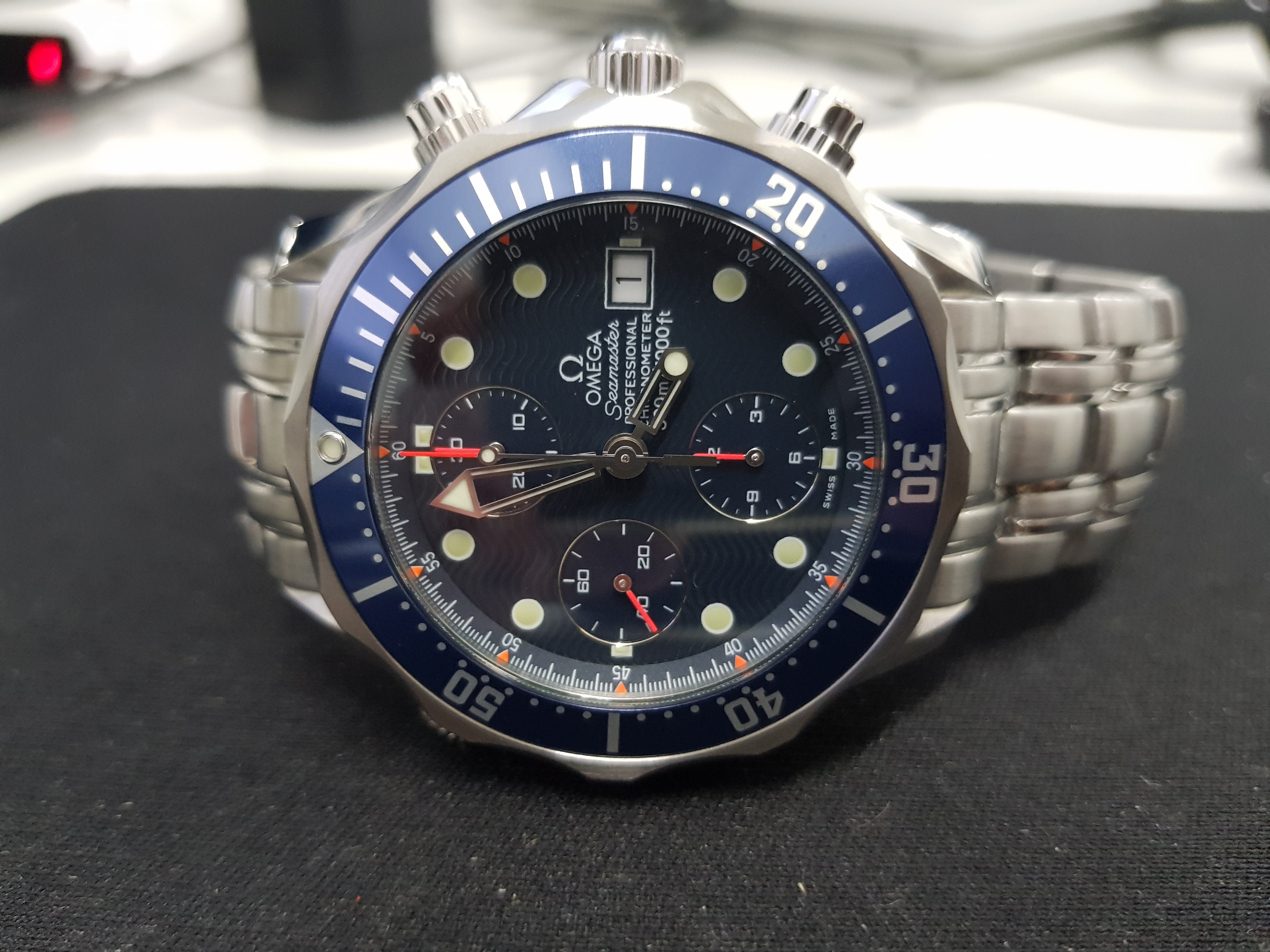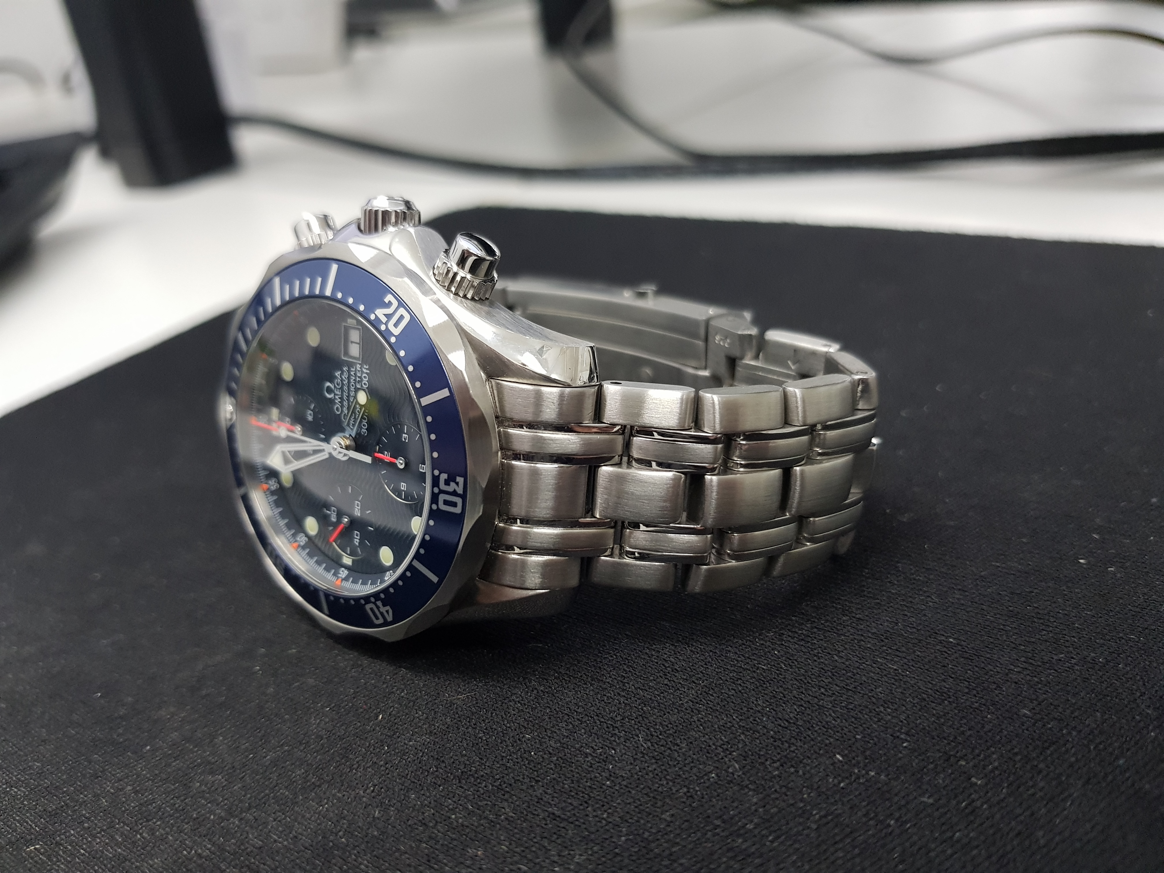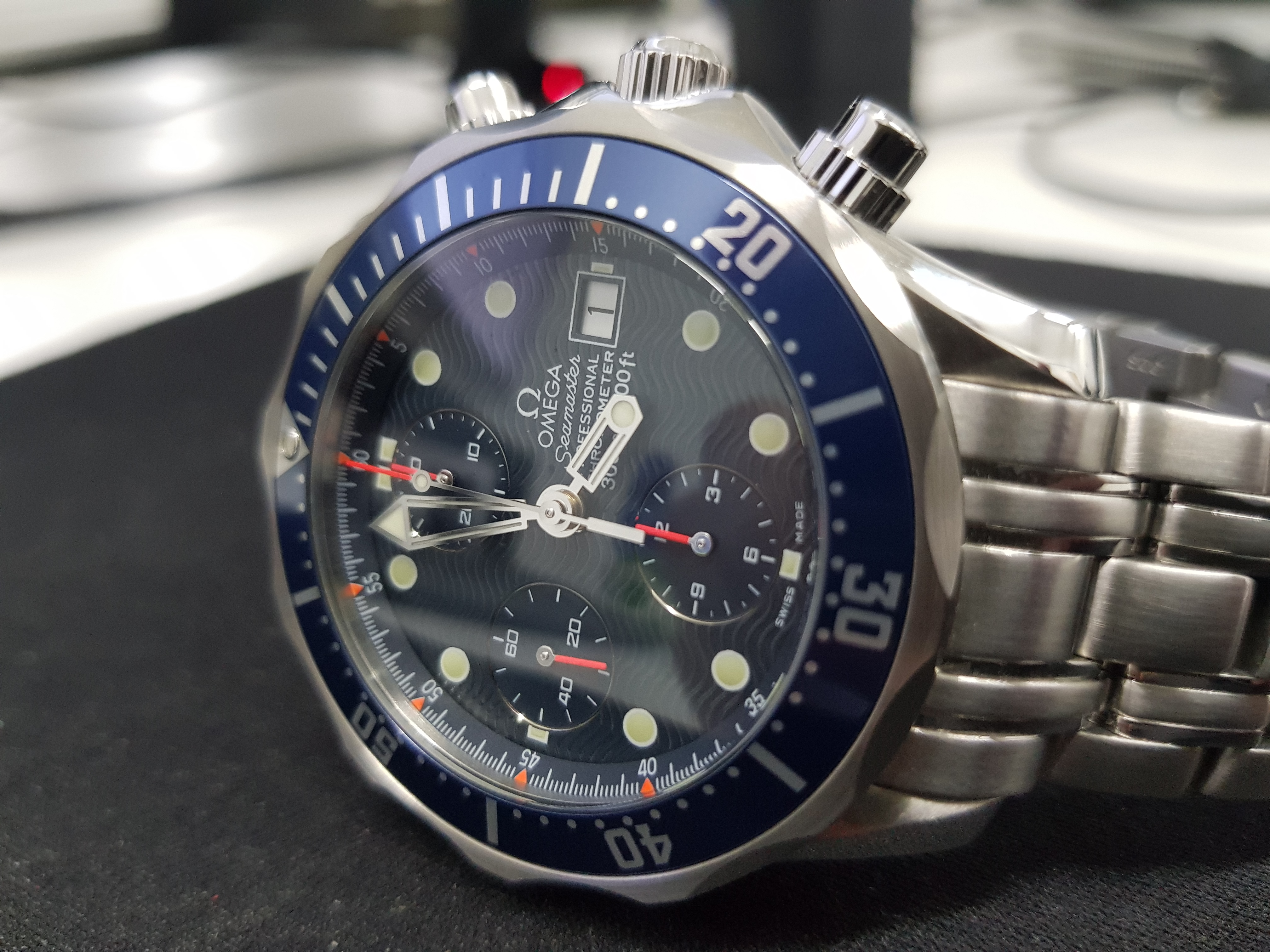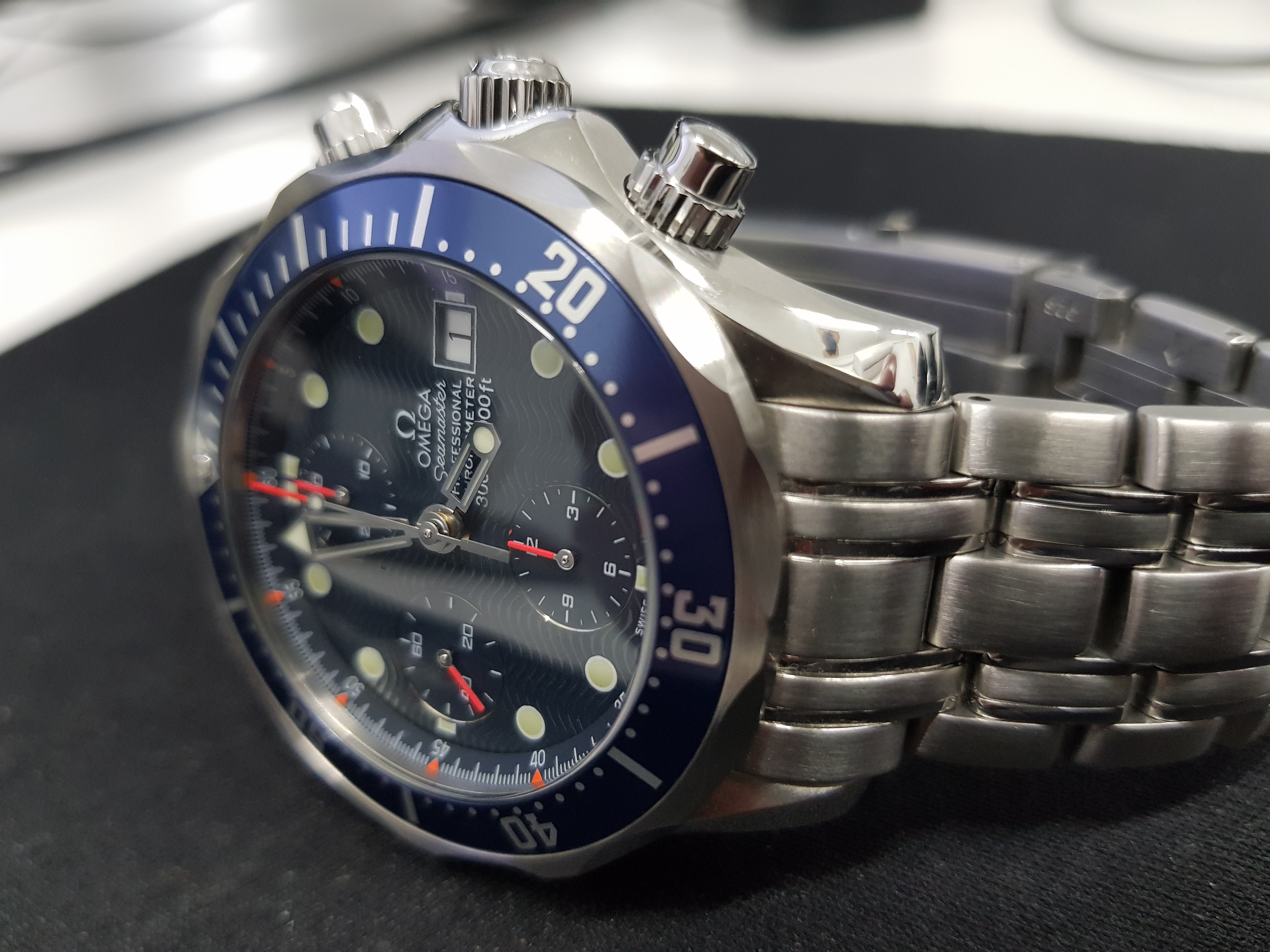 ··Omega Qualified WatchmakerThis movement is based on the ETA7750 movement which doesn't have a instant date change at midnight. You can see it engage and take a while before it actually flips over.