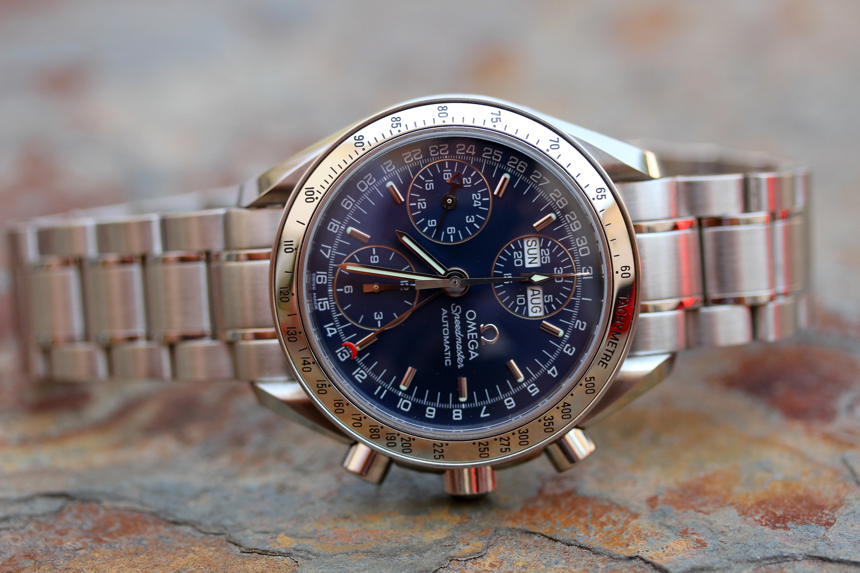 ·Up for grabs is an Omega Speedmaster Day-Date