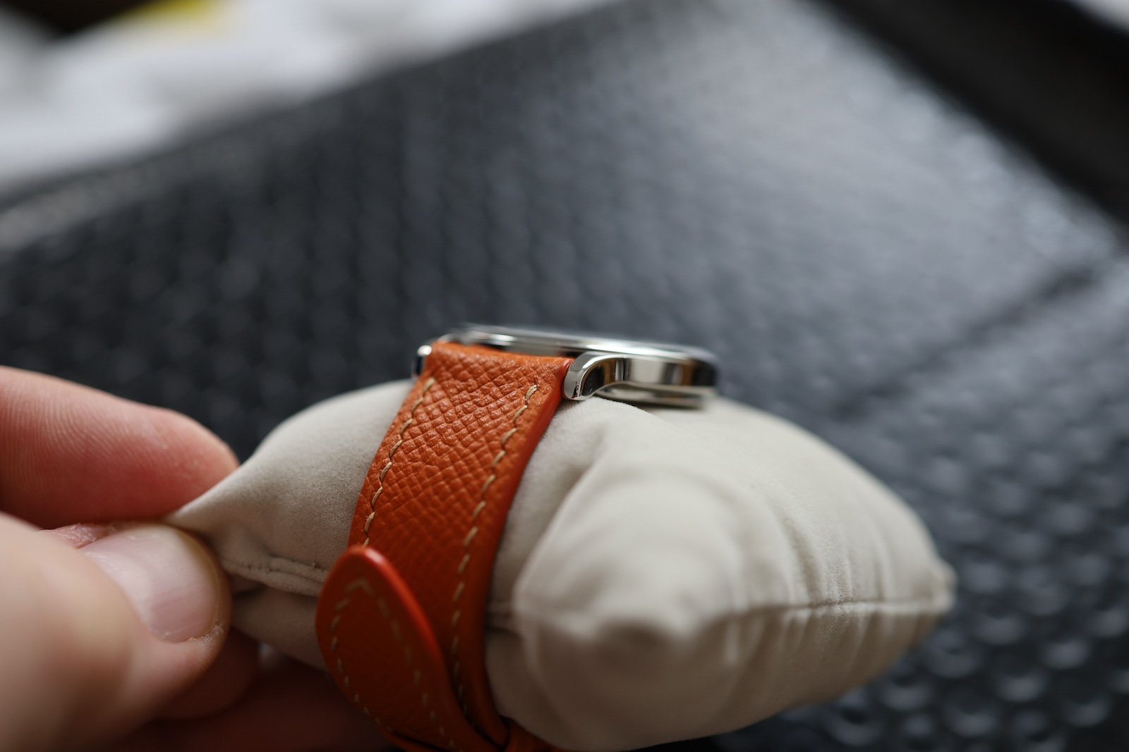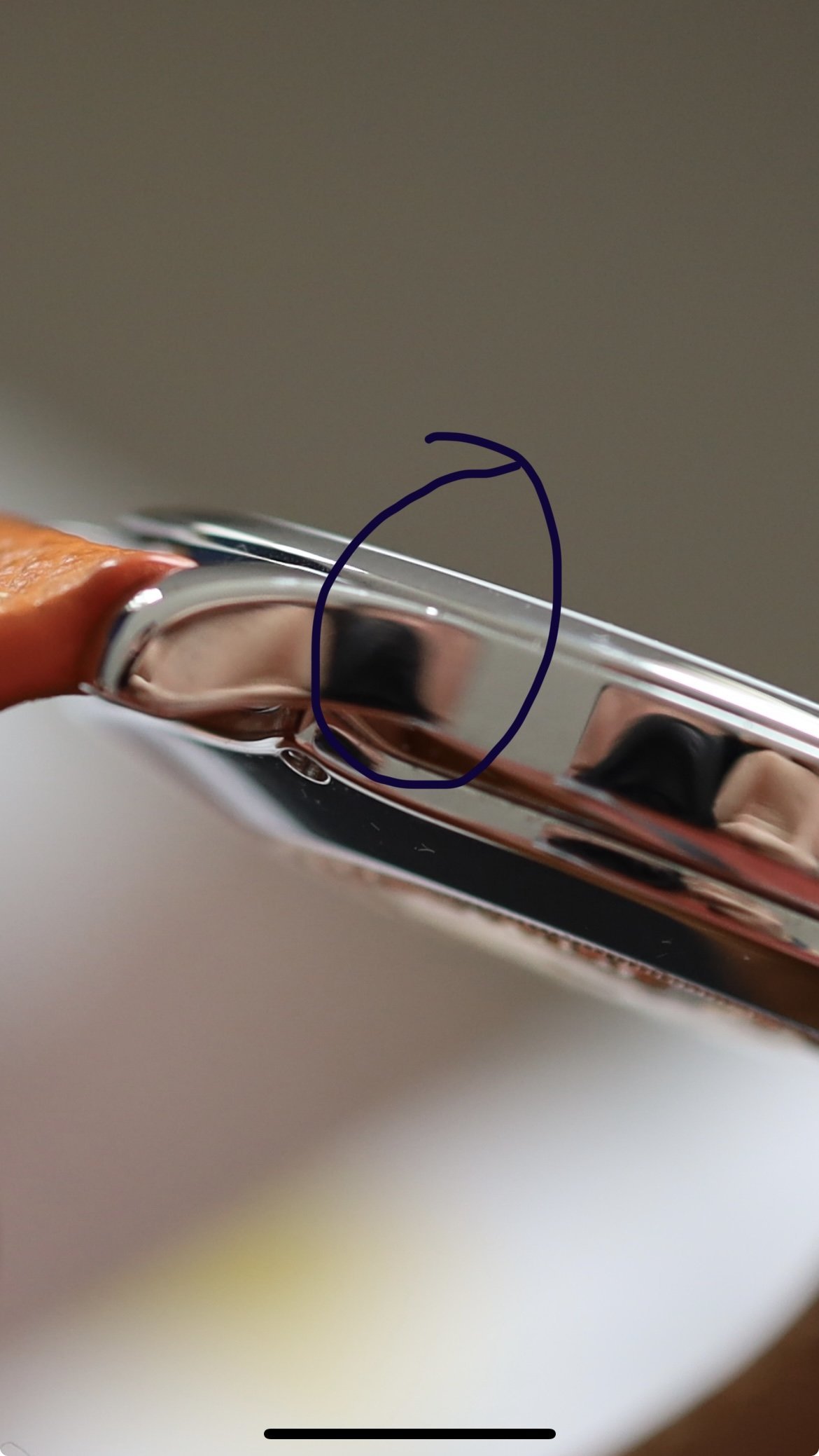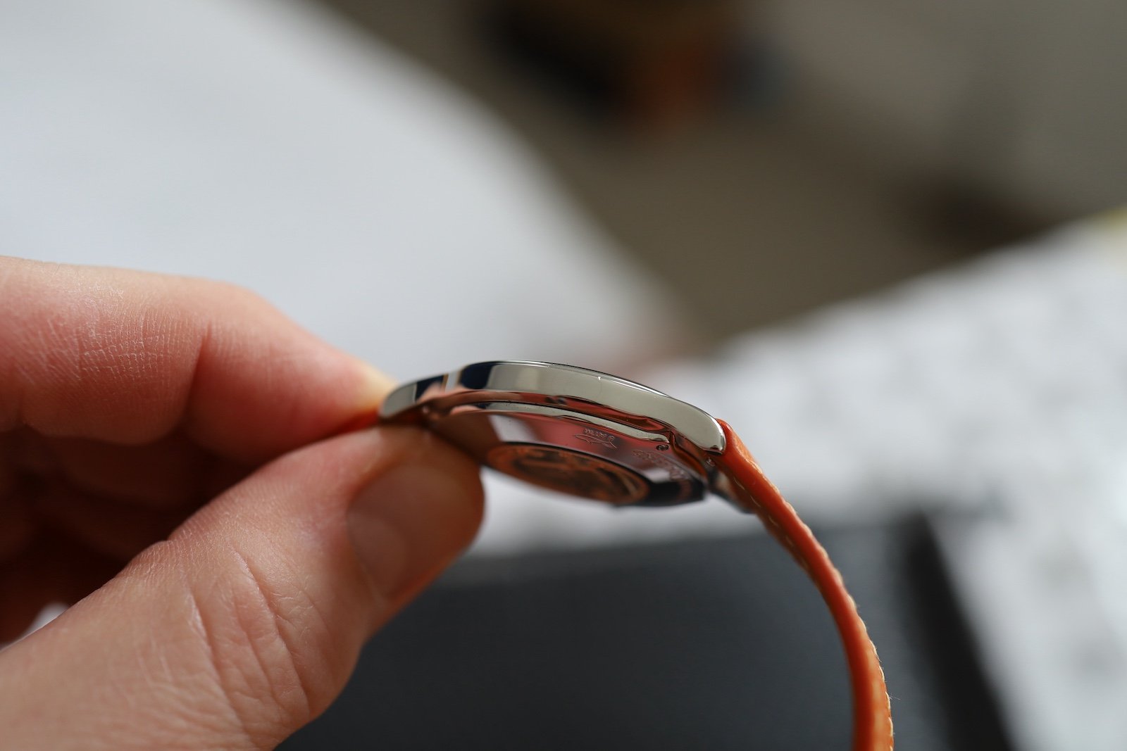 I have taken photos on a full frame Canon (raw, undedited), so hopefully all the details that you can't even see with the naked eye are on show, including two very small nicks to the left side of the mid-case, which were too deep to polish out.