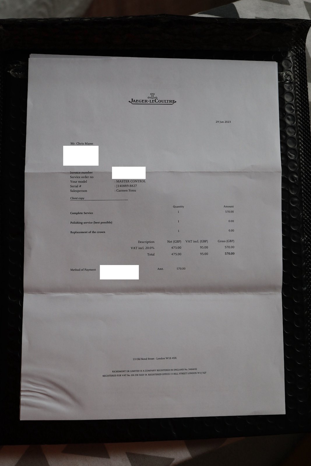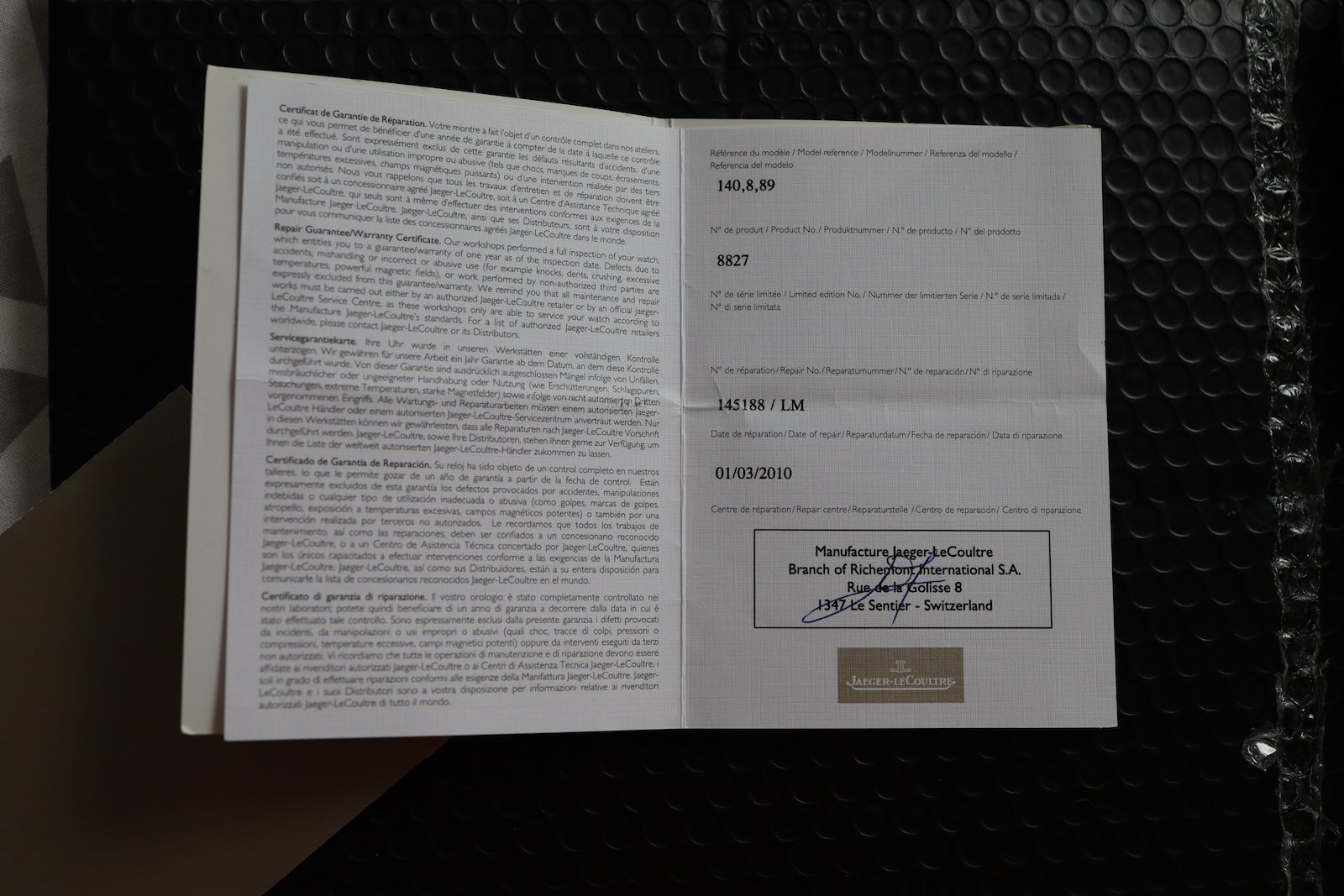 It was serviced by JLC in Switzerland in 2010, and again in June 2023.