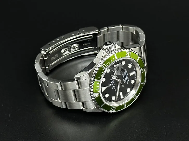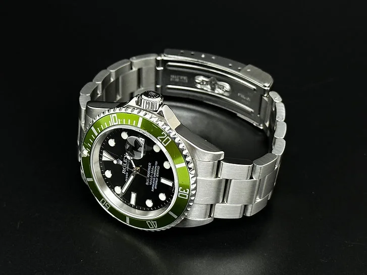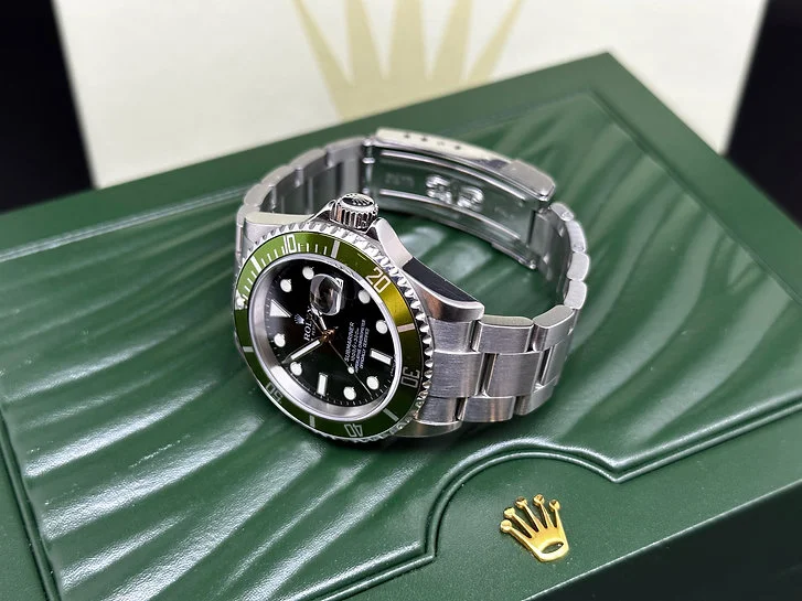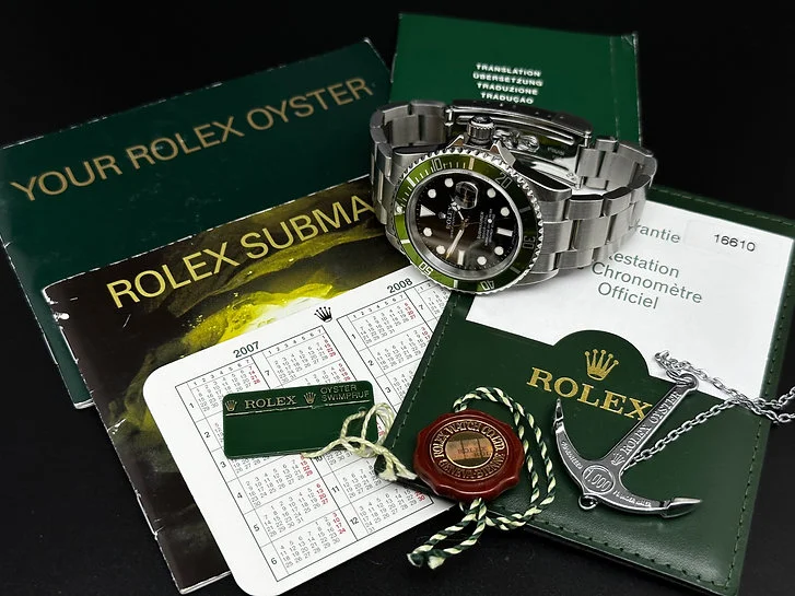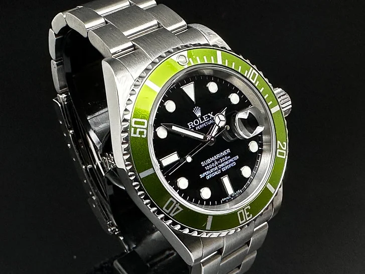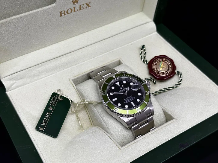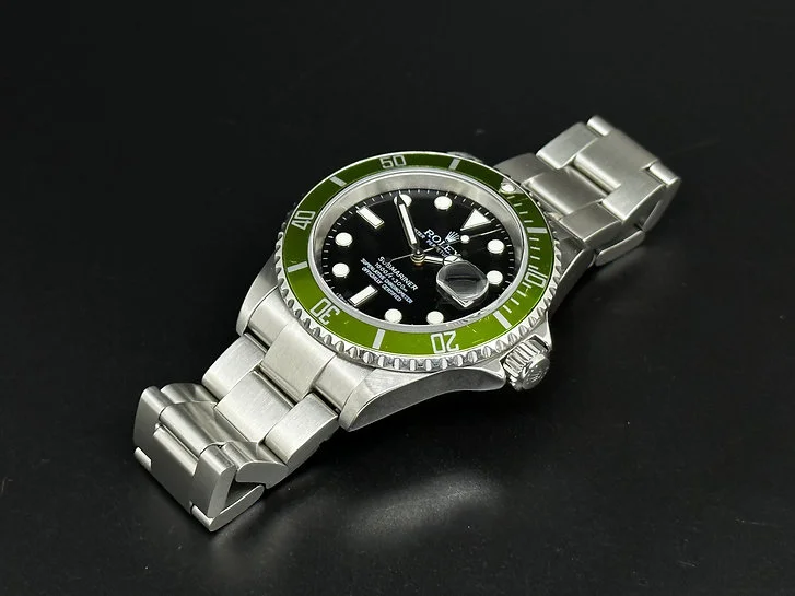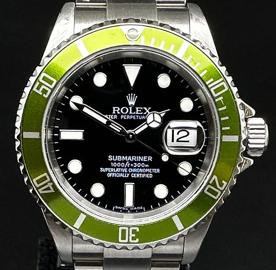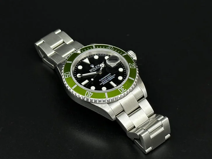 I've owned this watch for the last 4 years. I have worn it sparingly. It is complimented by being a full set with everything. It shows very minor wear and has the original bezel which has changed to a lovely lime green colour.