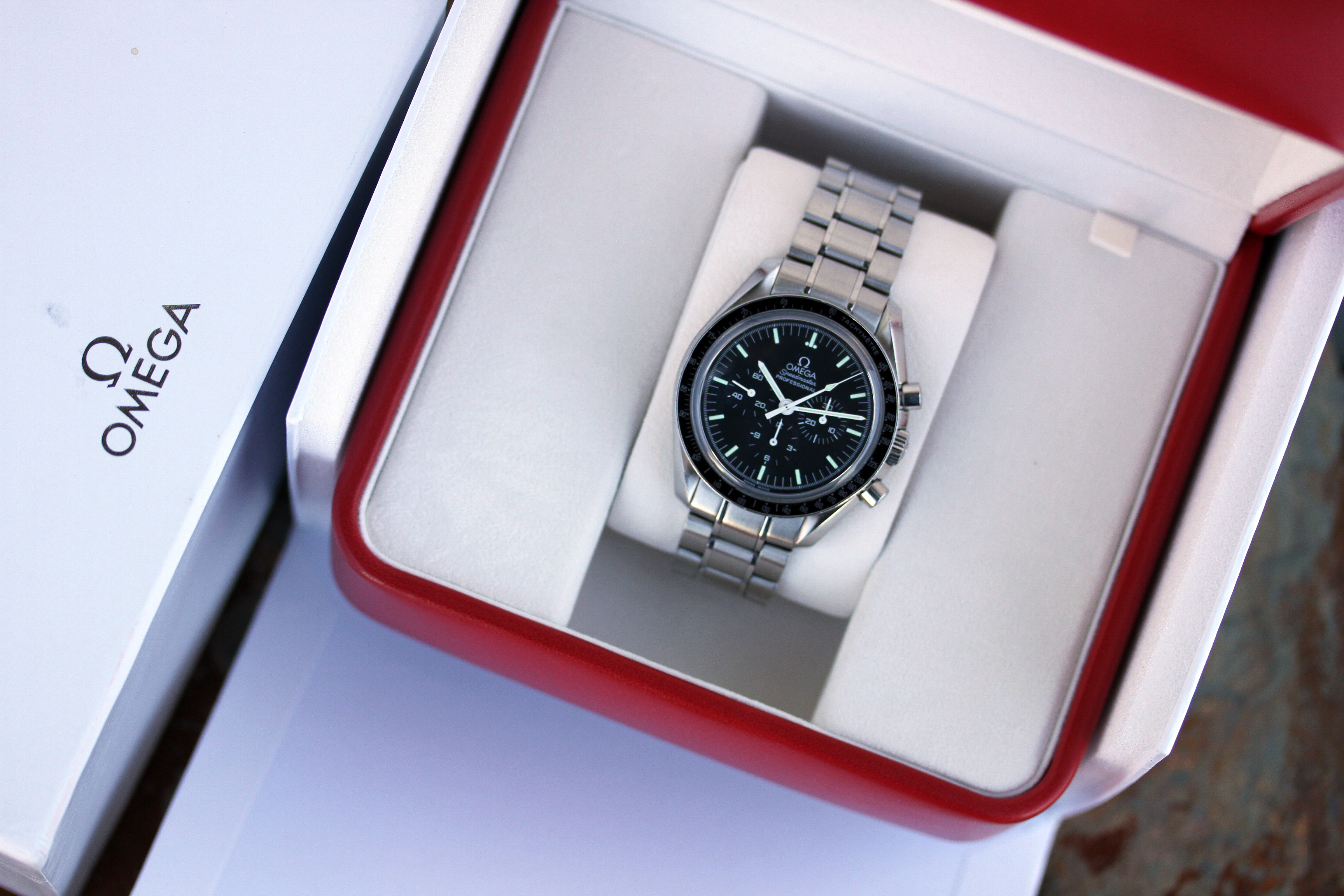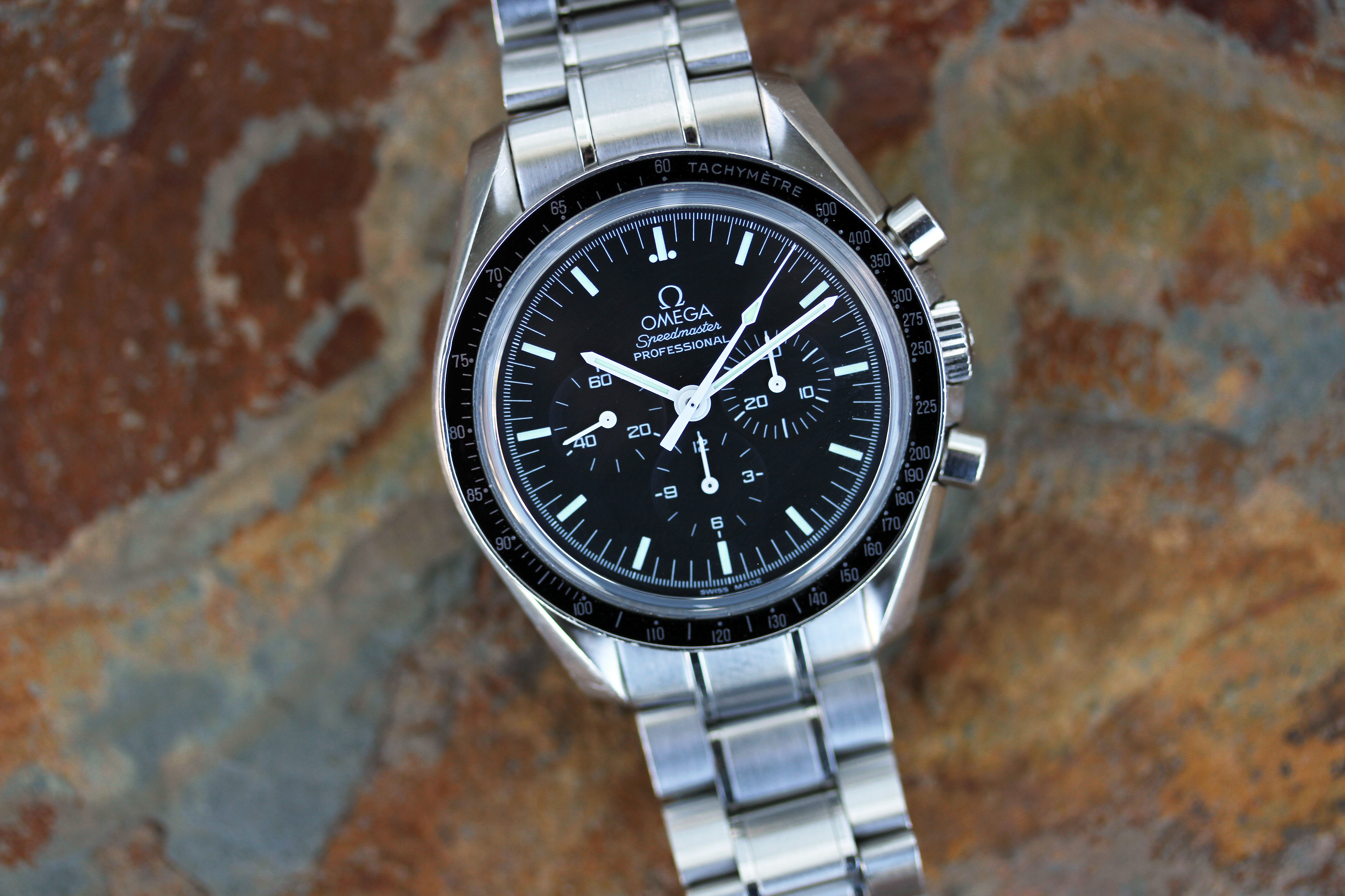 ·Up for grabs is an Omega Speedmaster Moonwatch "Sapphire Sandwich"