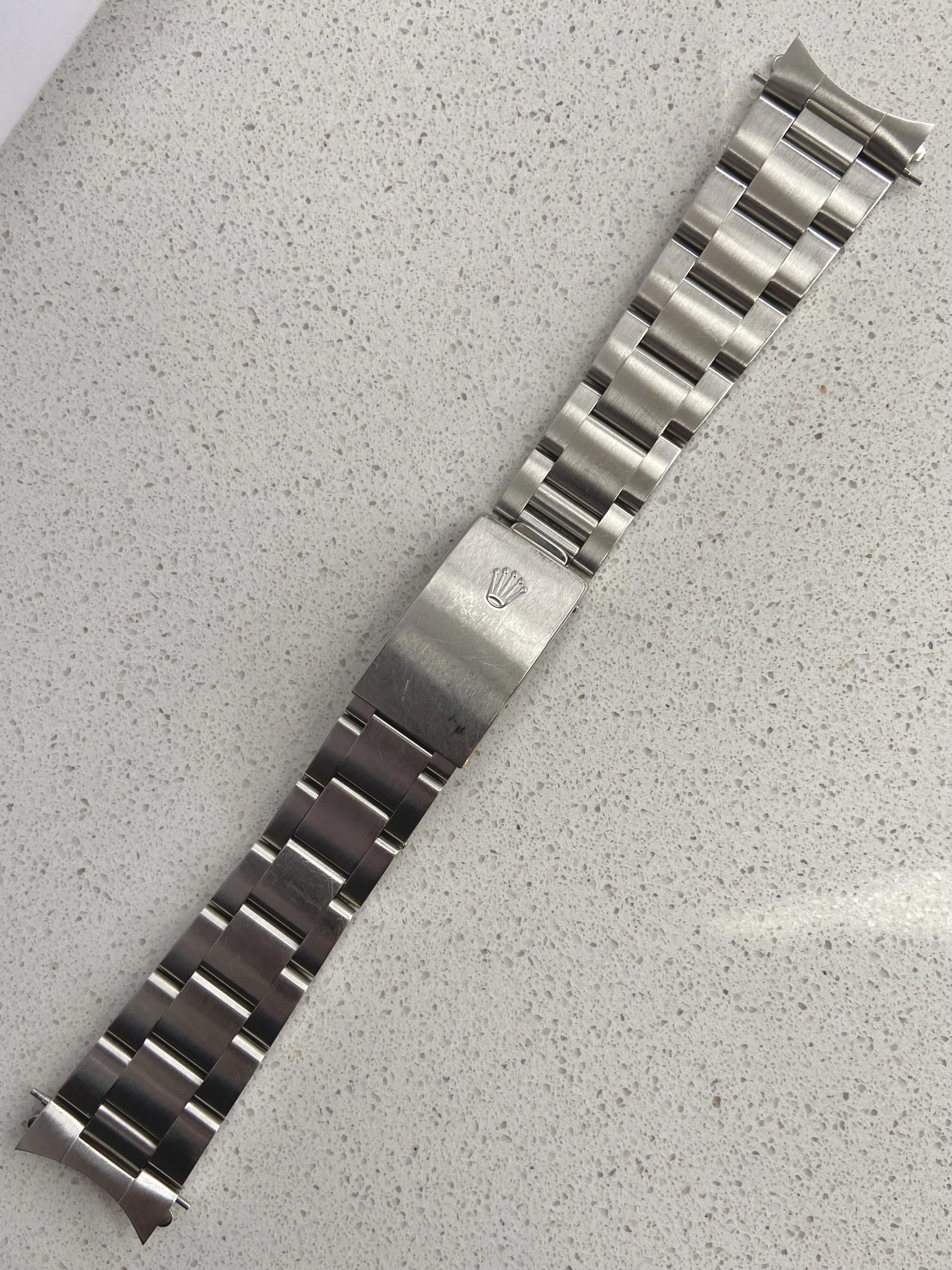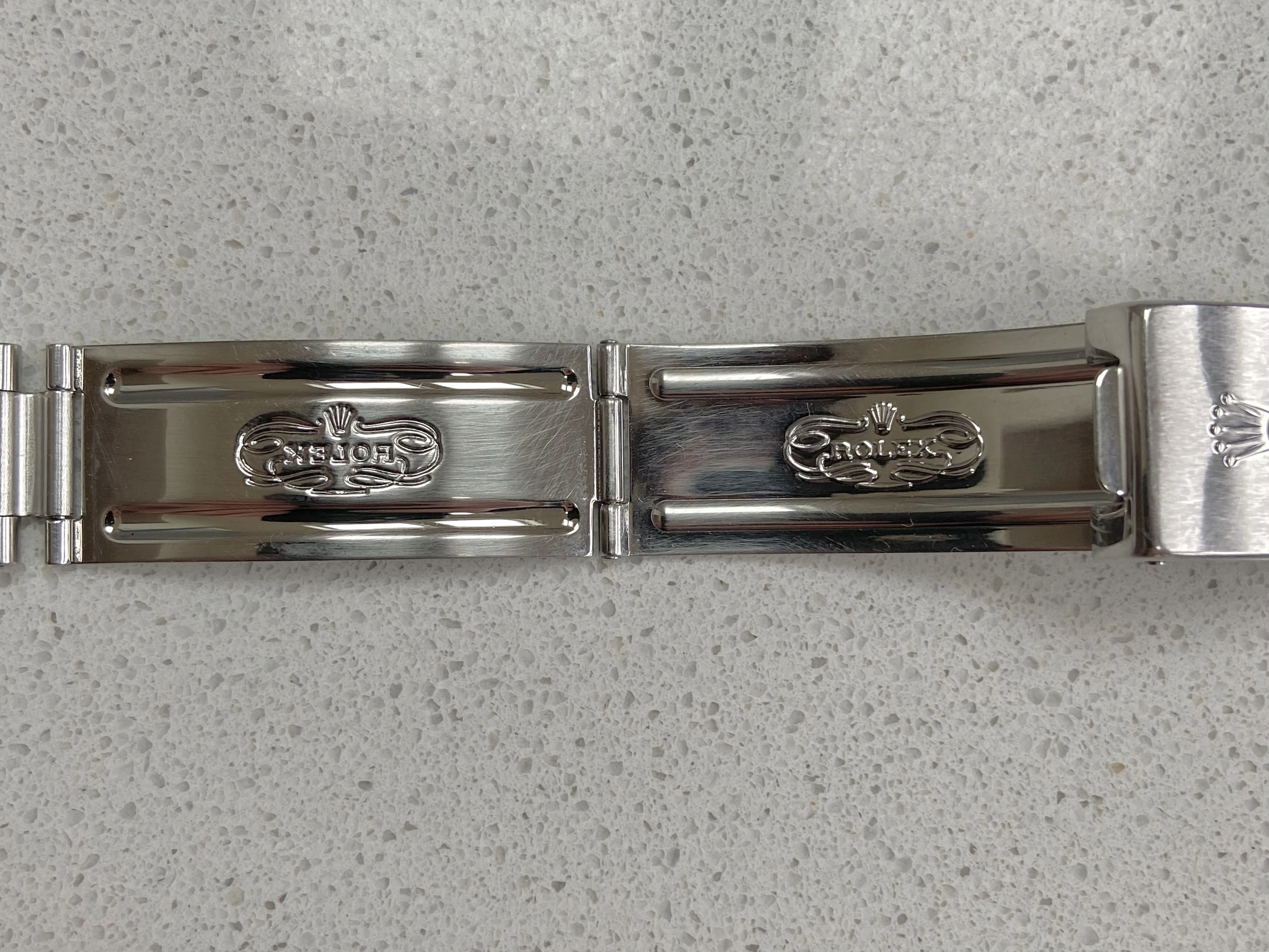 I believe this bracelet was added during an official Rolex service to a vintage 36mm DateJust in 2009 and only worn on special occasions since. As such it remains in excellent condition with no stretch or wear to the links which is common on these bracelets.