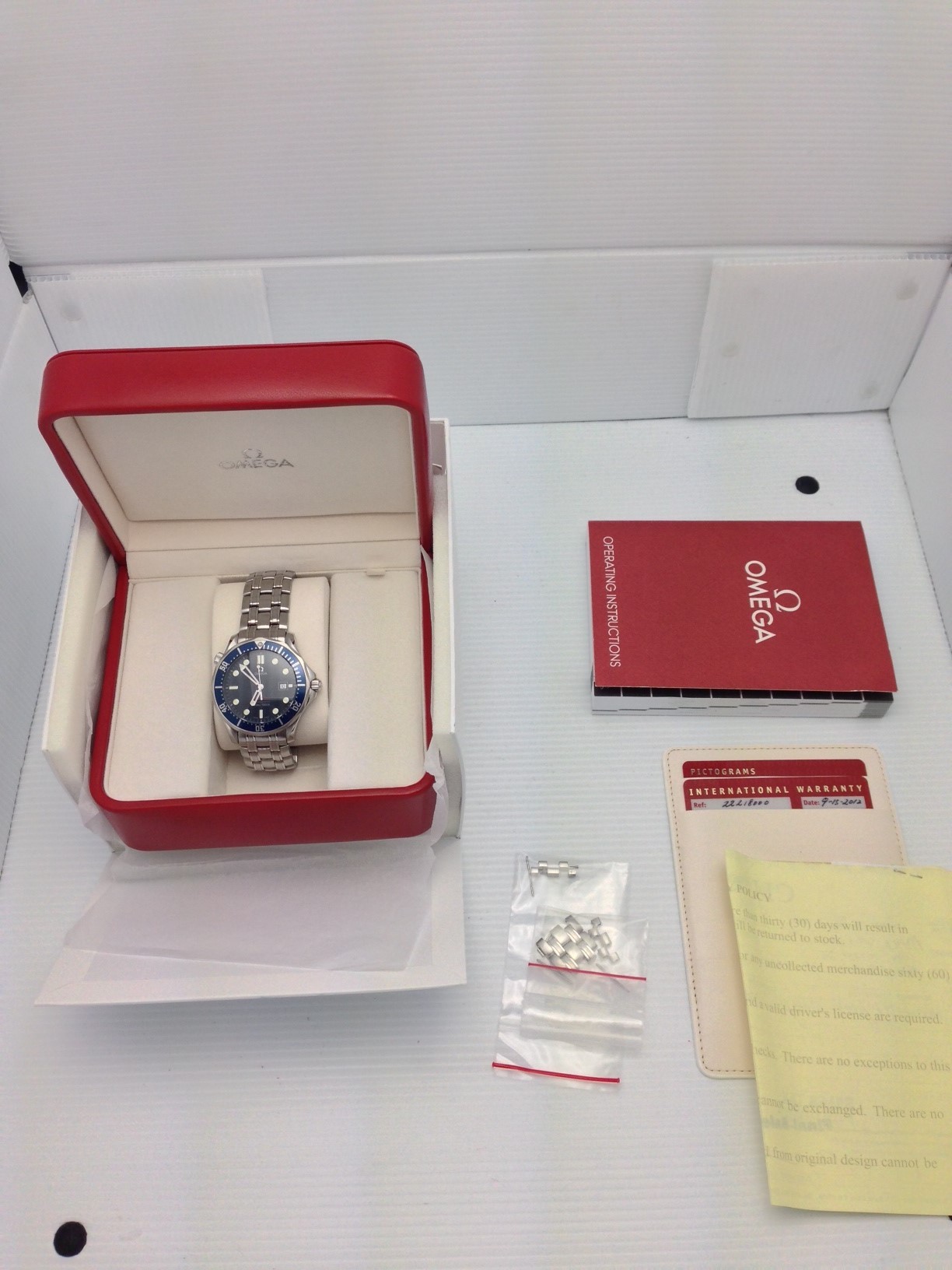 I have a 2012 Omega Seamaster Professional 2221.80 for sale. Factory warranty ends Sept 2014. Please take a look at the photos and will come with only what is in photographs or description. If any questions please ask. (click on photos for higher quality resolution)