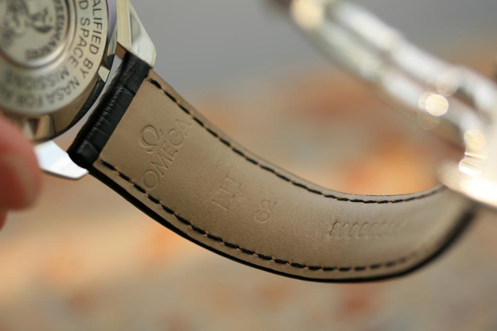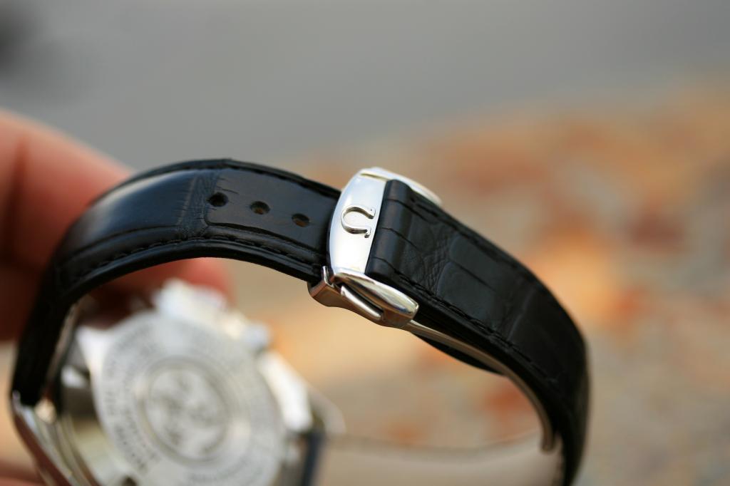 Strap is OEM Omega black croc in mint condition with no tears or spotting. Omega deployment buckle is also in excellent shape.