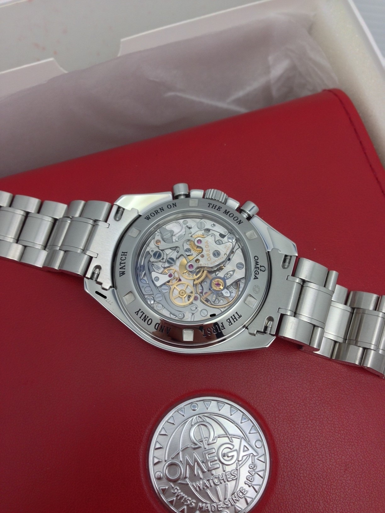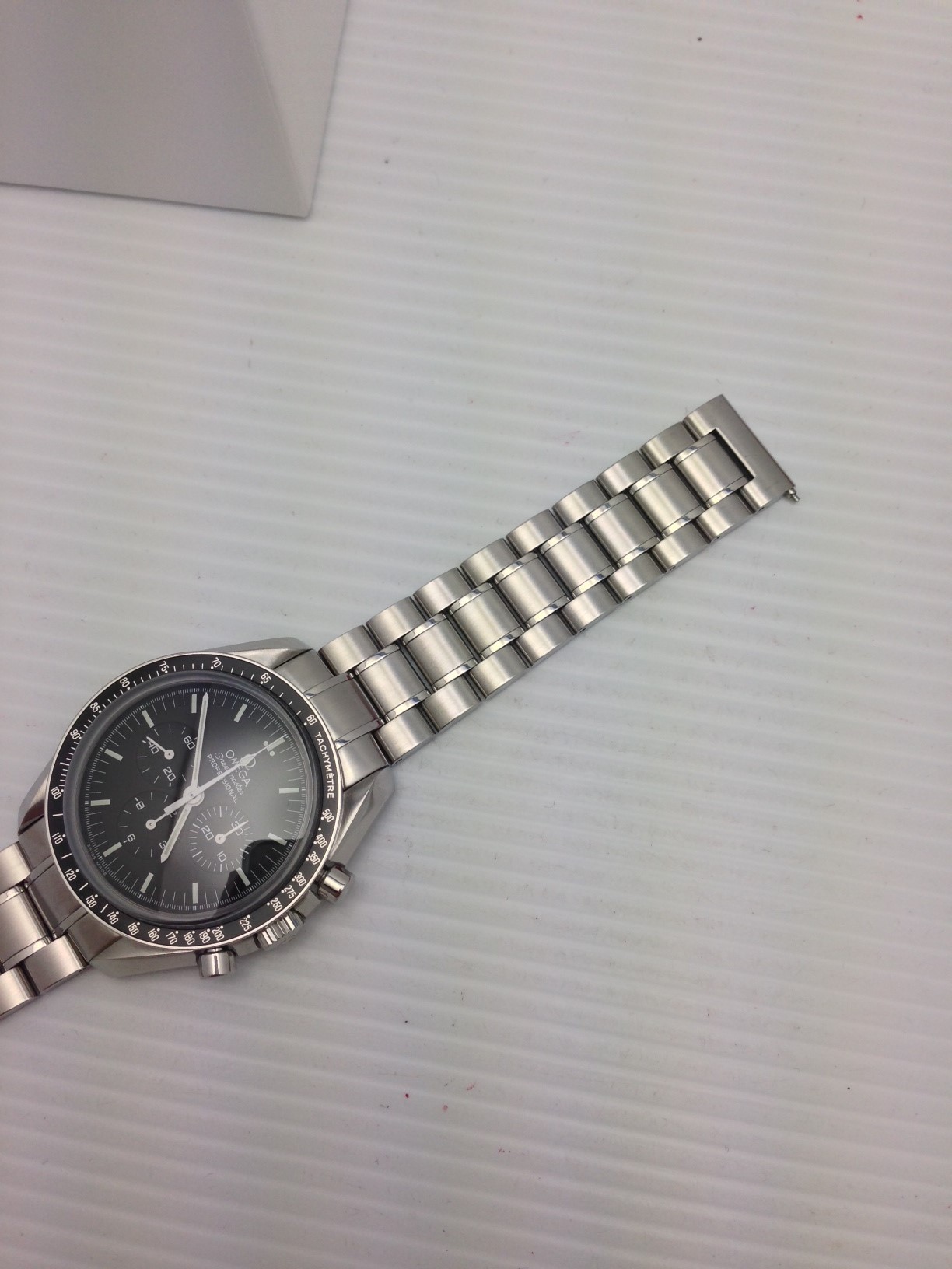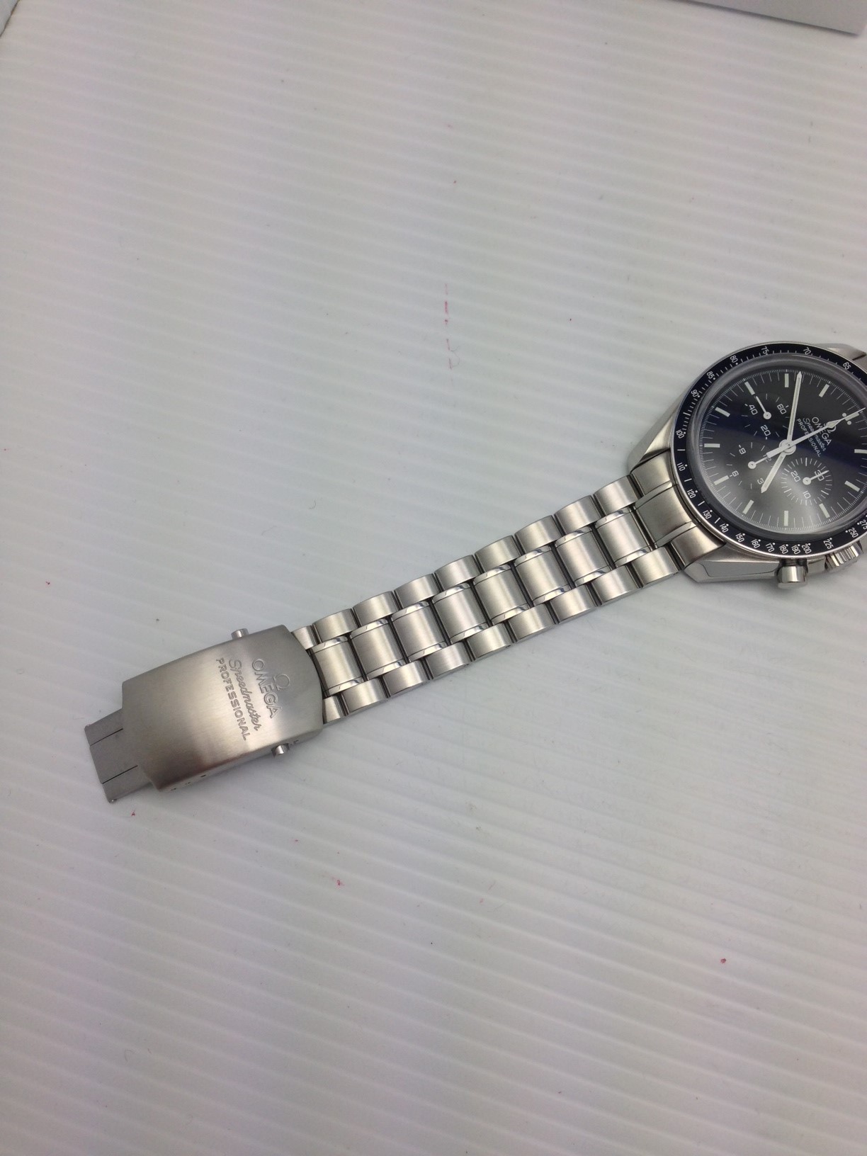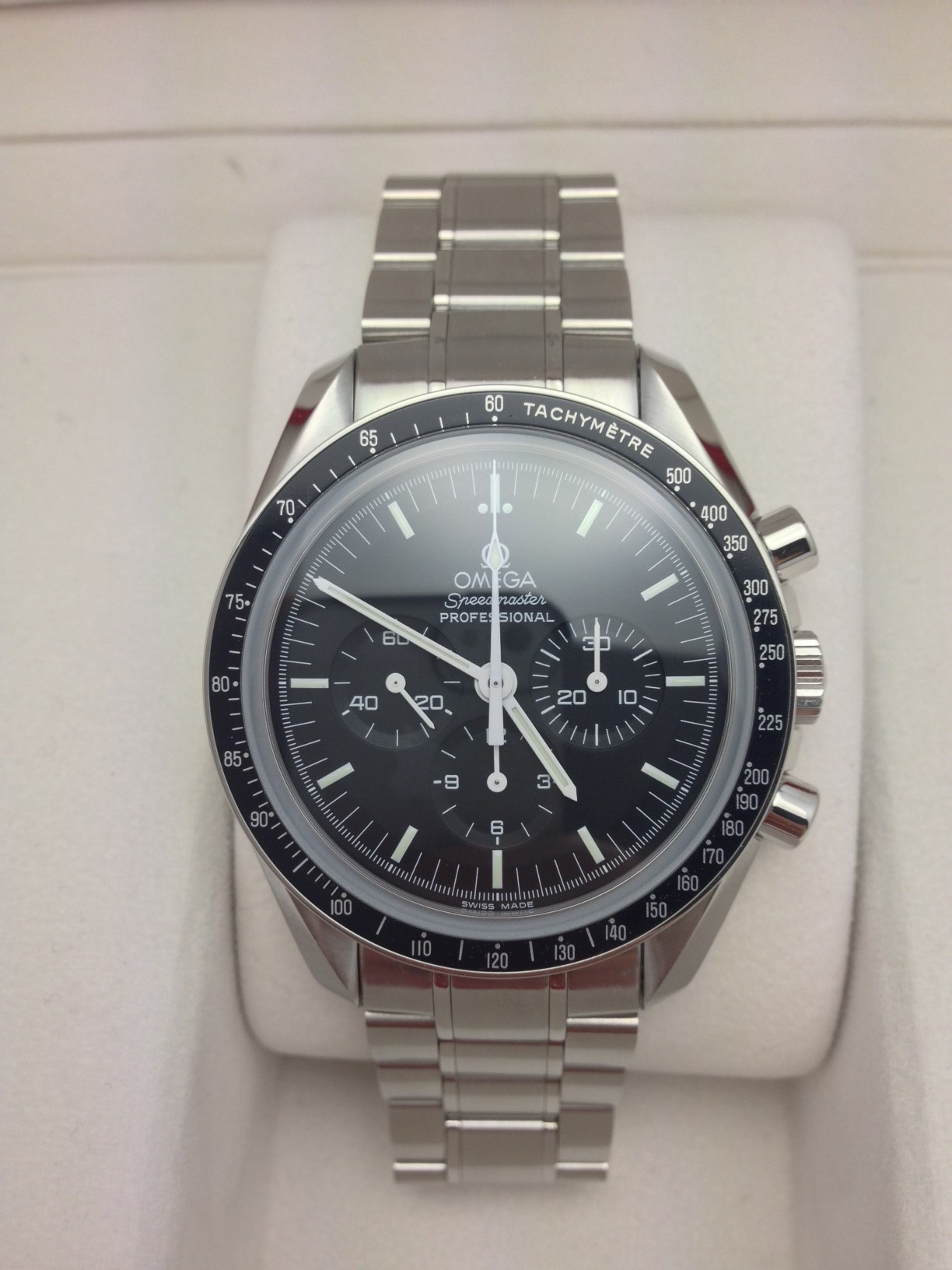 I have an Omega Speedmaster Professional 3573.50 for sale. Runs great and all functions work as expected. Please take a look at the photos for condition. Under warranty until August of 2015. Barely ever worn.