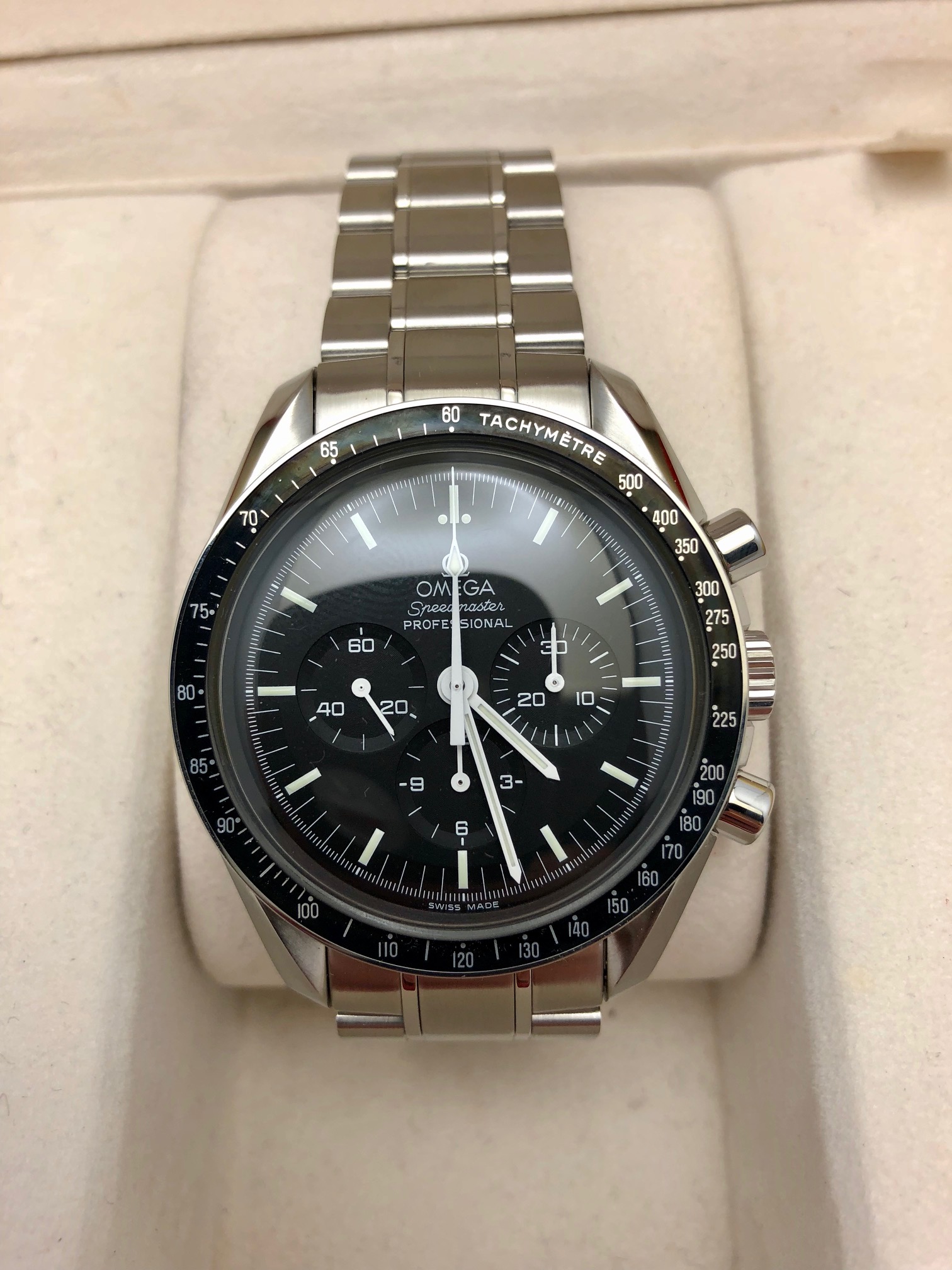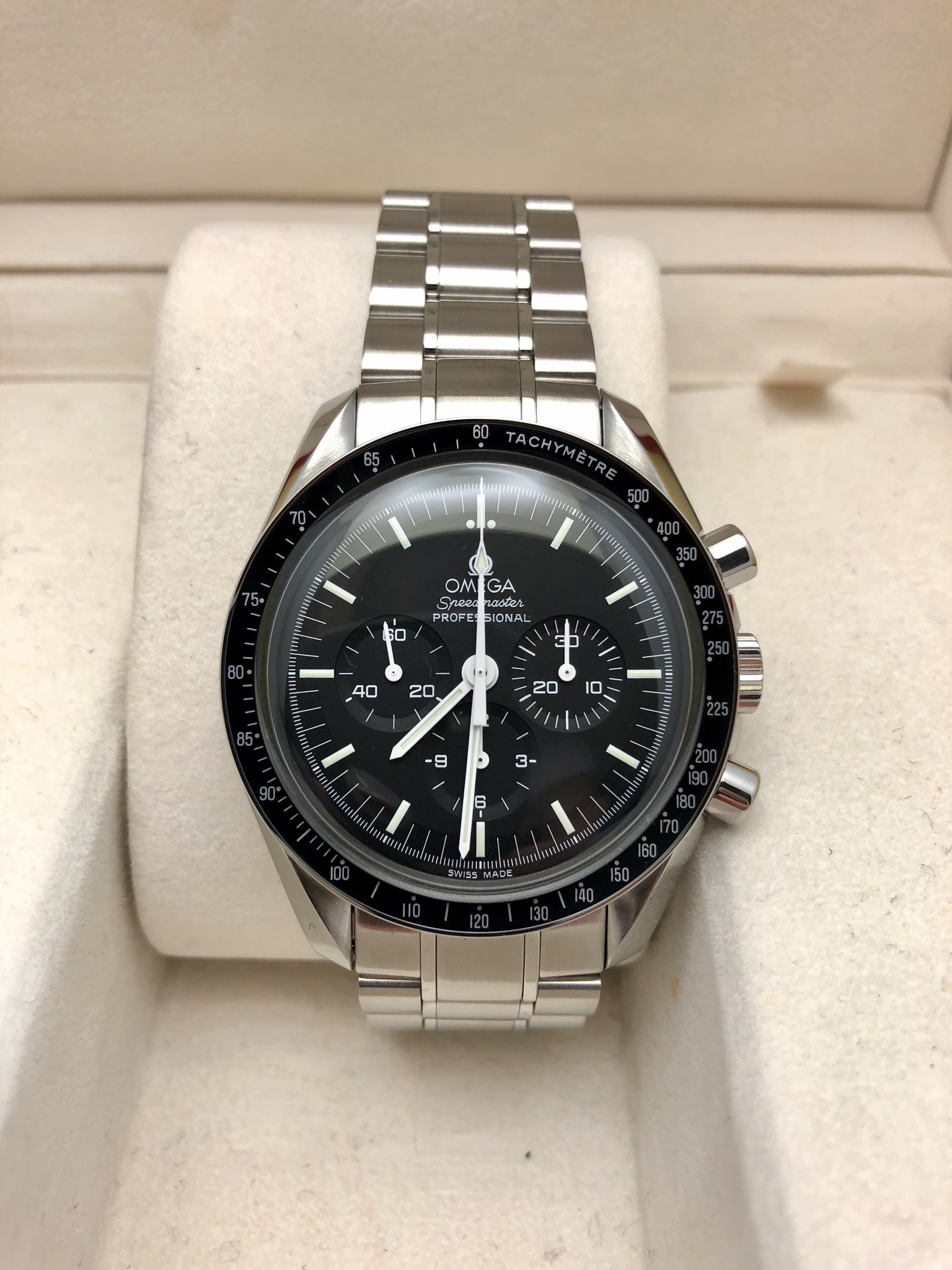 I have a 2015 Omega Speedmaster Professional 3570.50 for sale. Please take a look at photos for condition. I will warranty the movement on this piece for 90 days. Serial shows it is 778xxxxx and puts it right before the switch to the current screw and pin system opposed to the previous pin and sleeve bracelet system.