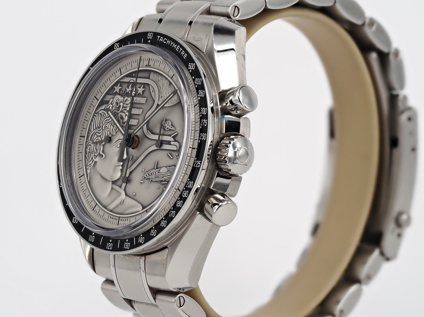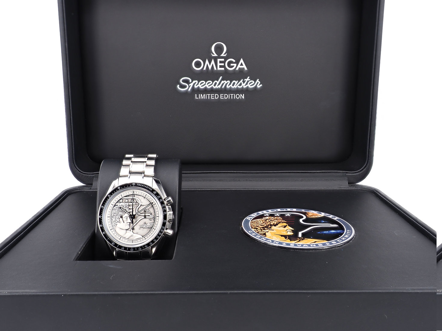 Dial: Sterling silver dial which is actually the Apollo 17 mission patch