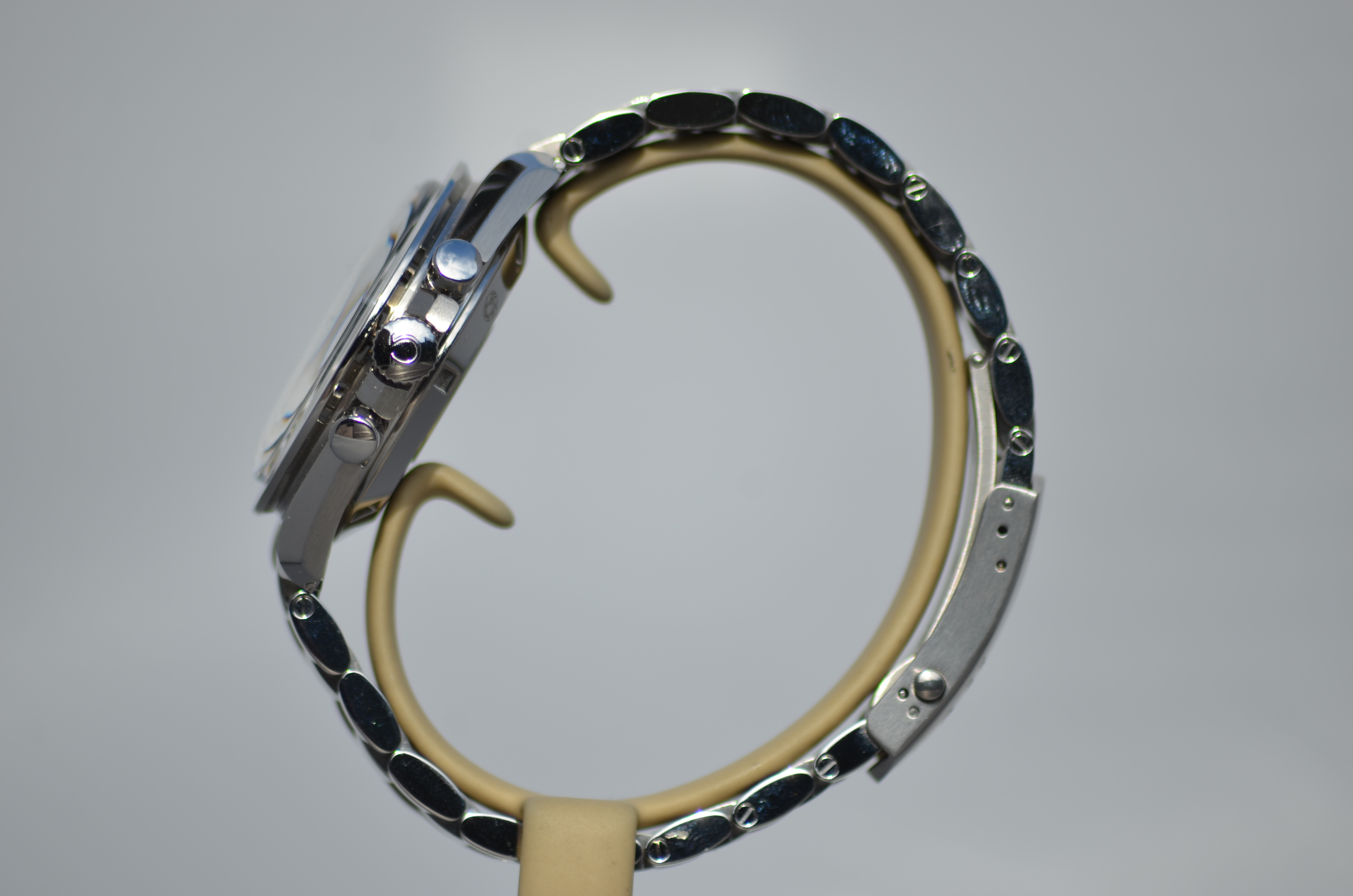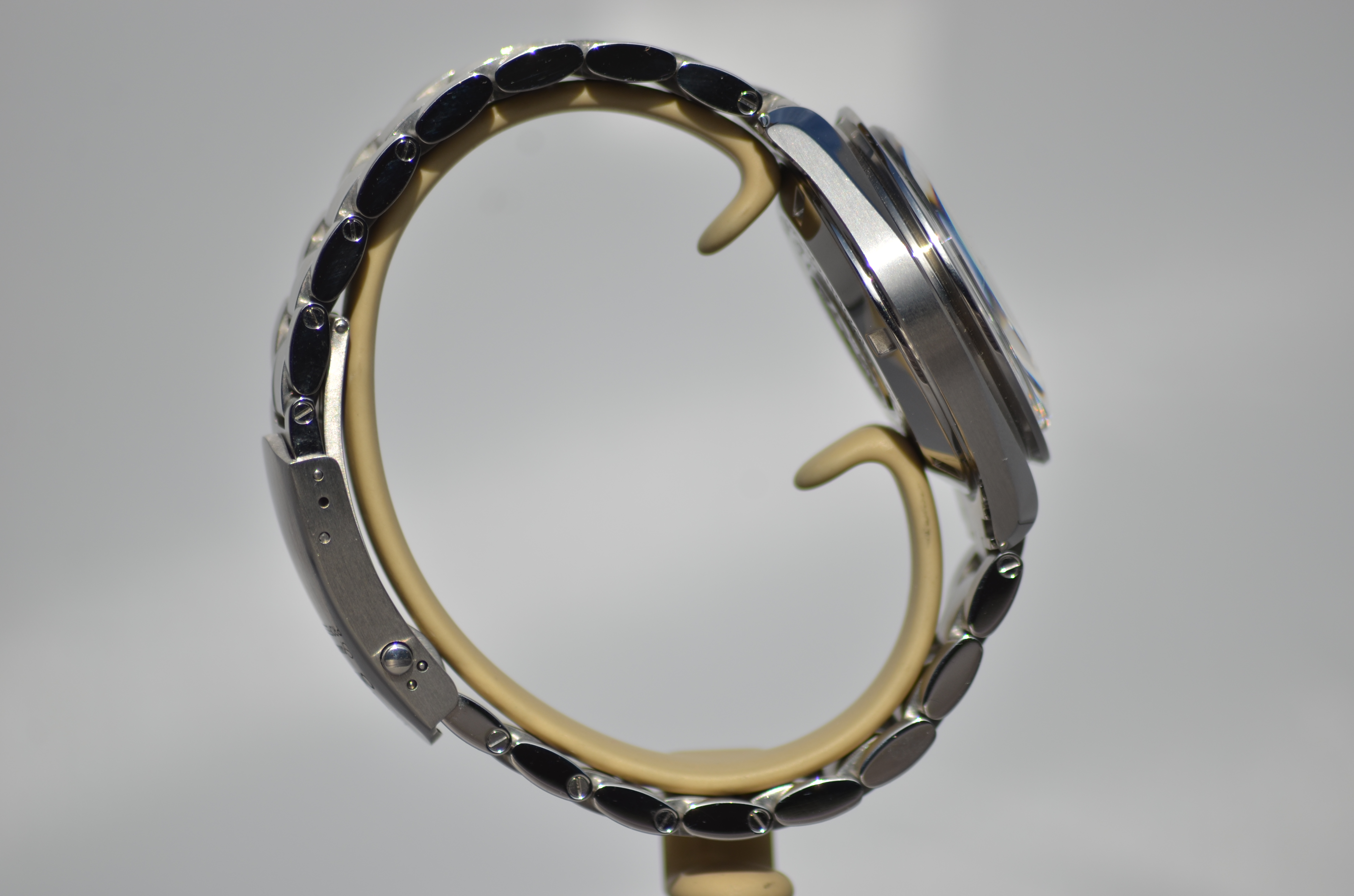 It is in near mint condition and has no major scratches or dings there are a few hairline scratches on there. The watch is running perfectly fine and winds smooth. Very much sought after piece. I have owned this from new and it is totally unworn except for a few wrist shots. It has never been sized.